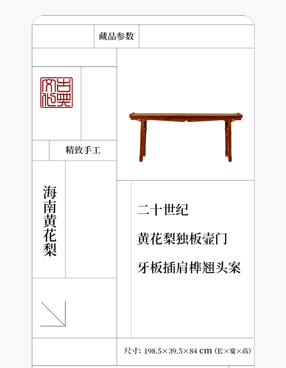 二十世纪 黄花梨独板壸门牙板插肩榫翘头案