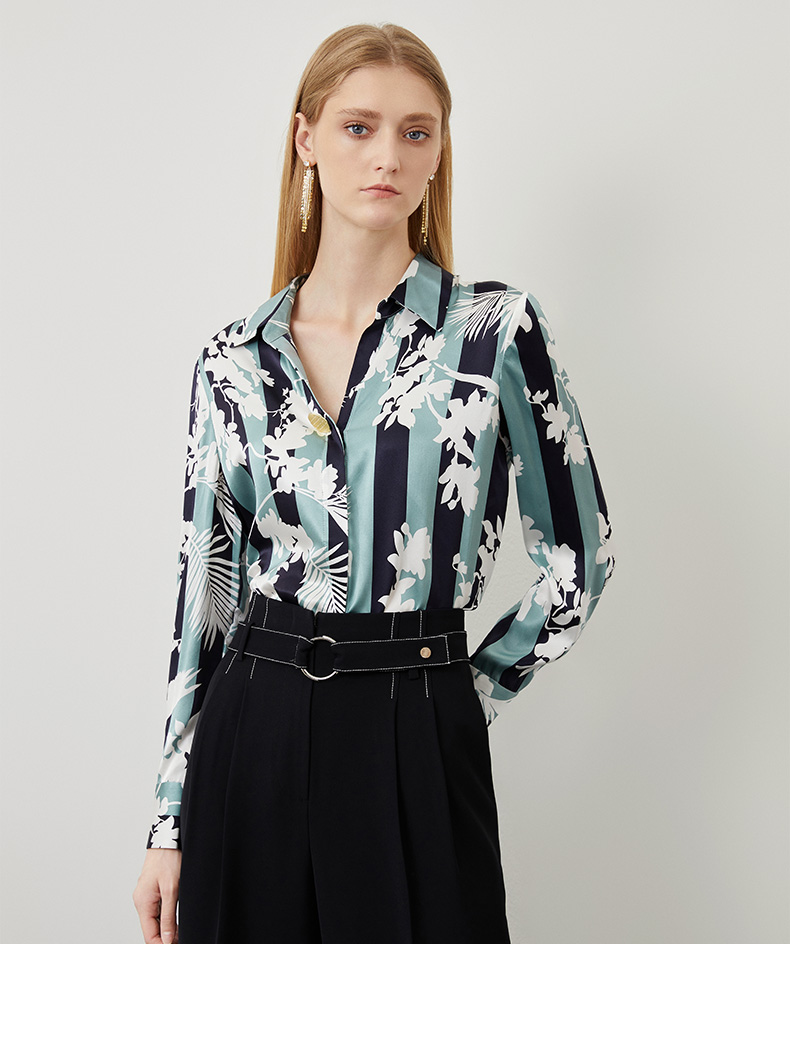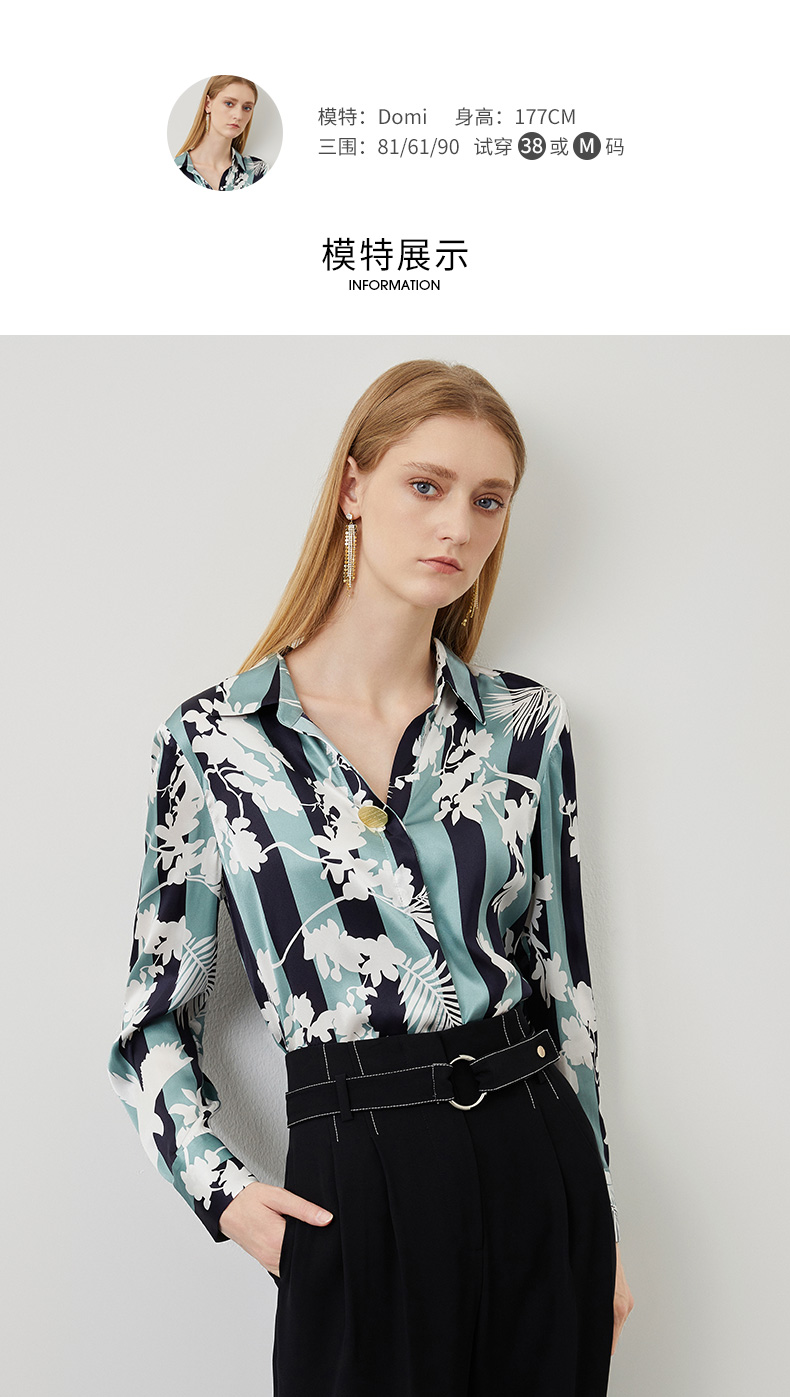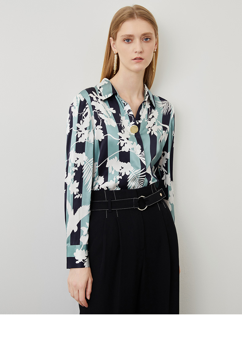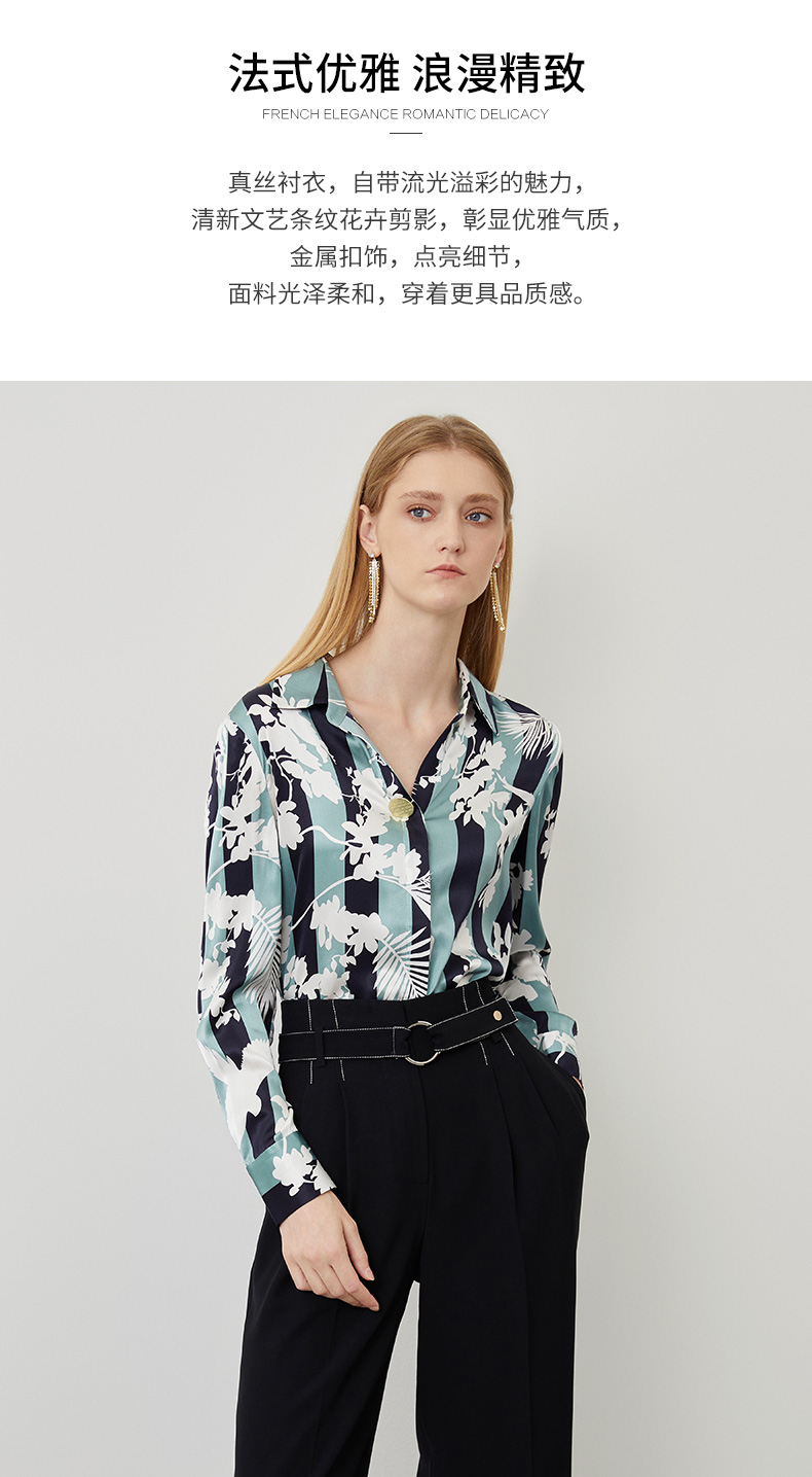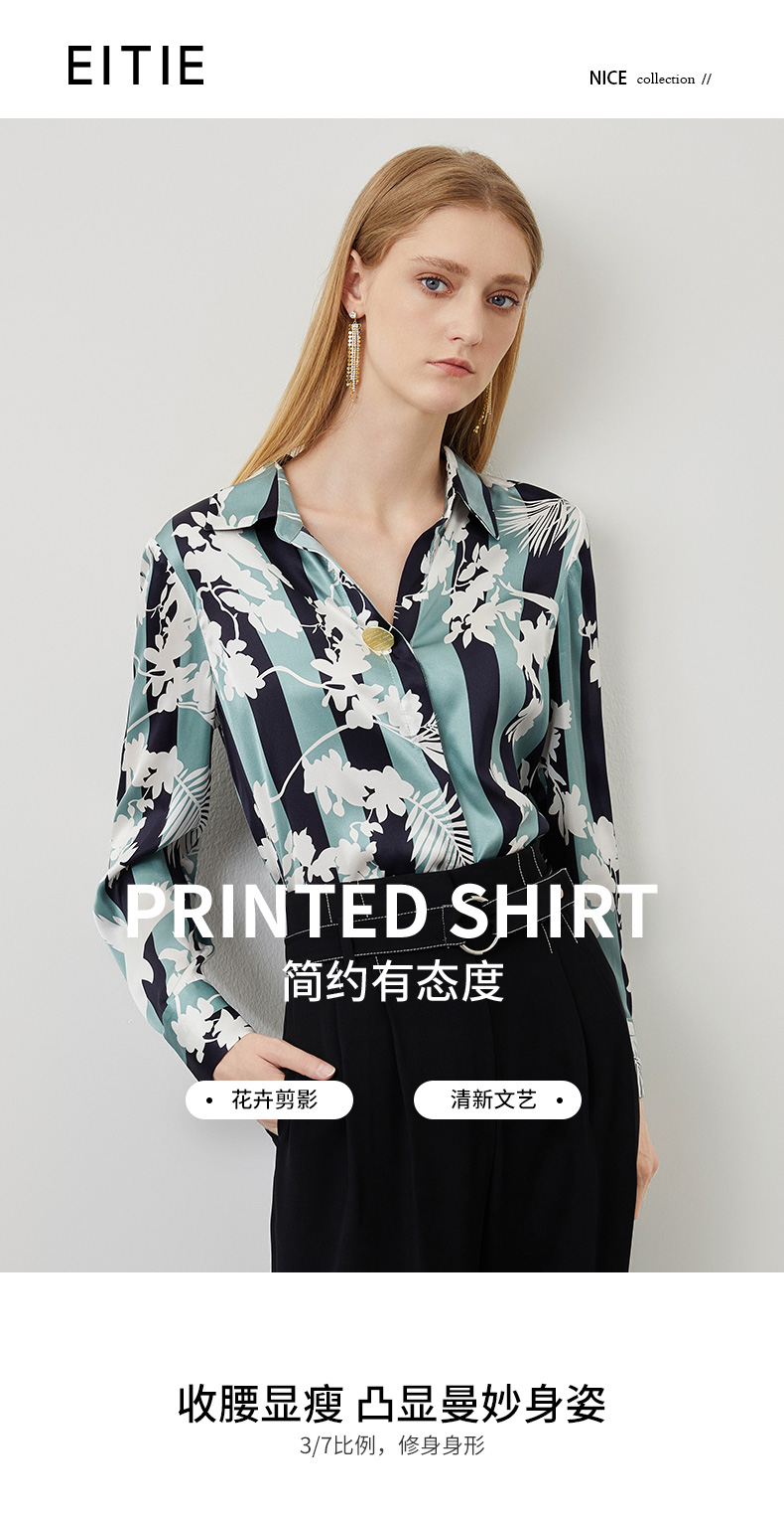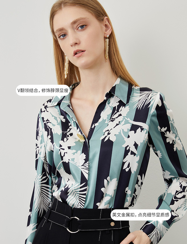 EITIE爱特爱秋季新款V领洋气舒适气质衬衣衬衫6713404