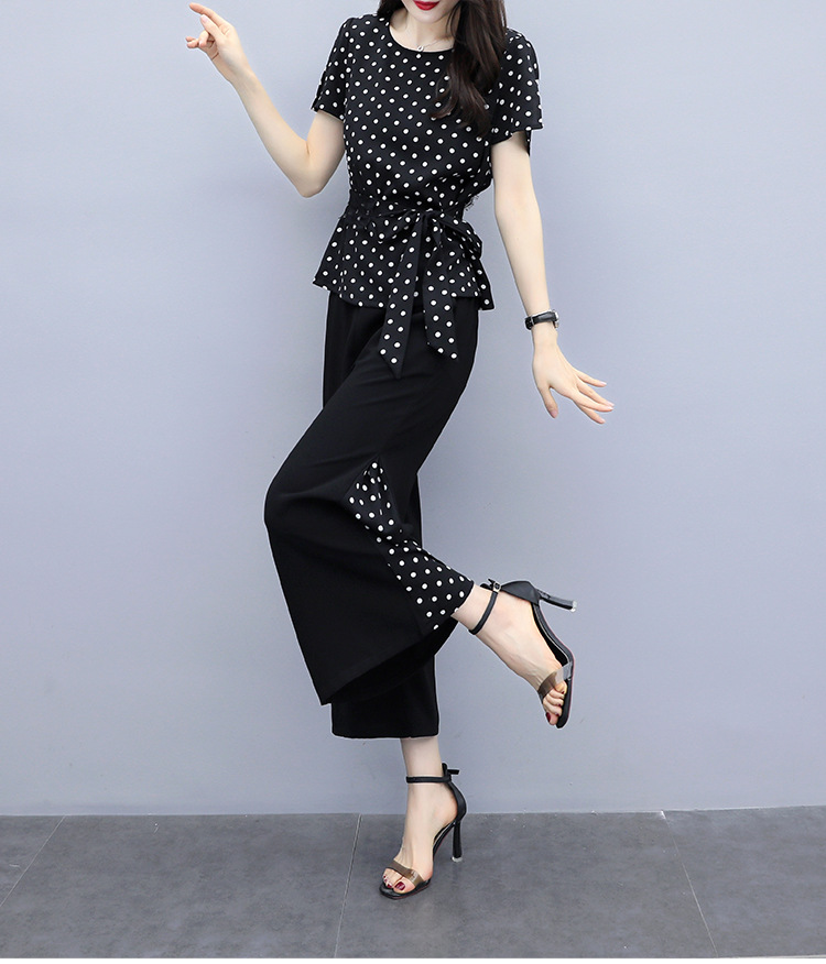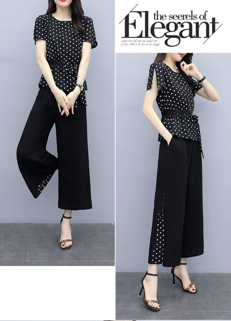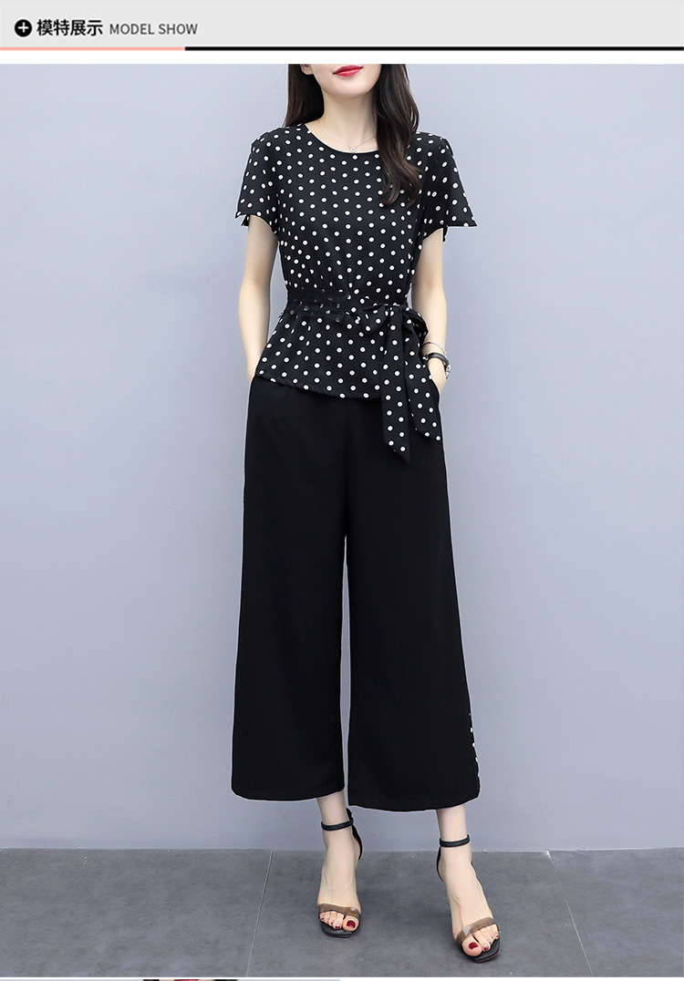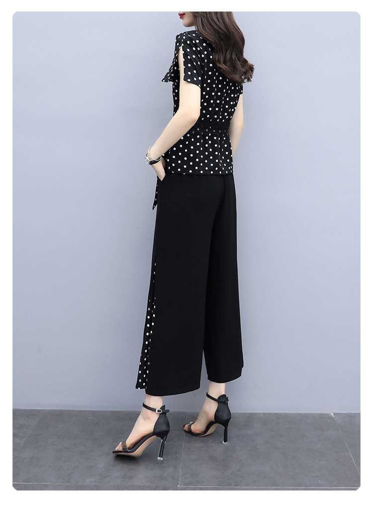 SYG-R05AXJM687130韩版大码胖mm加肥加大显瘦波点阔腿裤套装