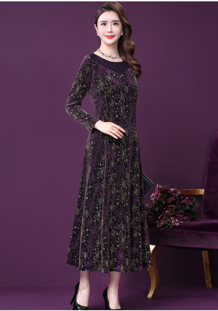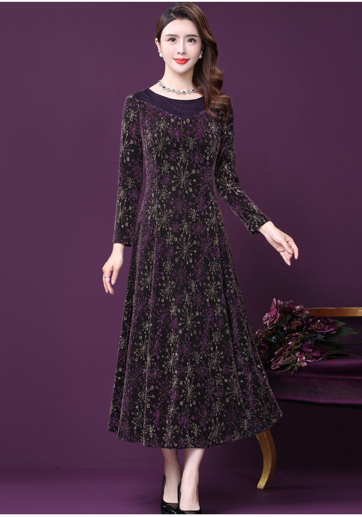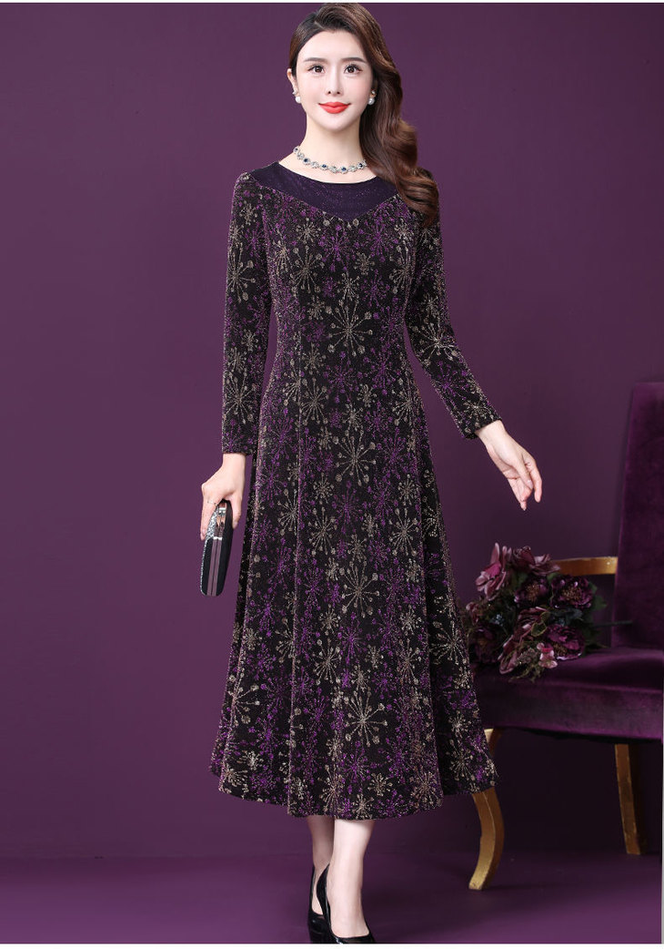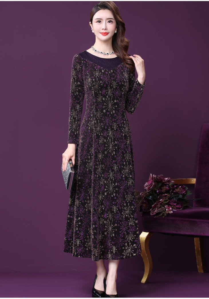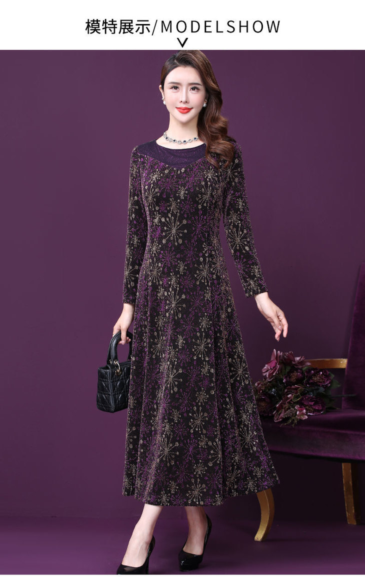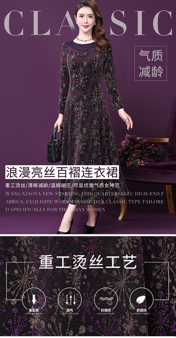 YQ-33674秋装新款女法式复古亮丝收腰显瘦轻奢长款连衣裙
