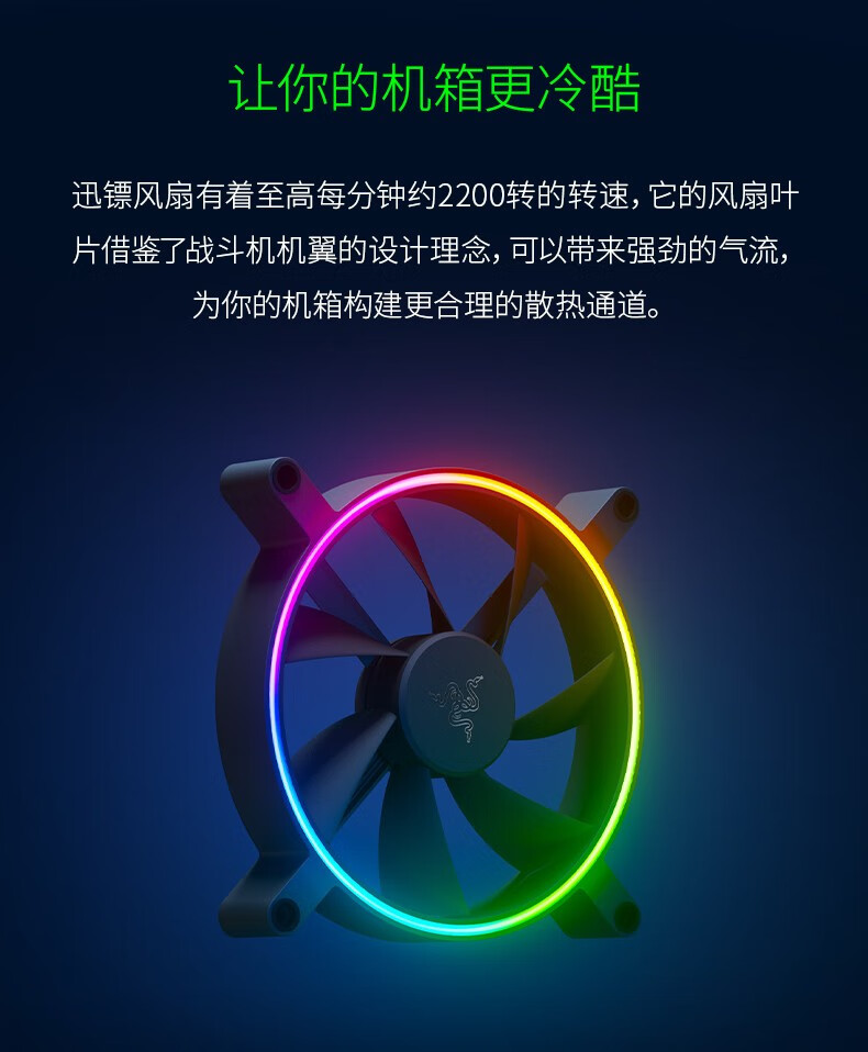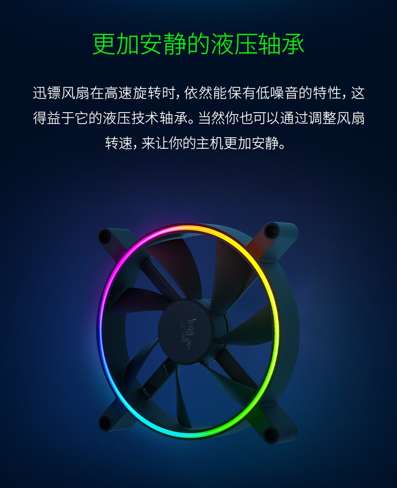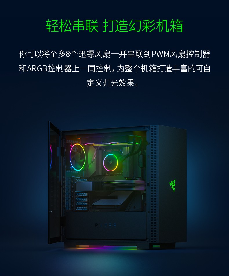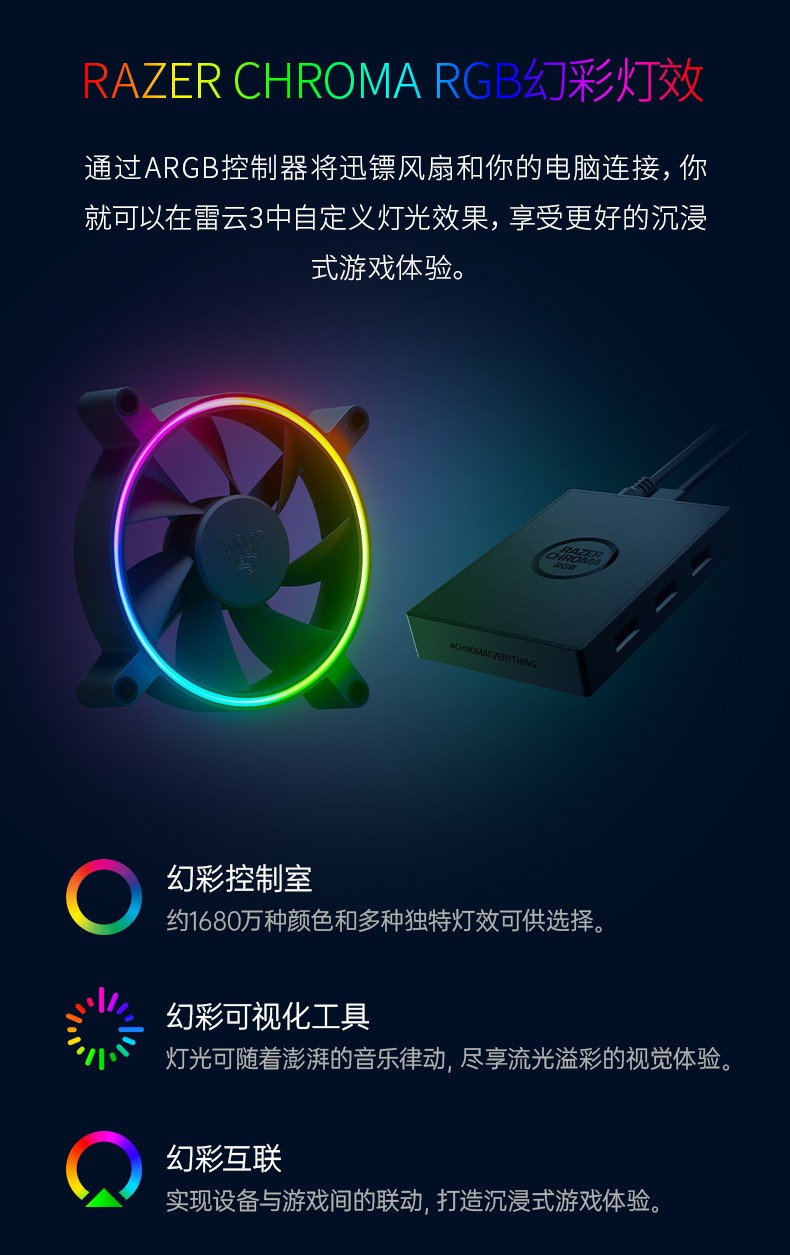 Razer\雷蛇迅镖幻彩RGB台式机DIY配件电脑机箱散热风扇LED灯效支持PWM风扇控制器 三风扇装