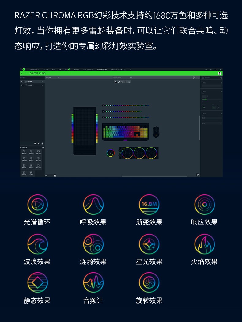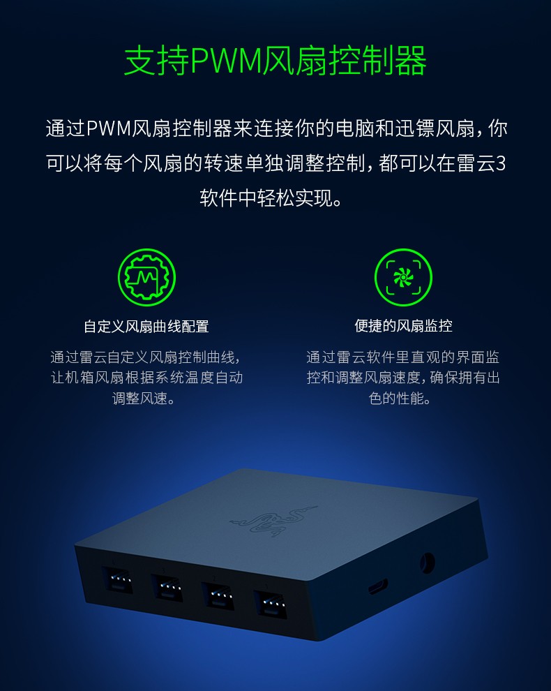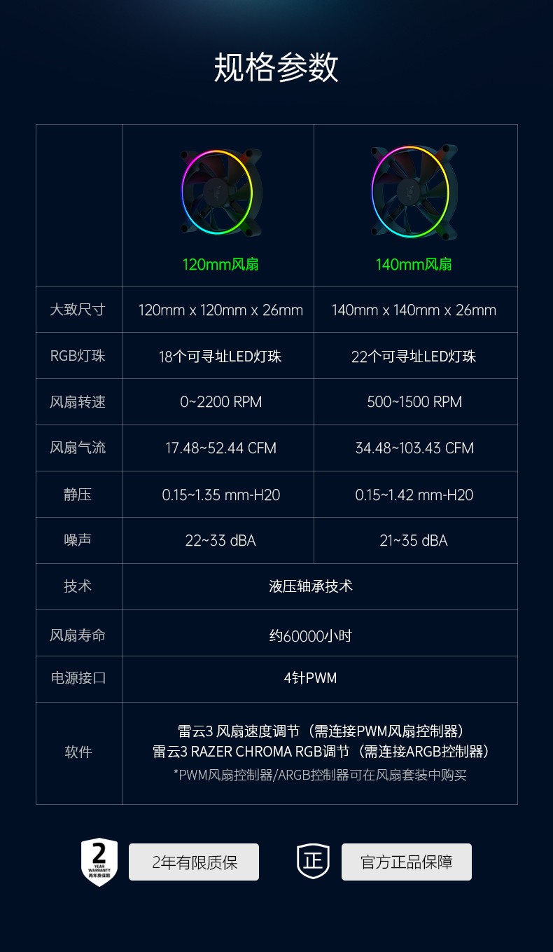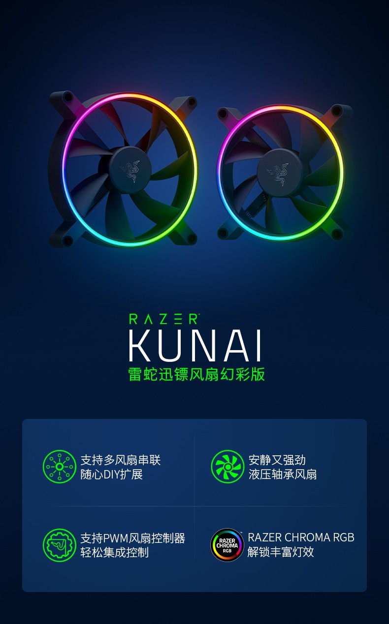 Razer\雷蛇迅镖幻彩RGB台式机DIY配件电脑机箱散热风扇LED灯效支持PWM风扇控制器 三风扇装
