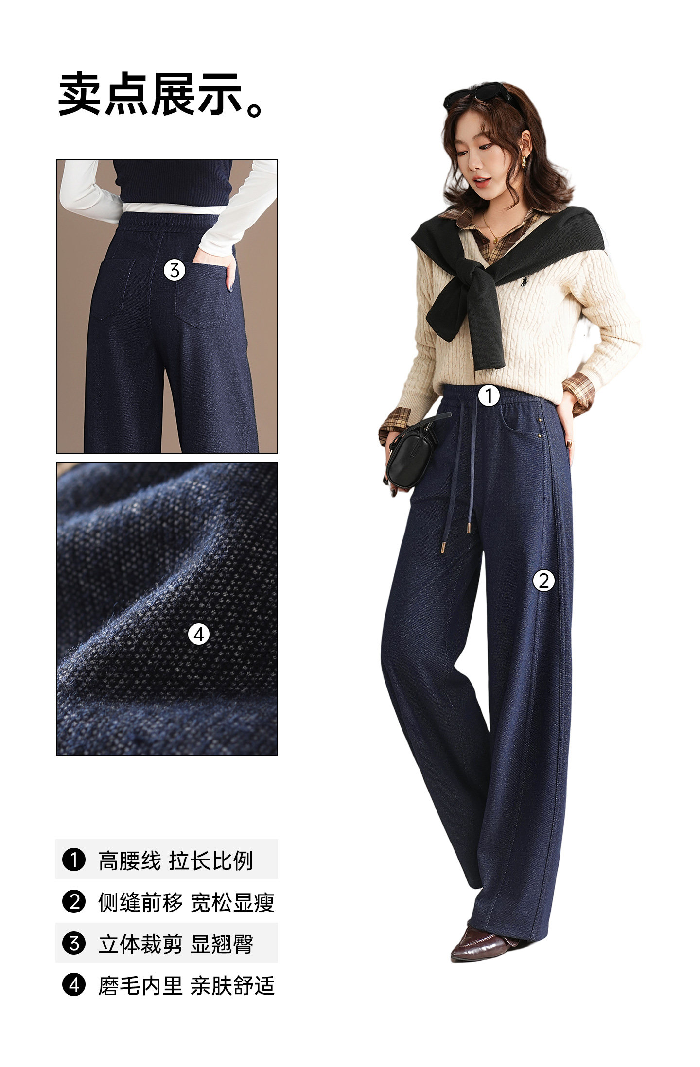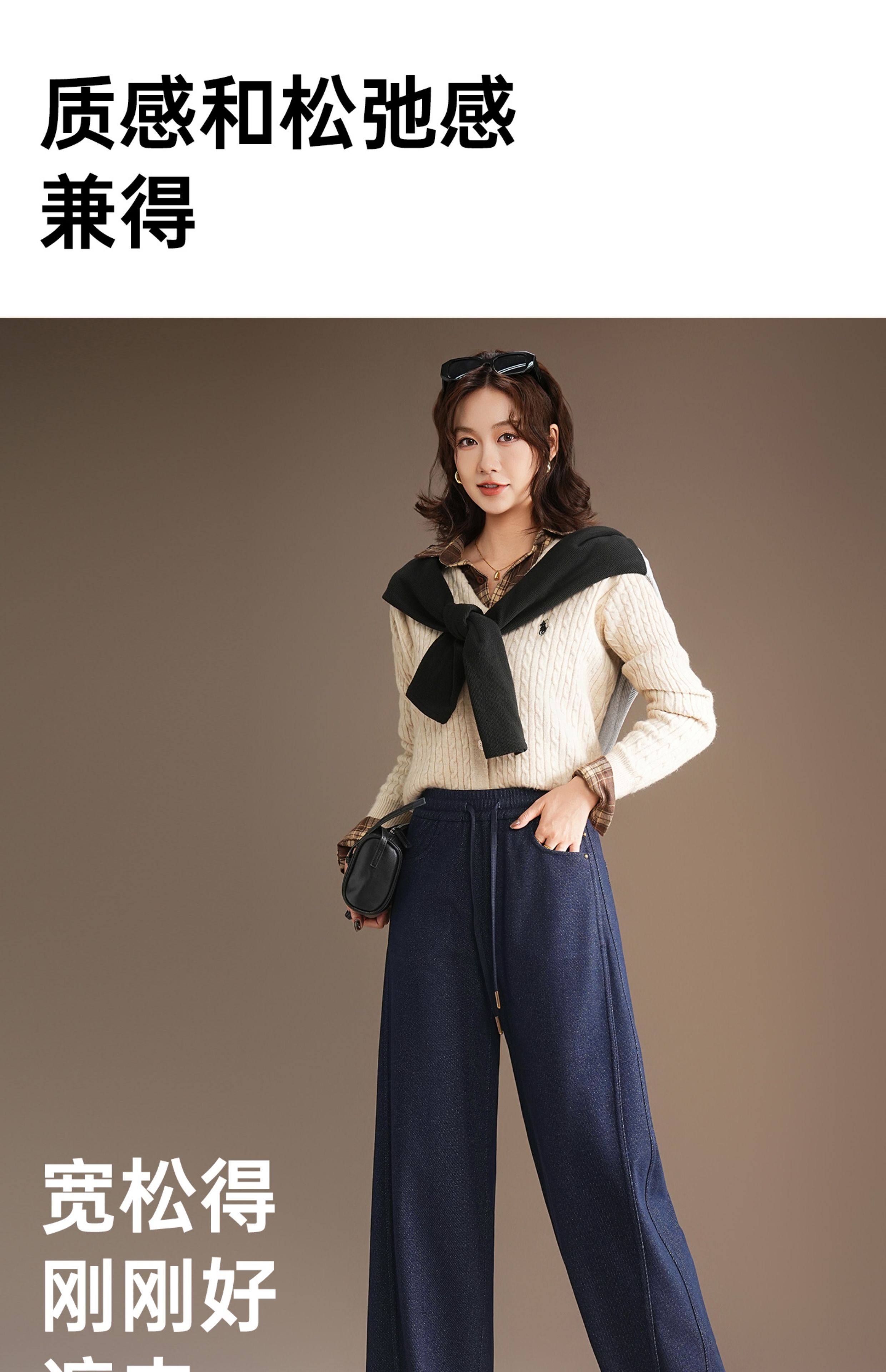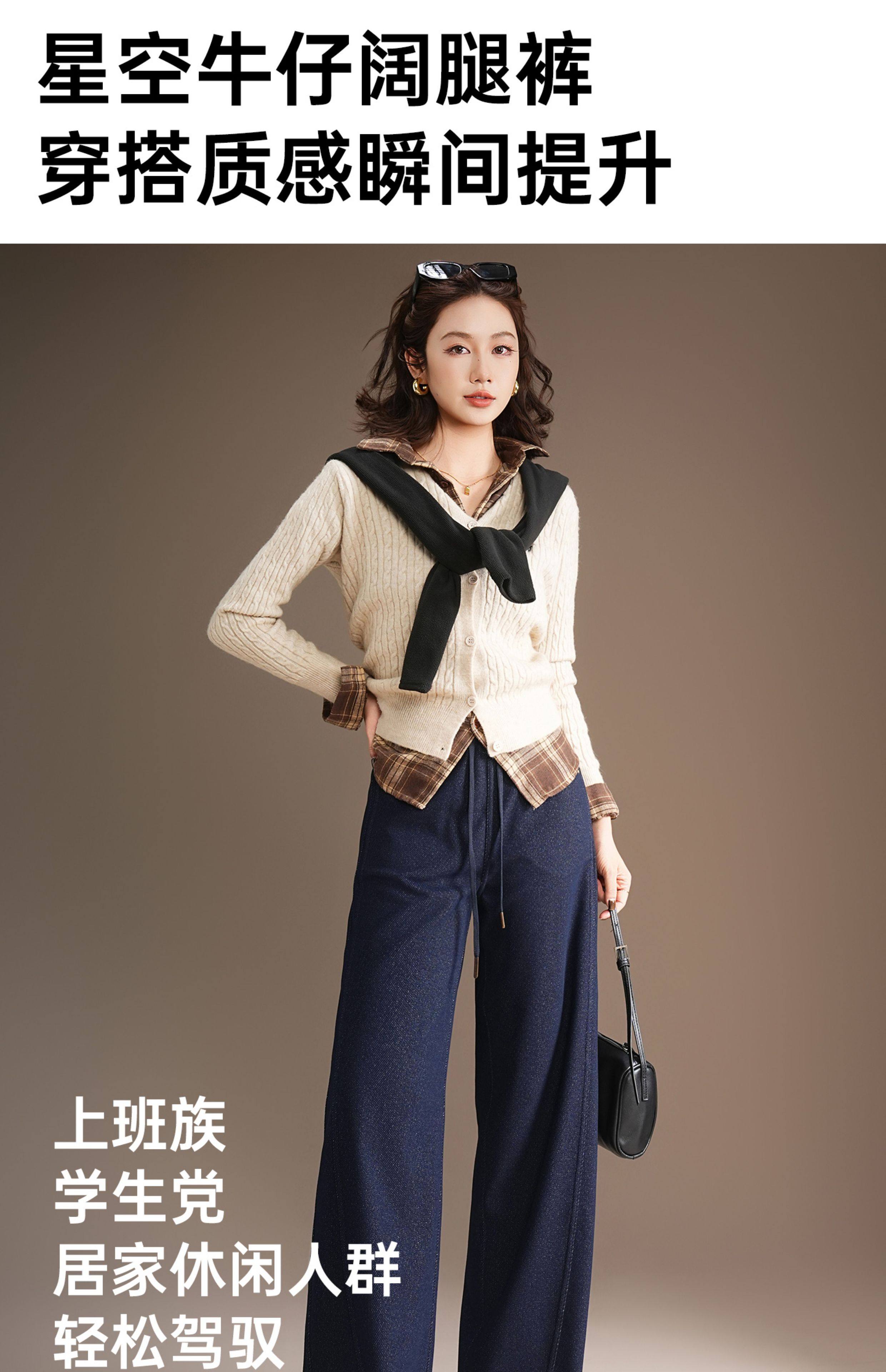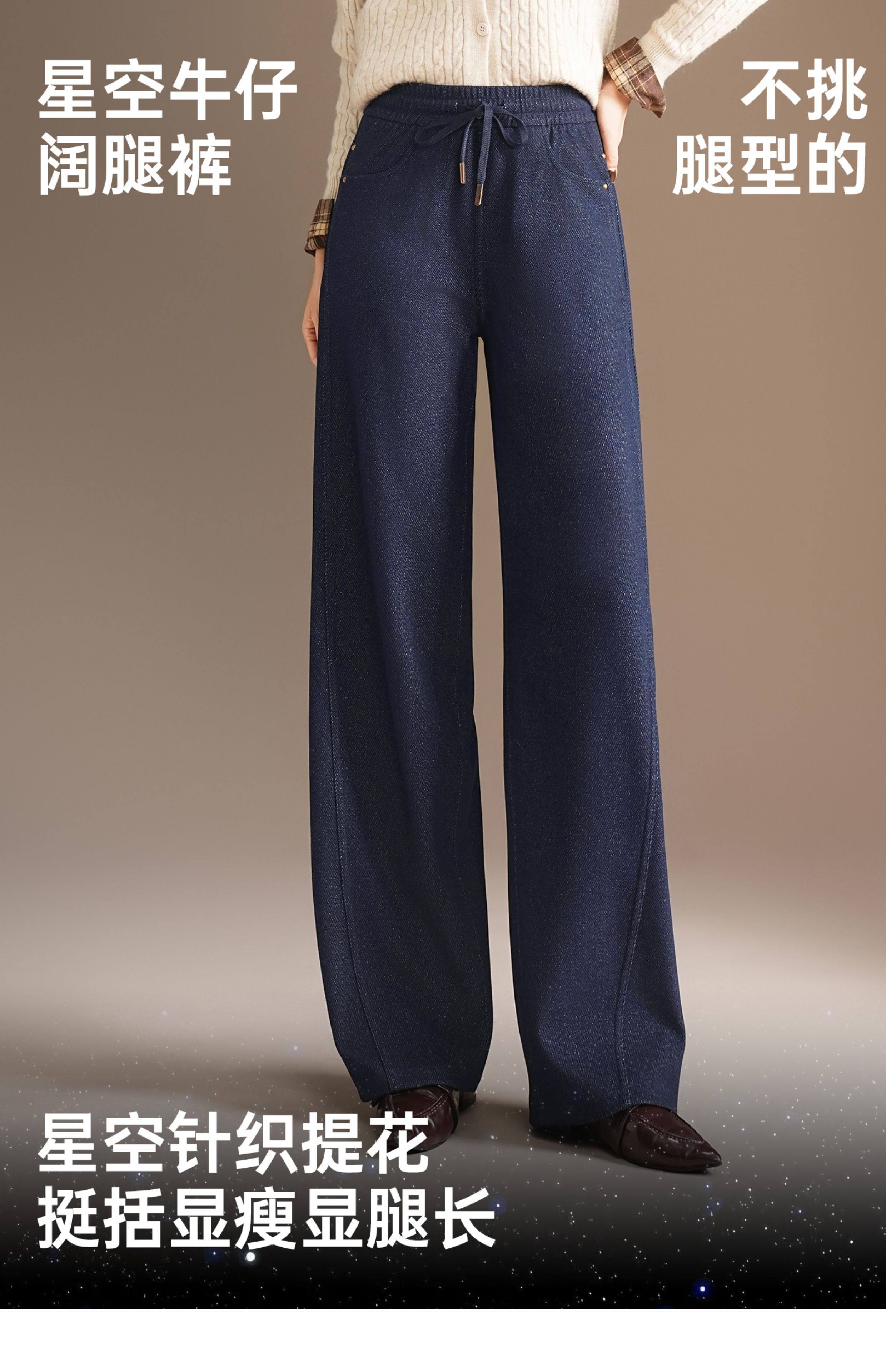 五只白鹅—2025秋冬季高腰显瘦弯刀牛仔阔腿裤 星空针织牛仔2591