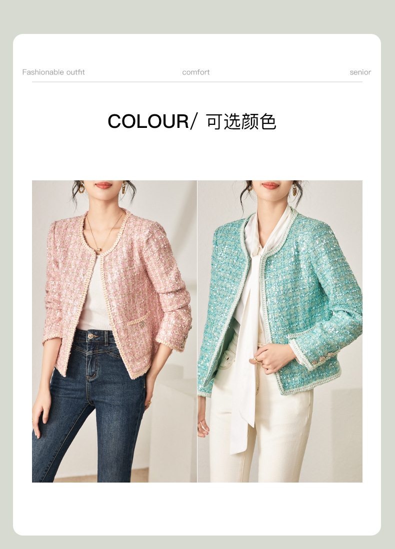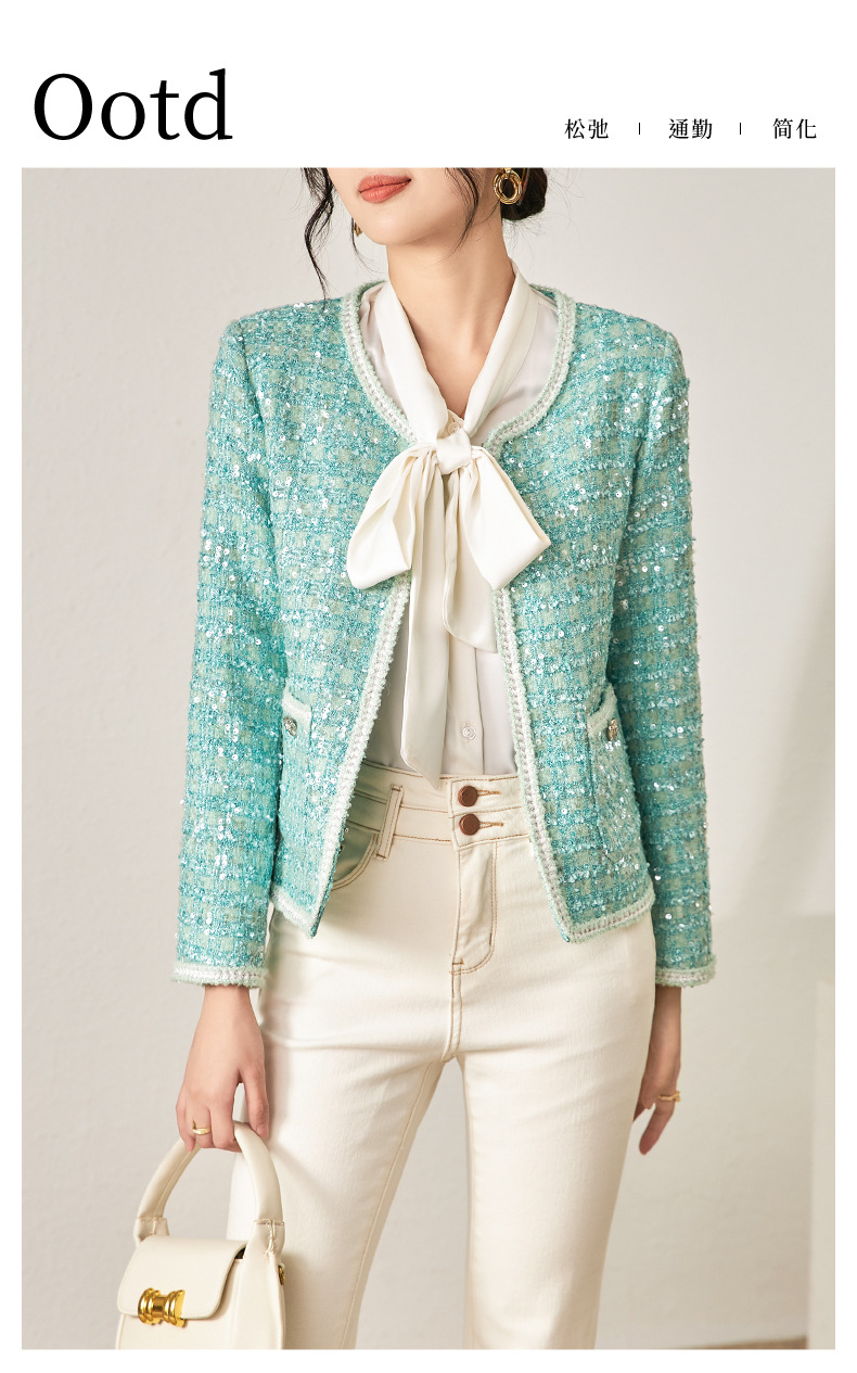 秋季新款,重亮片粗花呢名媛气质百搭遮肉短外套WLZD-2321105