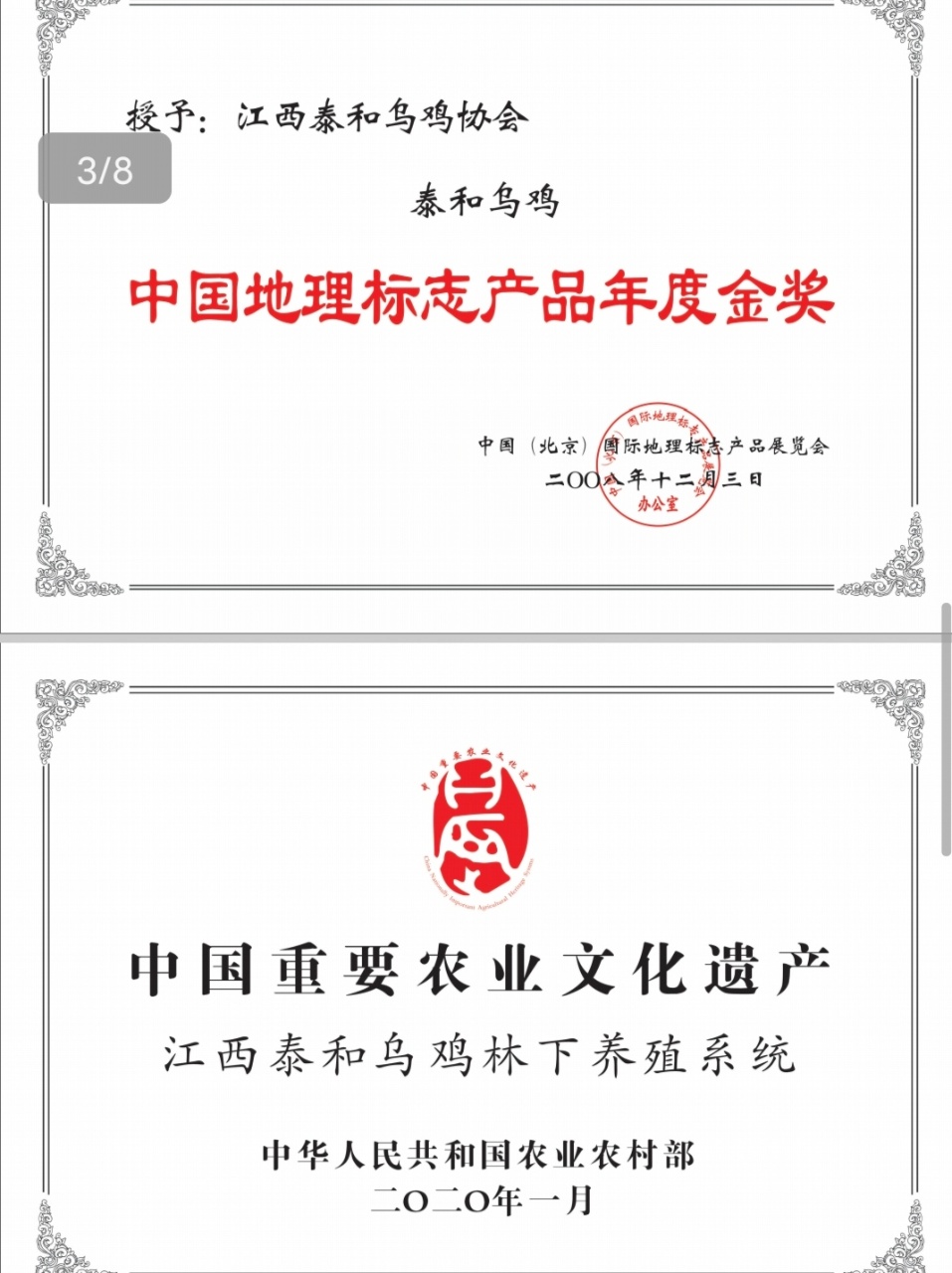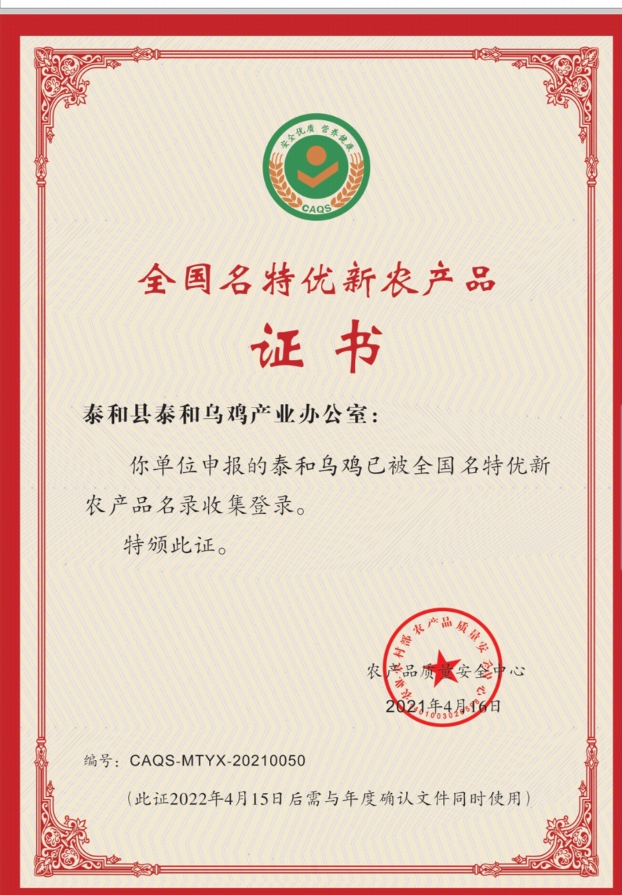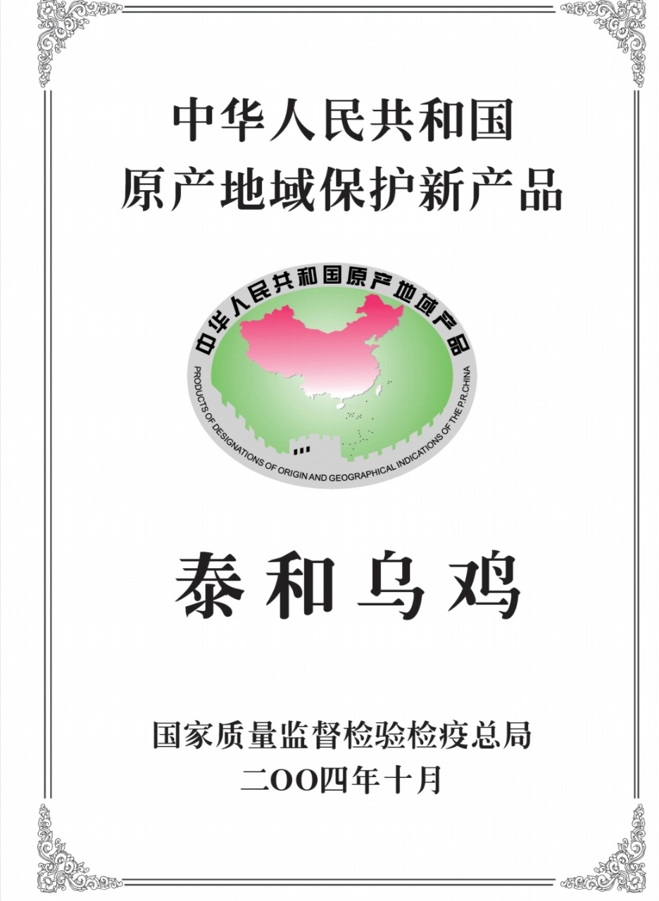 2010年03月25日,中华人民共和国农业部批准对“泰和乌鸡”实施农产品地理标志登记保护。