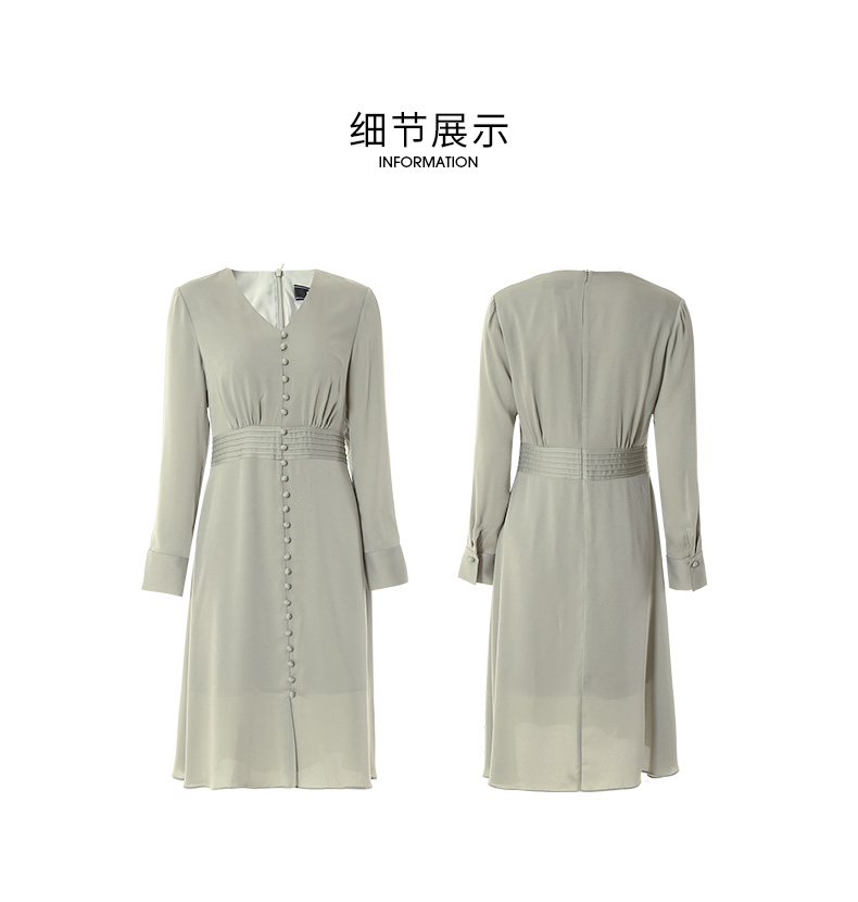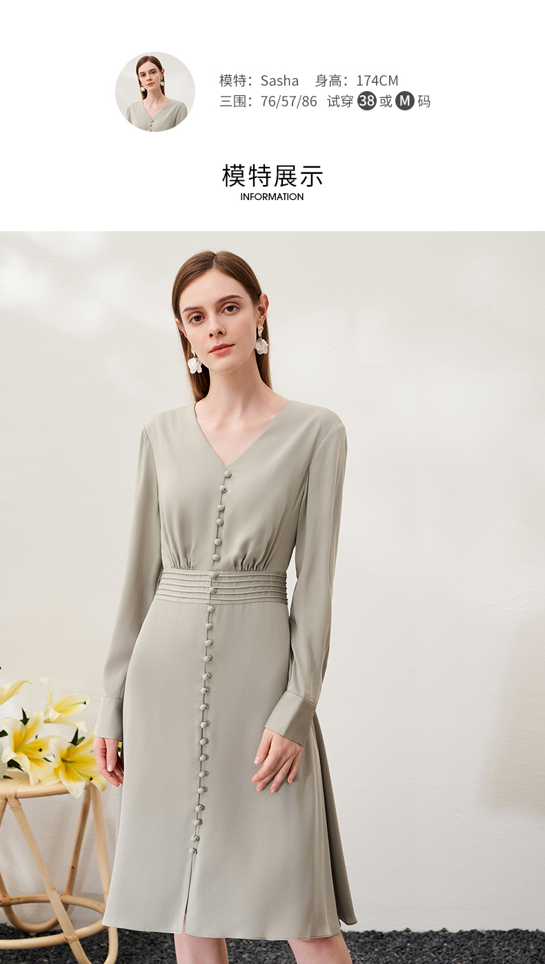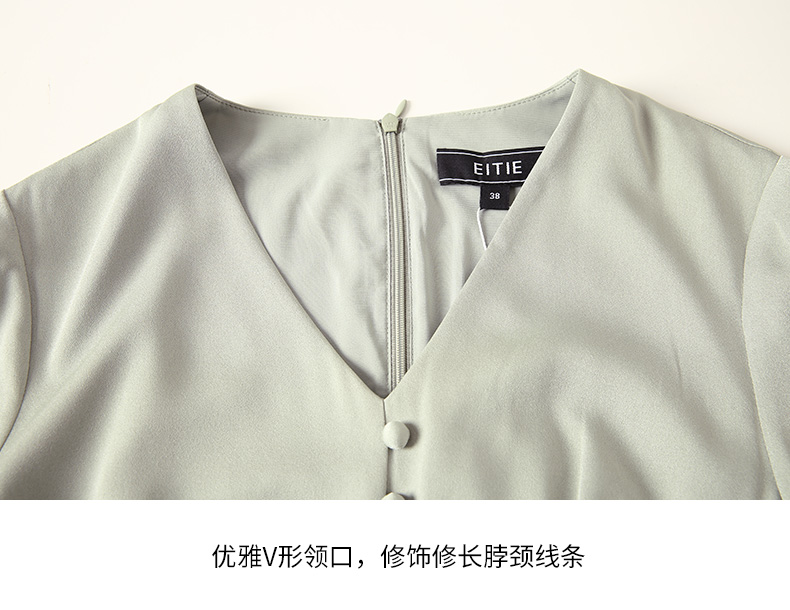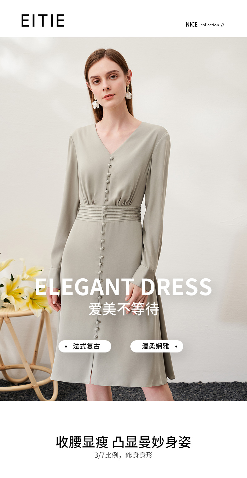 EITIE爱特爱春季新品V领高腰修身显瘦气质优雅连衣裙6907618