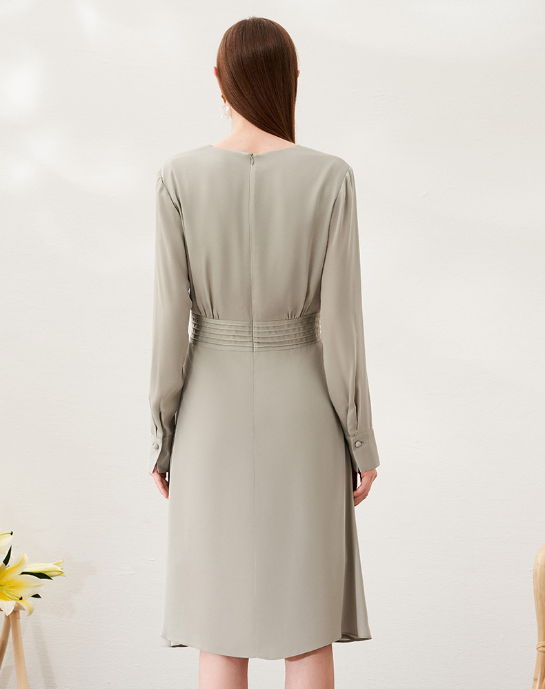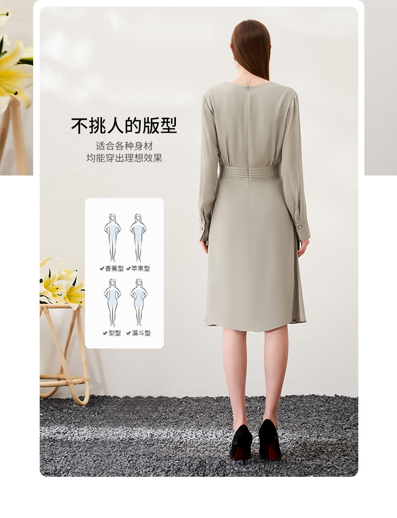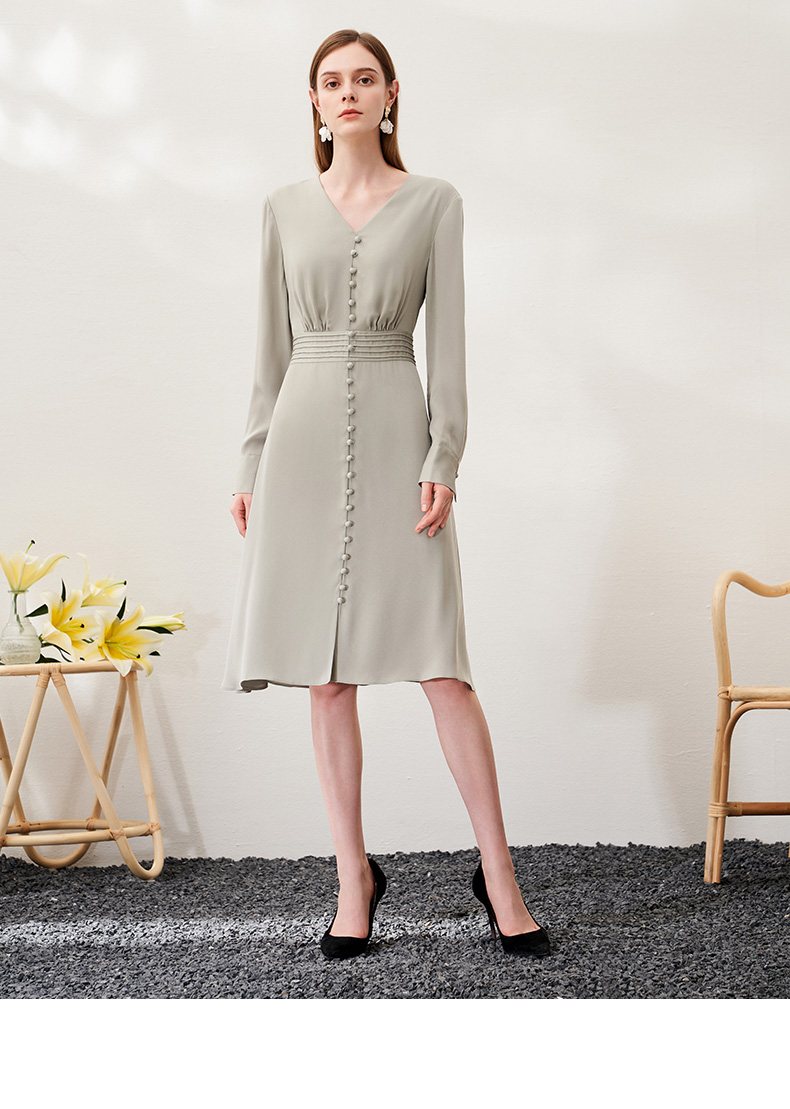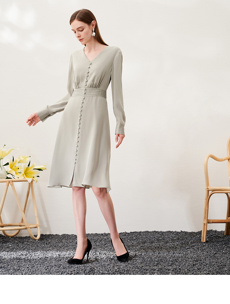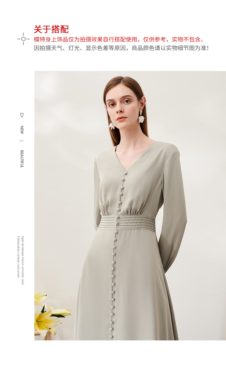 EITIE爱特爱春季新品V领高腰修身显瘦气质优雅连衣裙6907618