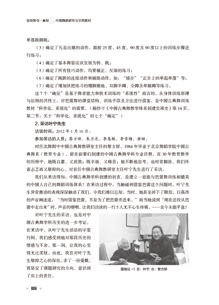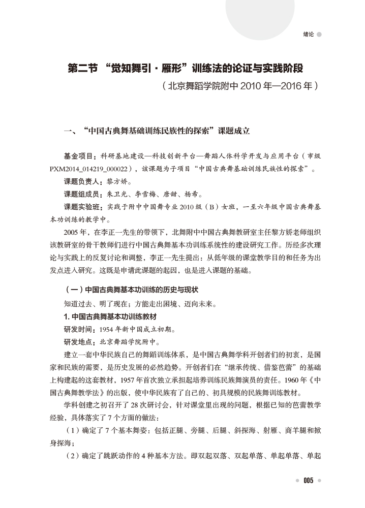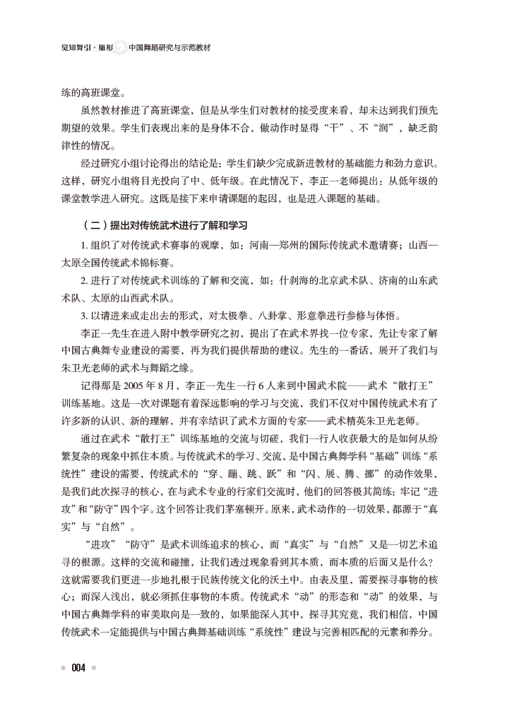 该教材是一本跨专业、跨舞种、跨学科的研究型教材。它是一本经过实践、认识,再实践、再认识直至最终建立完整教程的“工具书”,也是集艺术主张、审美导向和科学训练探索为一体的研究专著。无论是对实践教学的指导,还是对理论研究的启示,它都具有很高的学术价值。教材以北京舞蹈学院和中央民族大学的学科背景为基础,创立了以中国古典舞训练体系为研究基础、中国武术“导引术”为融合路径、中国少数民族舞蹈为多元拓展的训练体系,对大中专院校舞蹈专业的教学起到了很好的指导与促进作用。 |