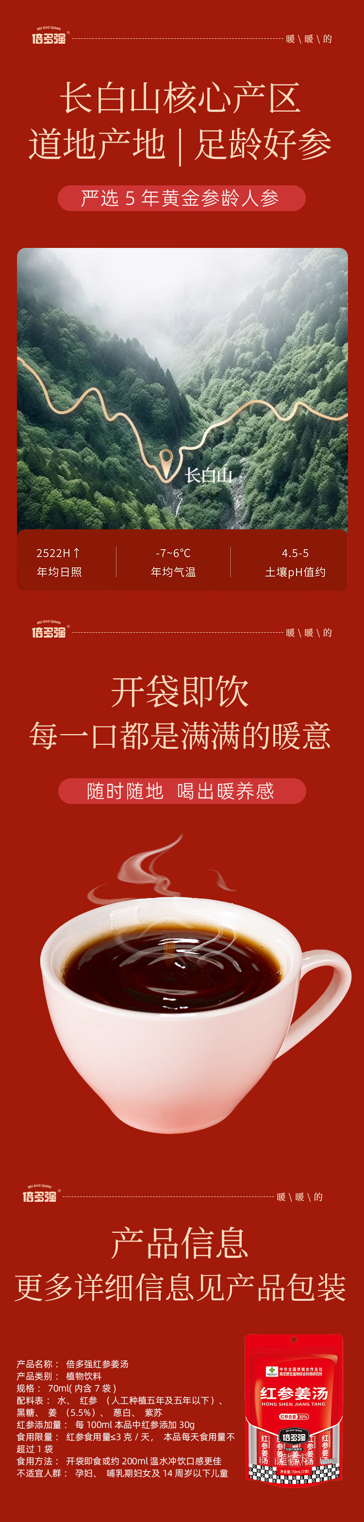 【严选好料】倍多强红参姜汤 30%红参含量 70ml/袋 (10ml*7条)独立包装