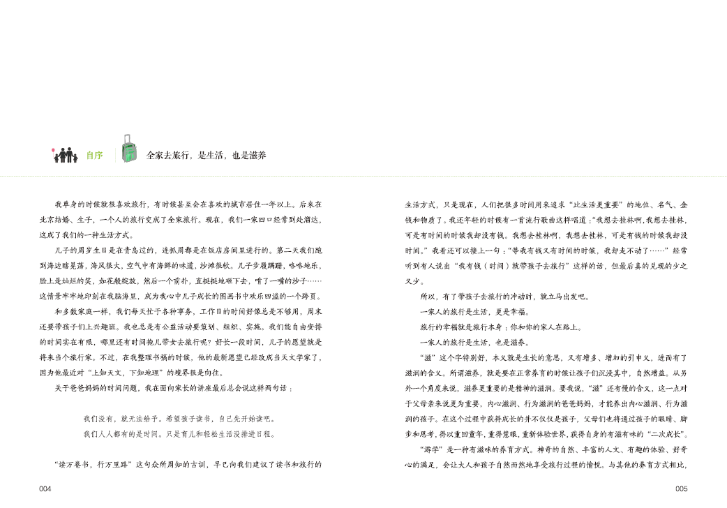 因为父母的优势与影响之大远胜于教师,他们不但要教孩子做人,还要给予长时间的陪伴和精神与物质上的全面支持。《陪你走过千山万水》是一本难得的好书,因为它是智慧与实践的结晶,因为它让我们看到了什么是充满幸福与希望的新家庭和新生活。