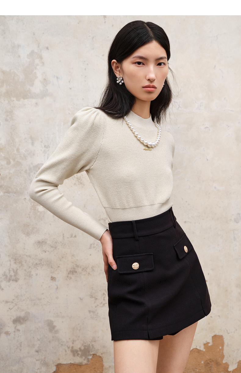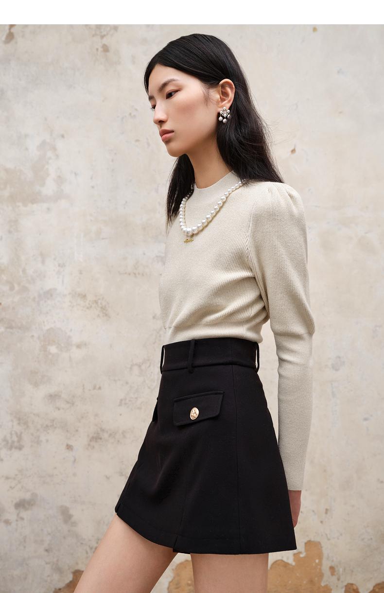 MAXRIENY美式复古风黑色A字高腰裤女秋冬新款休闲百搭裤子(货号:MS88PA513)