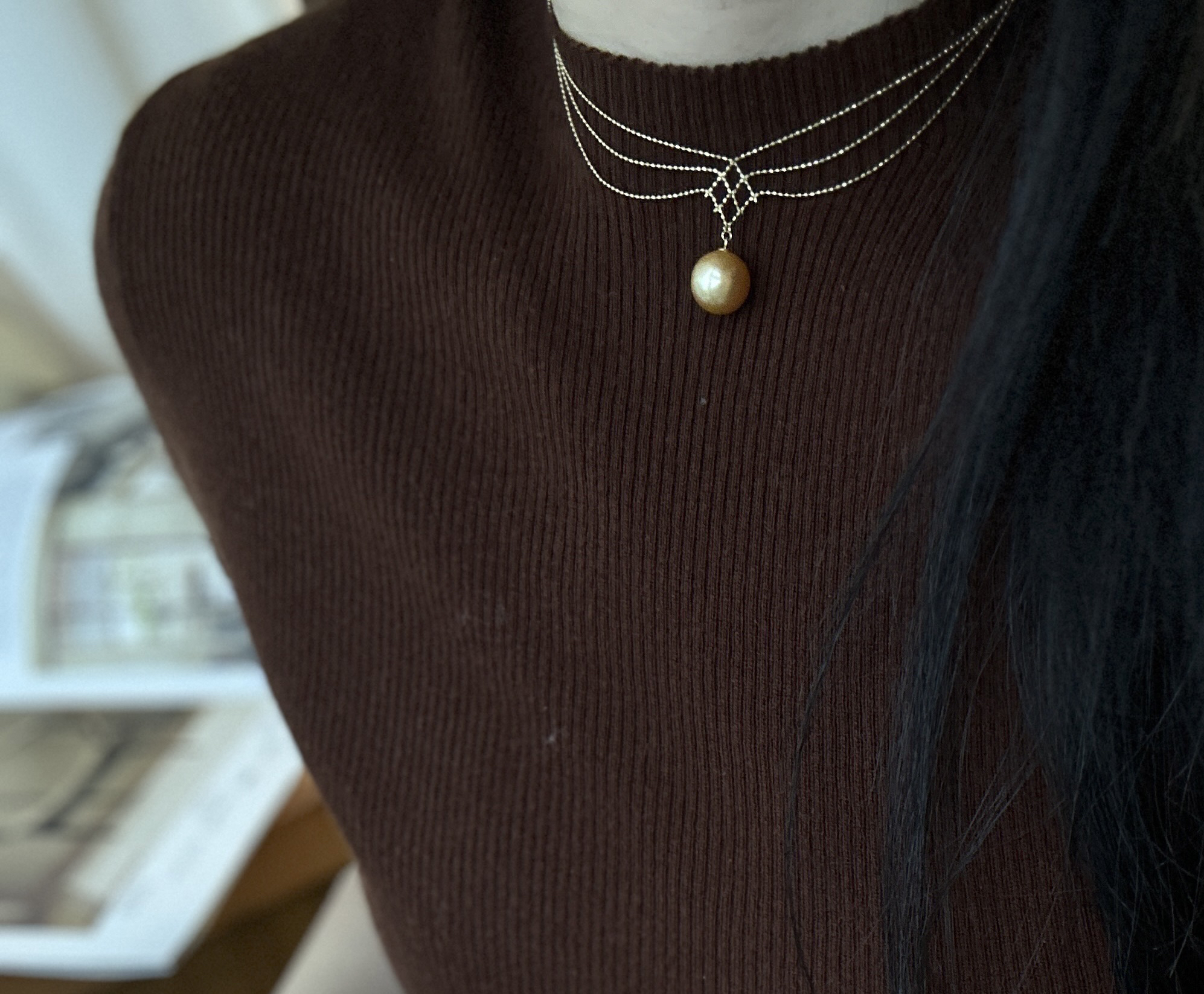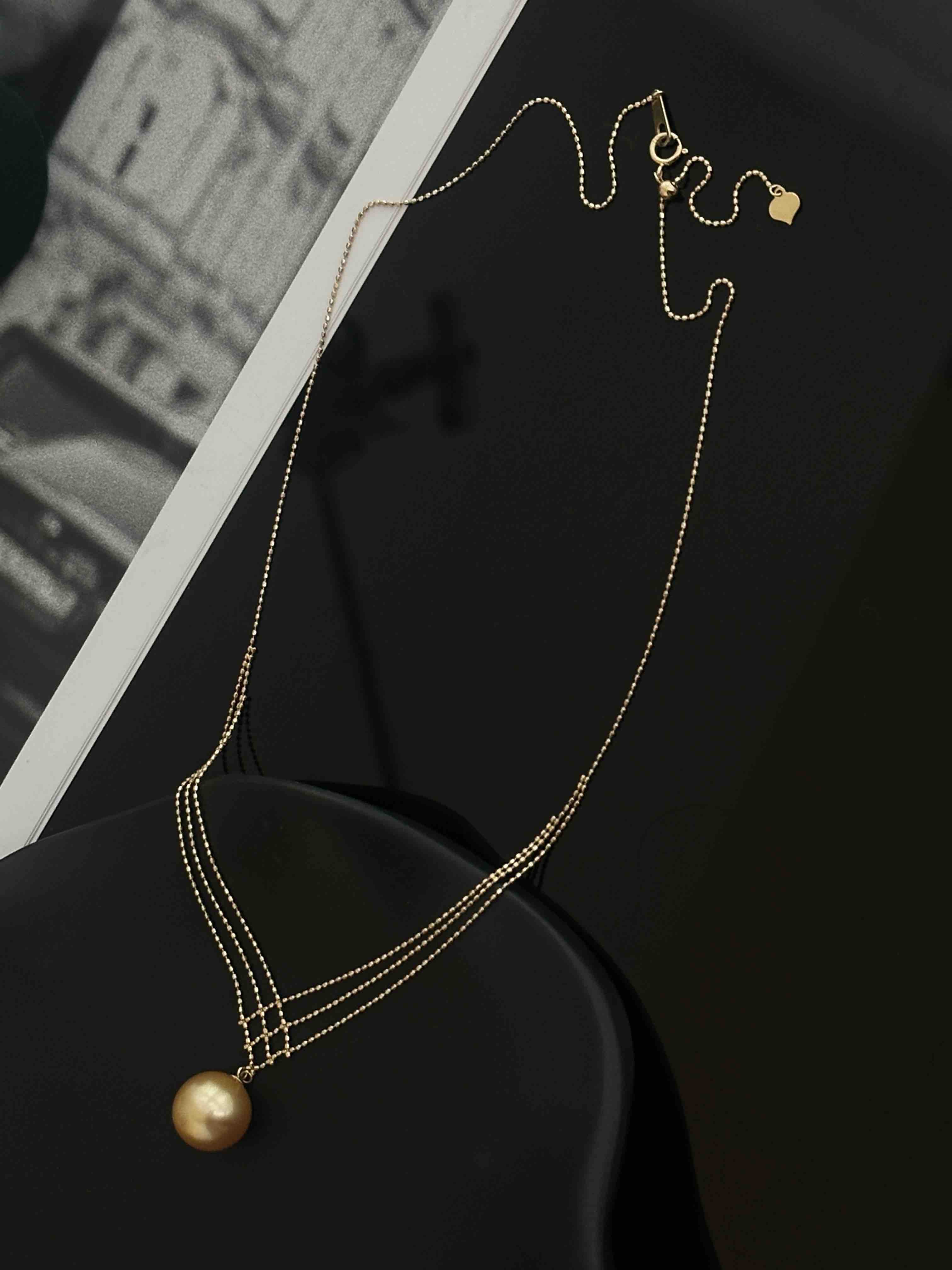 今晚给大家上新的一串,看过来,这一款好美,特别喜欢它的上身感,「颈间的落日小金球」✨