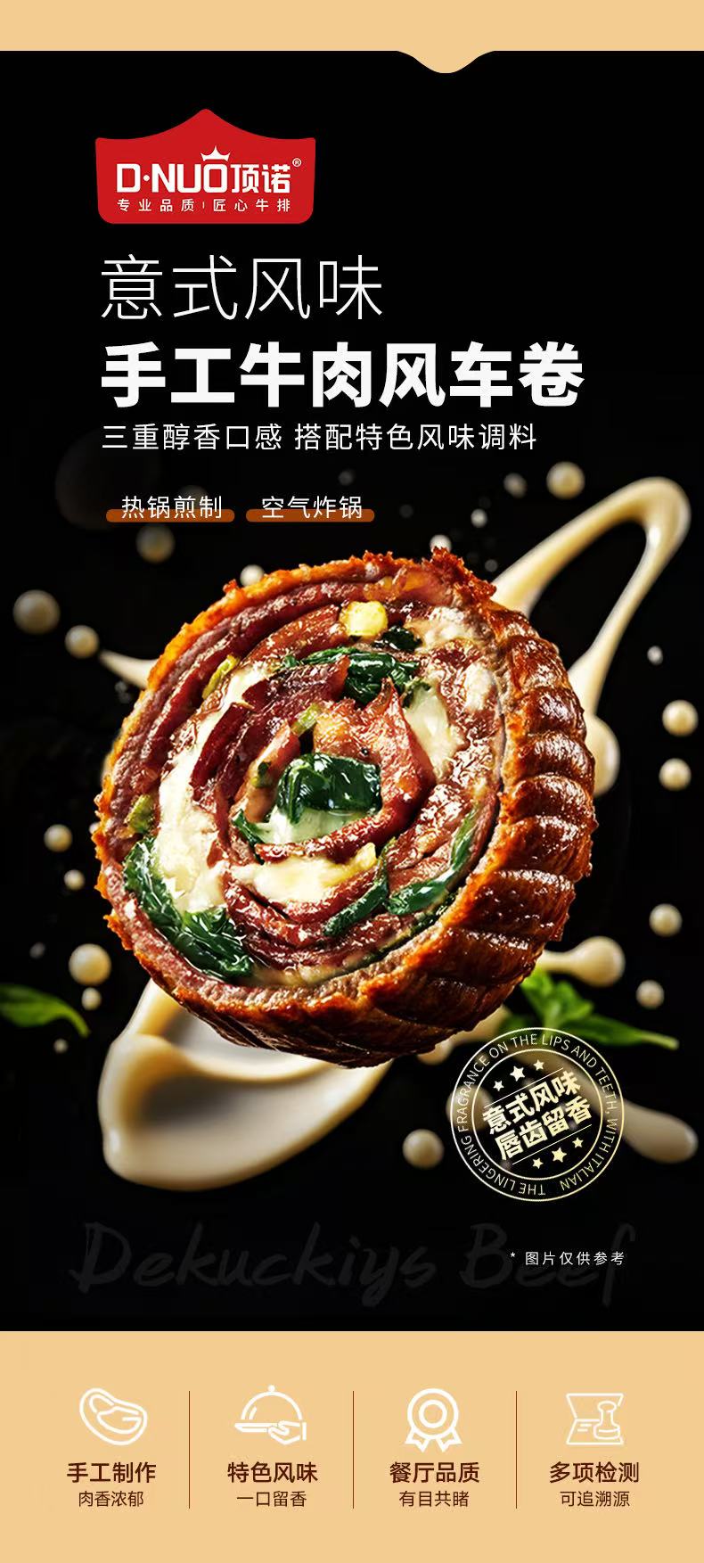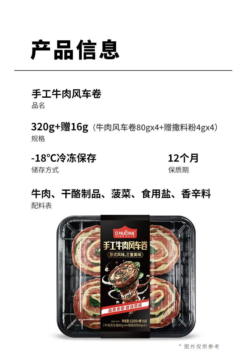 顶诺手工牛肉风车卷/1盒(牛肉风车卷80g*4个+赠撒料粉4g*4小包)生产日期:25年4月