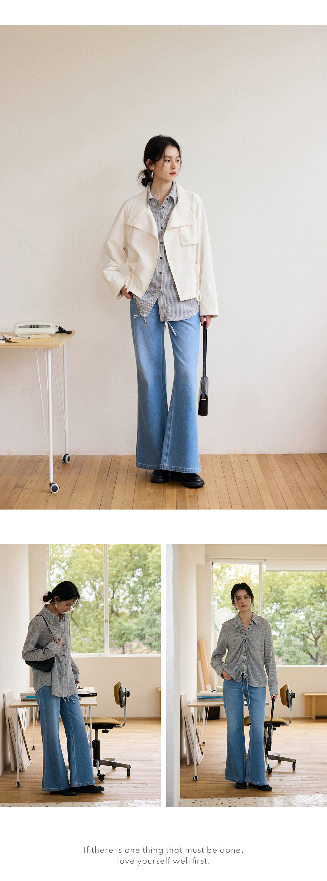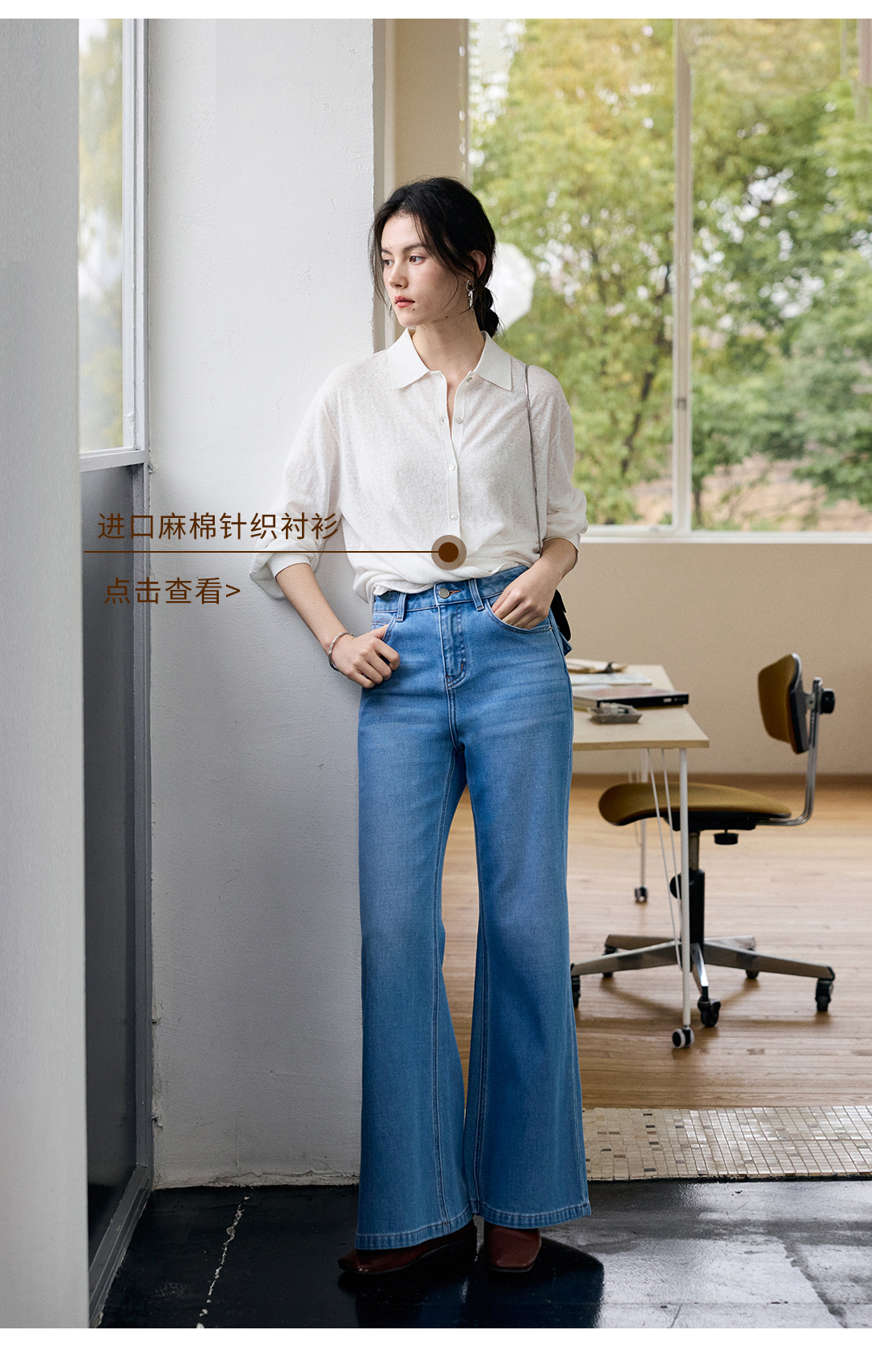 水洗蓝筒喇牛仔裤