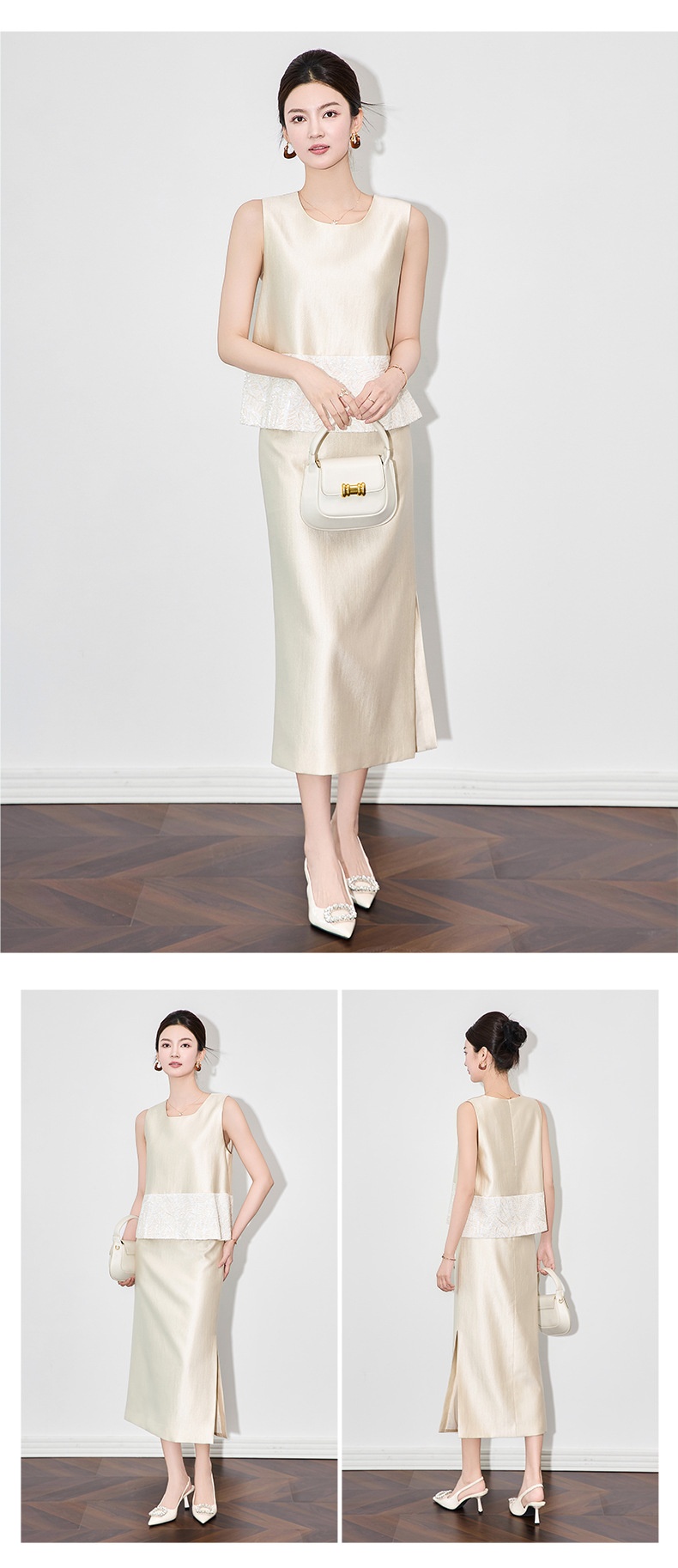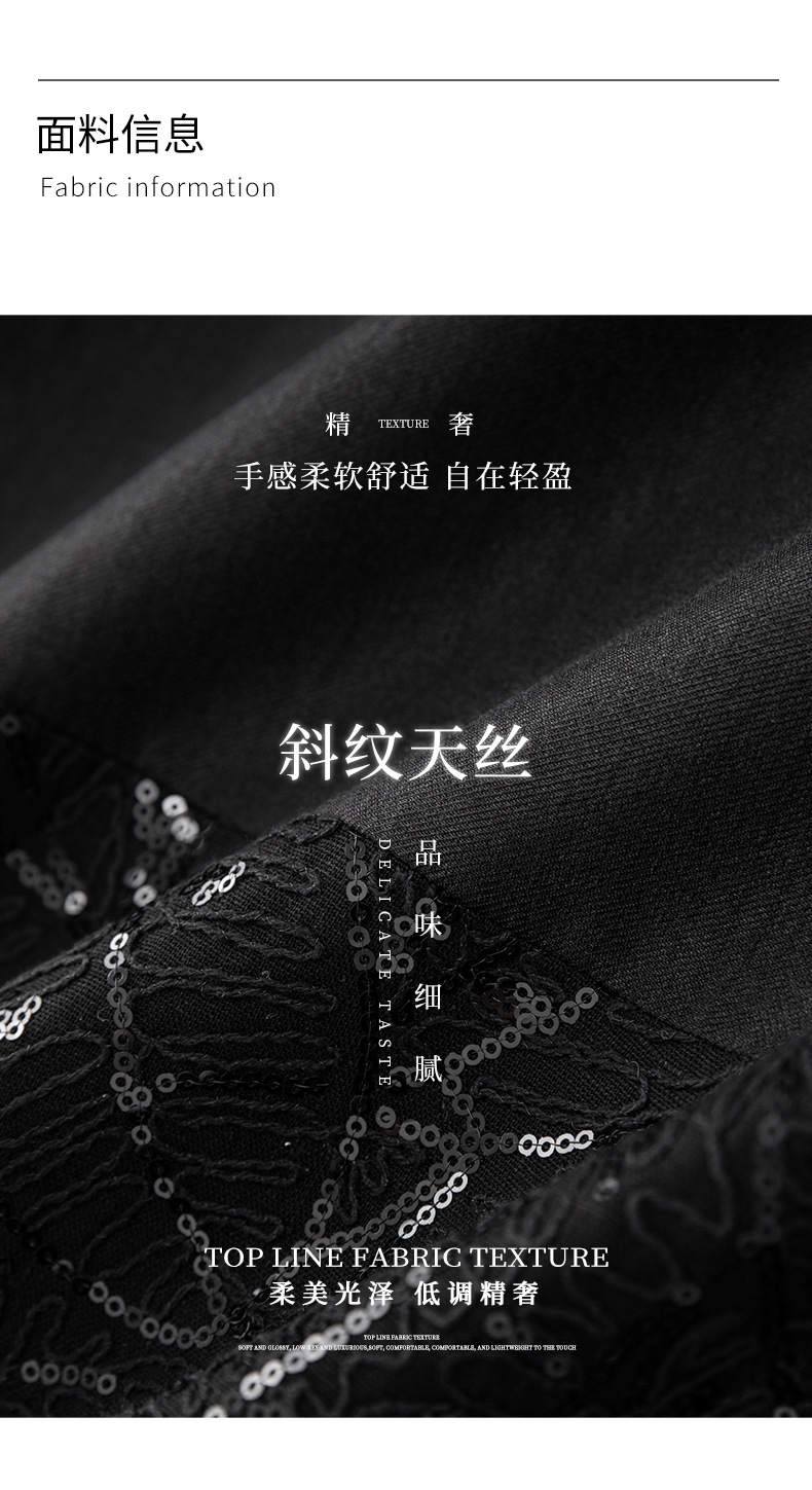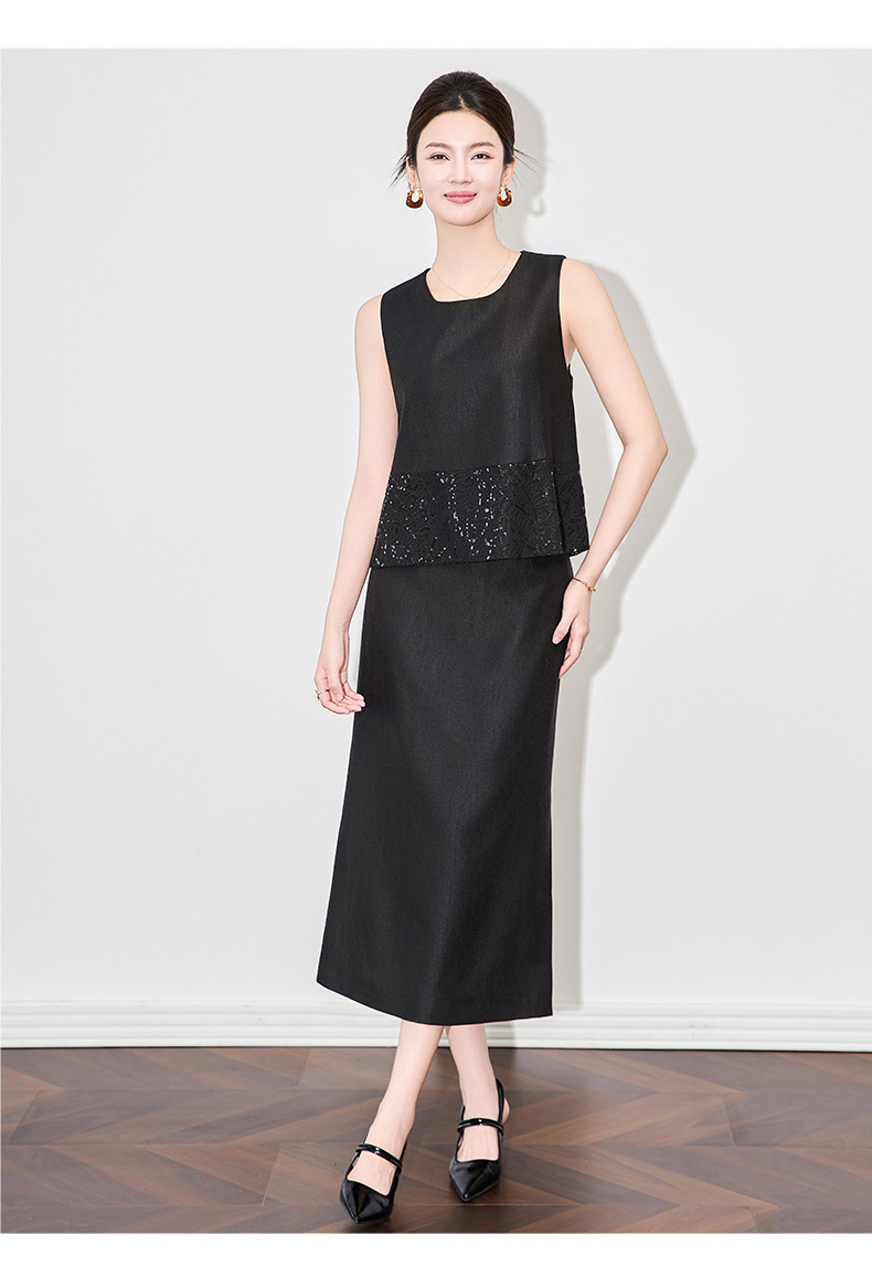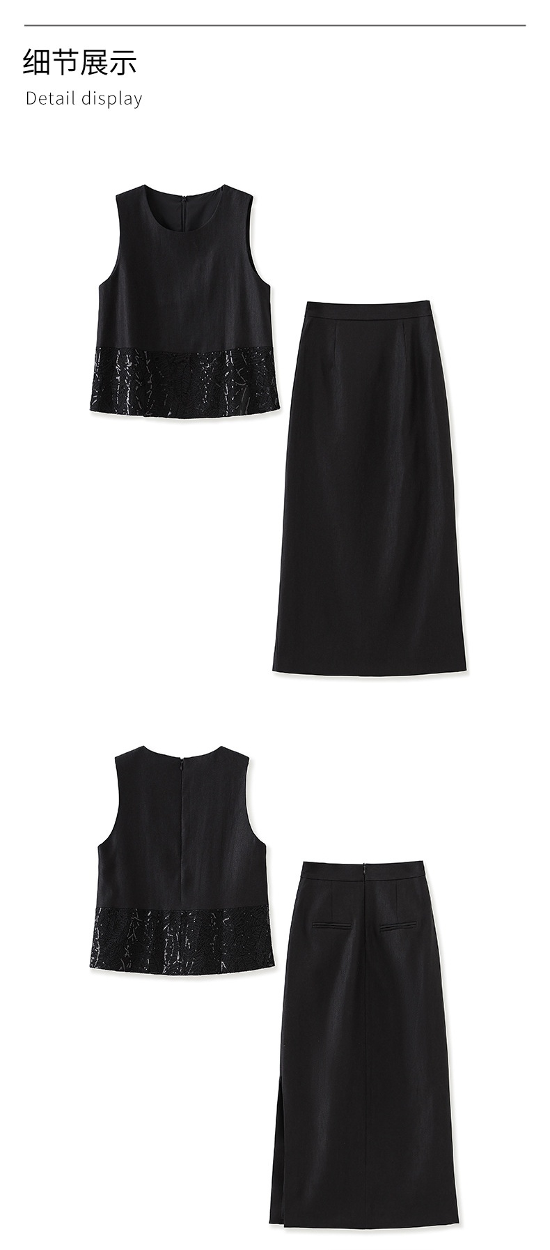 「高货wl」全新升级【铂金会员431/天猫579/差价148】(99427)洛诗琳法式优雅亮片刺绣马甲时尚天丝直筒半身裙两件套女