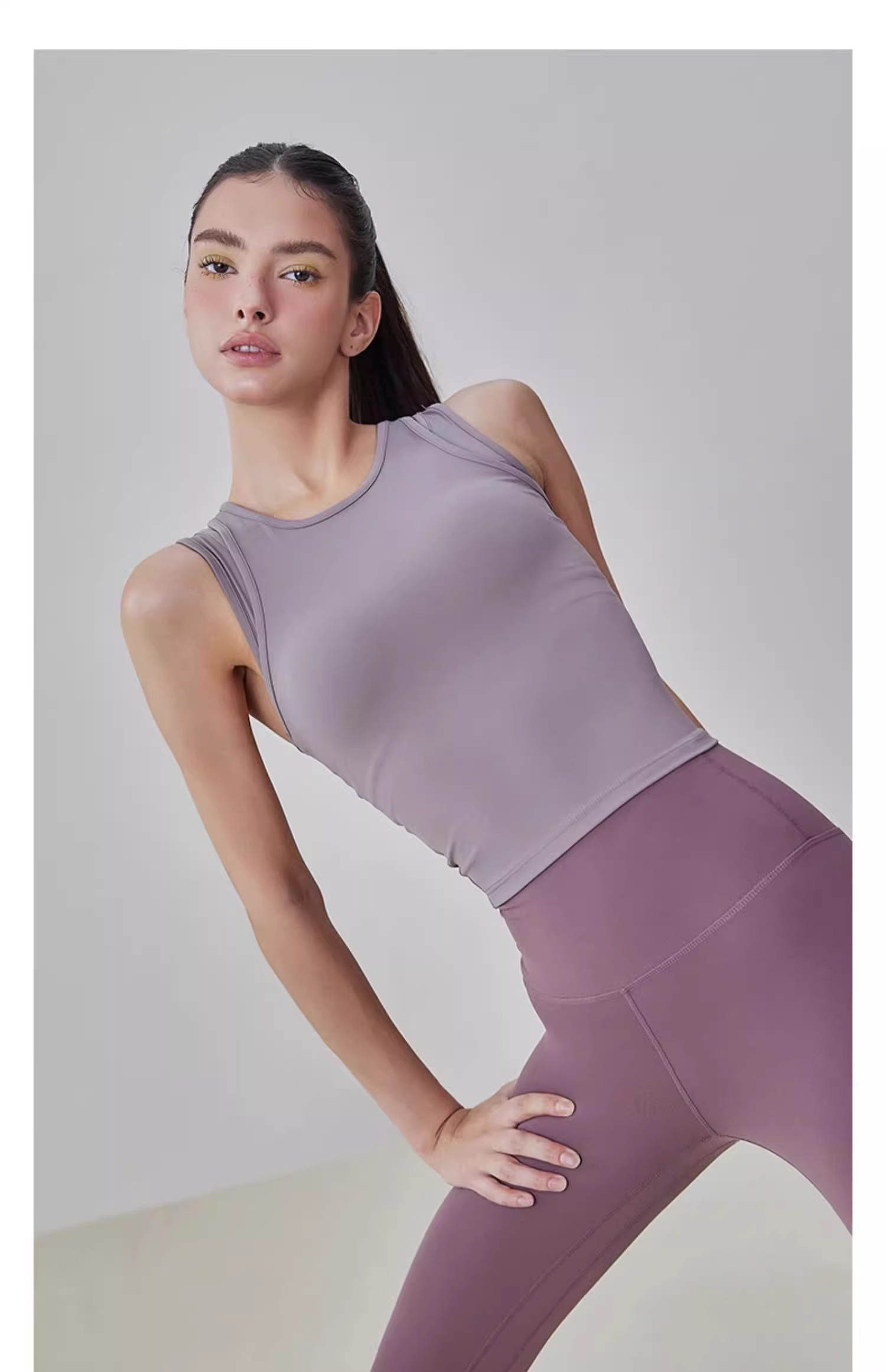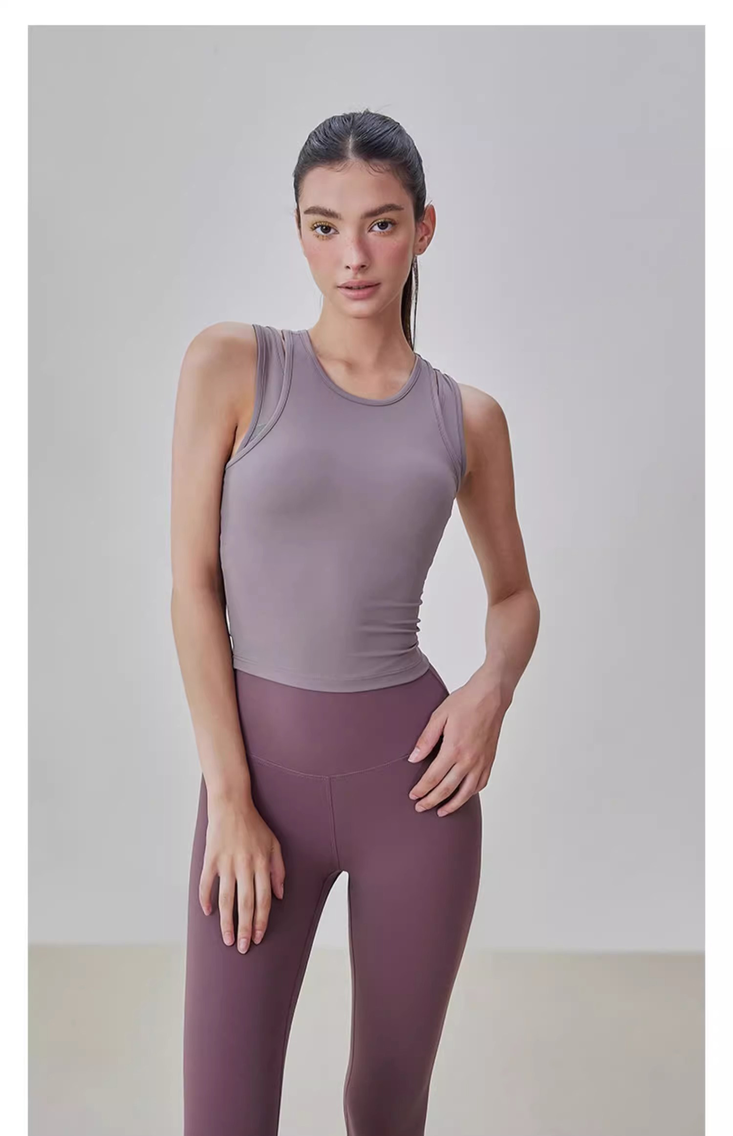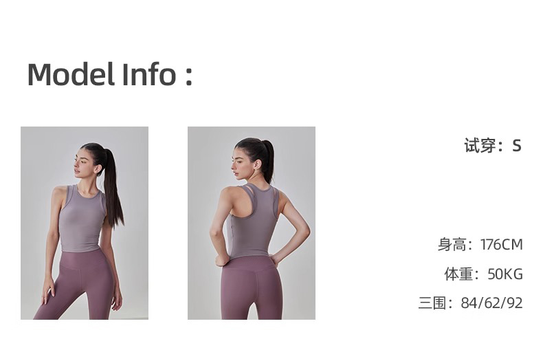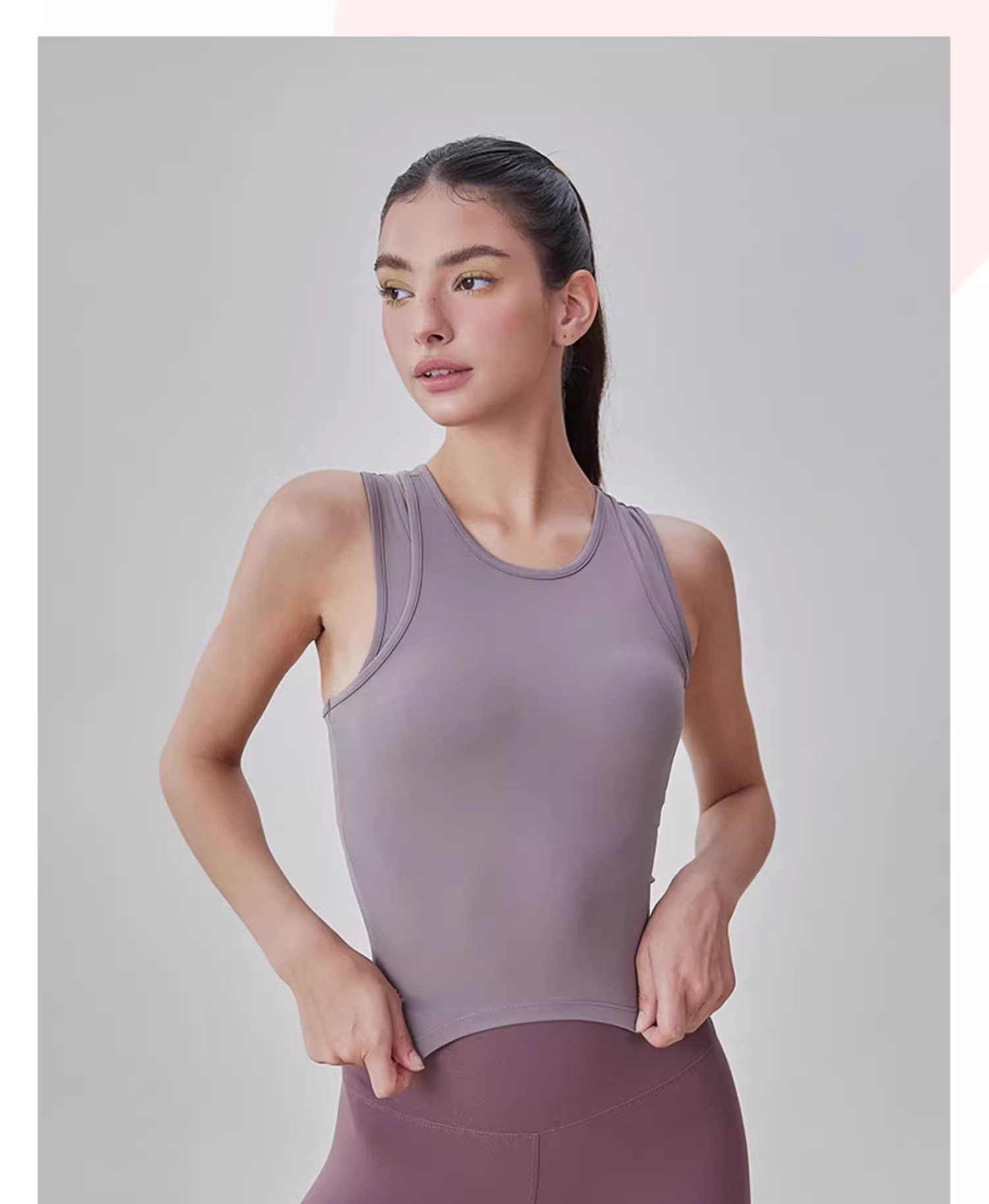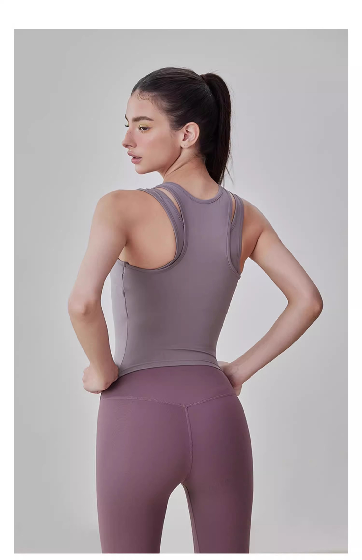 跃牌【安琪拉系列】新款运动背心一体杯宽肩带高强度工字美背假两件瑜伽背心BX-5020