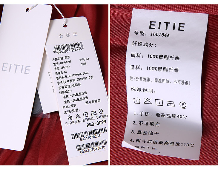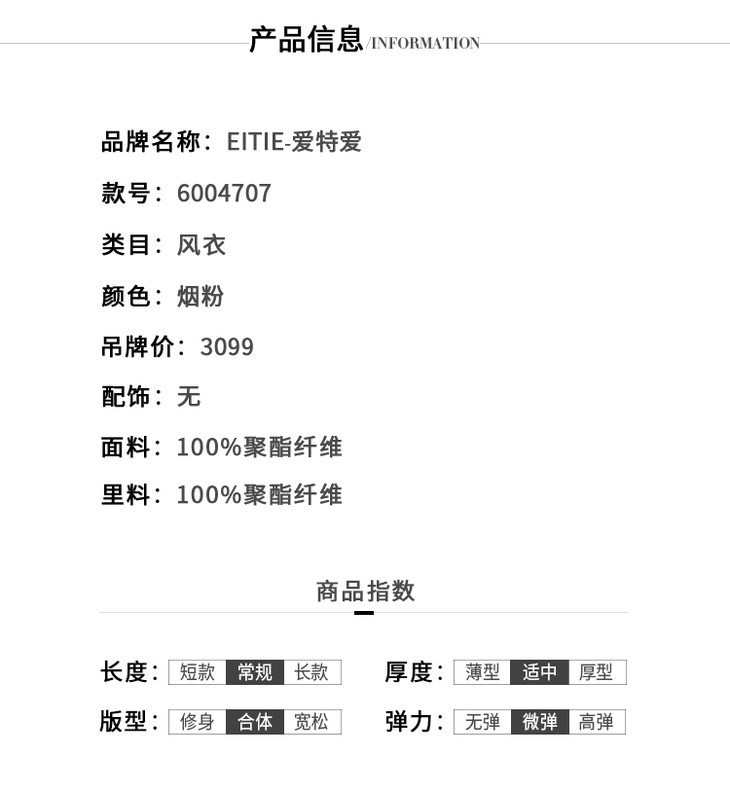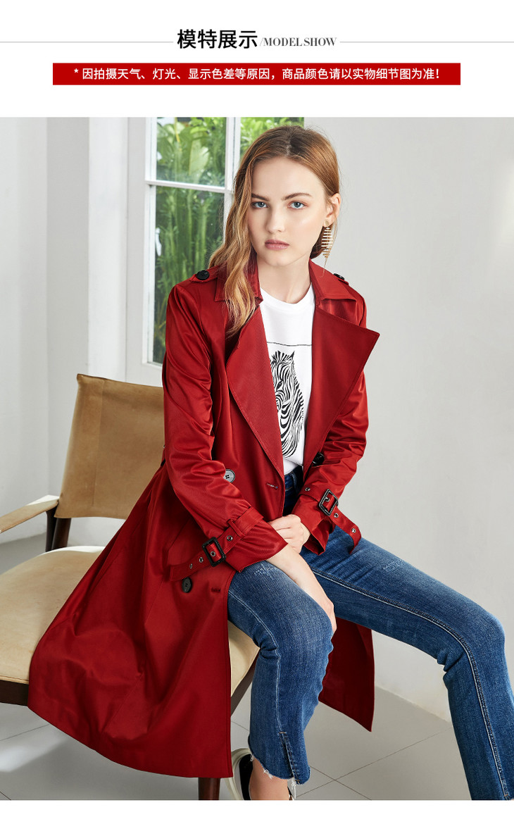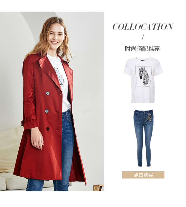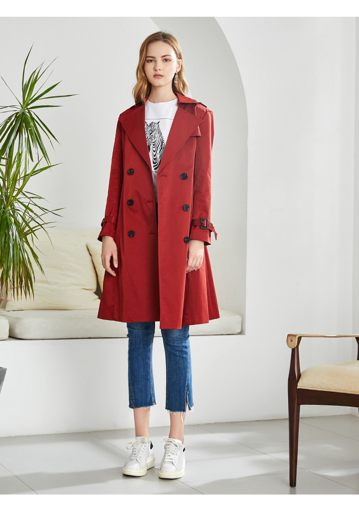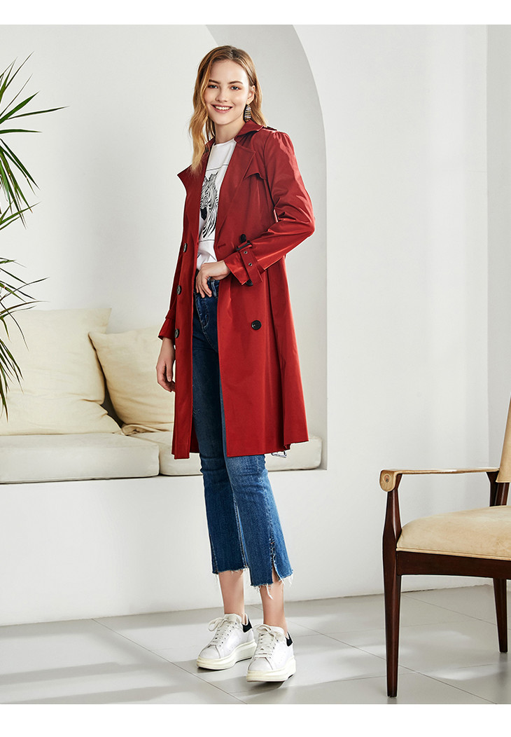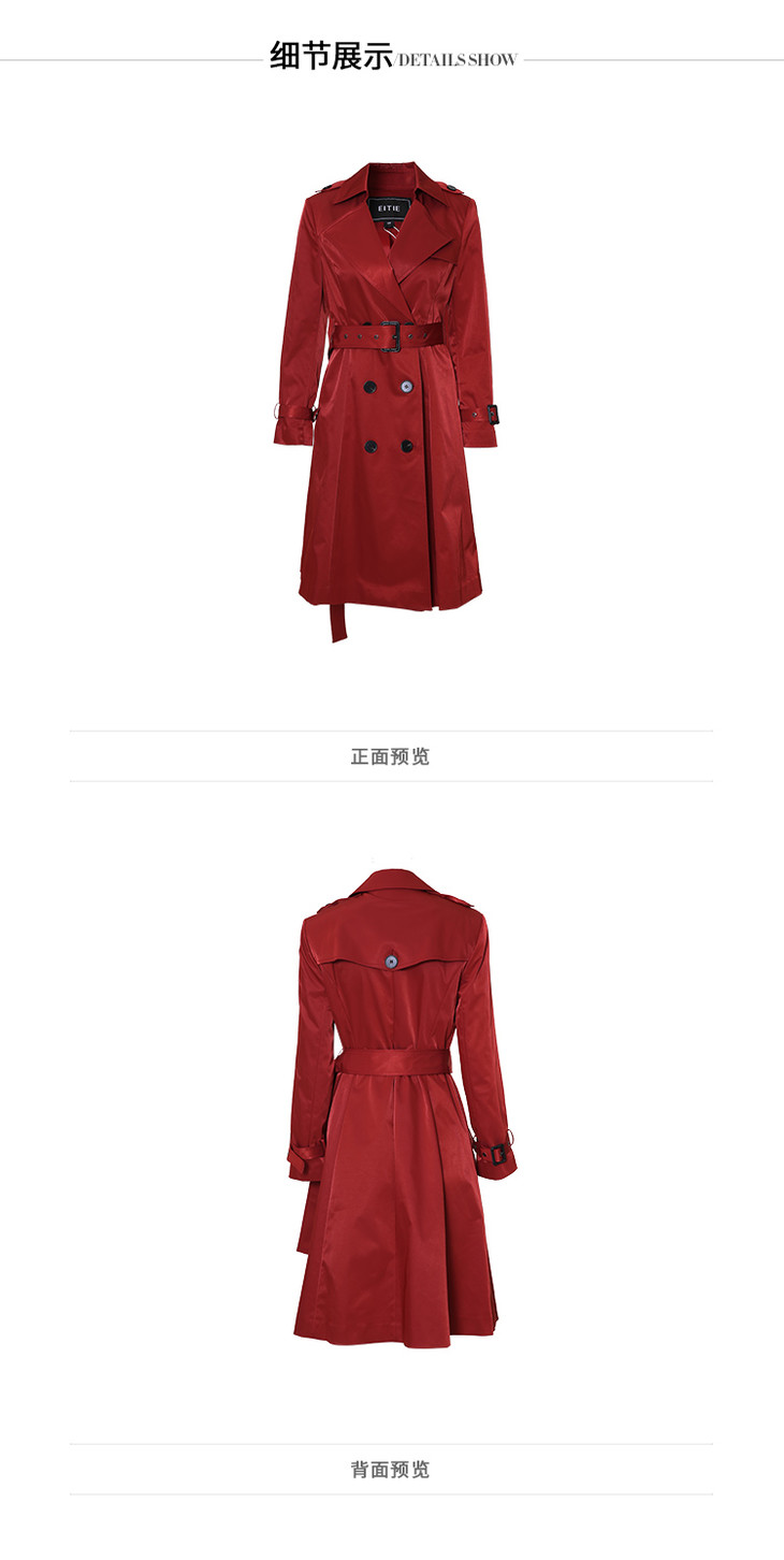 EITIE爱特爱女装秋季新款洋气复古经典翻领双排扣风衣外套女6004707