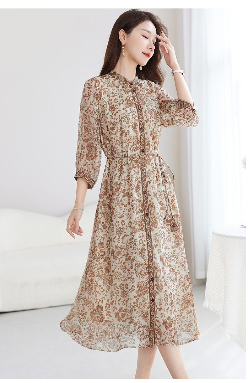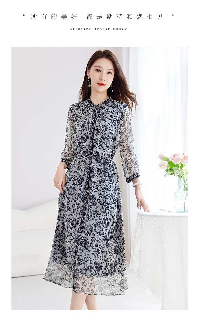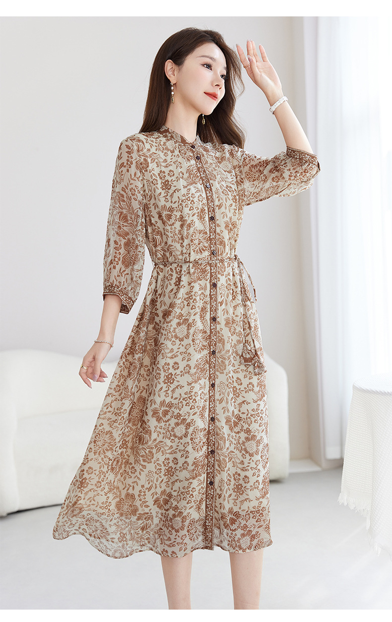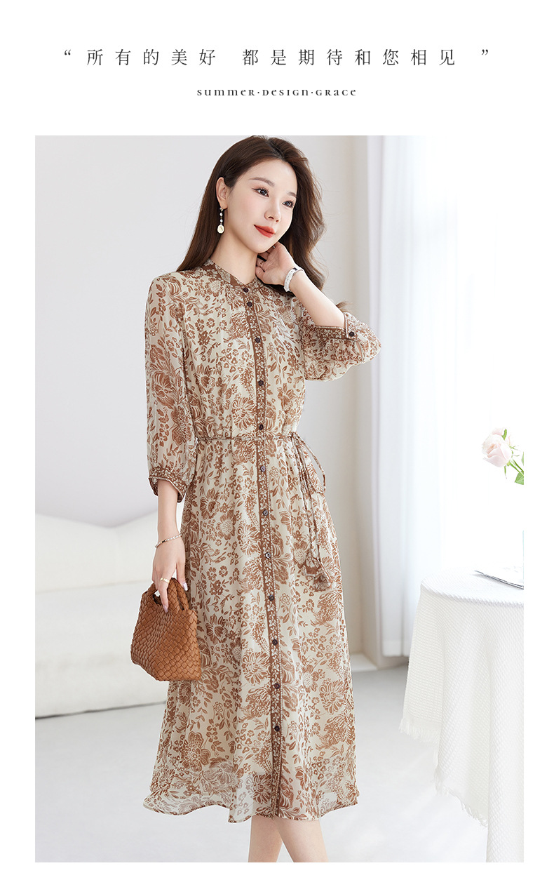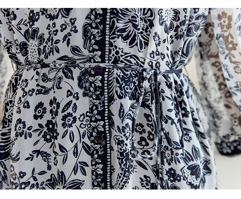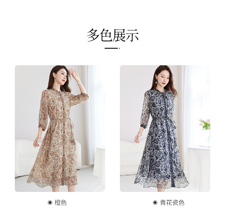 V领乔其印花乔其真丝,显瘦夏100%桑蚕丝连衣裙SM-82599932
