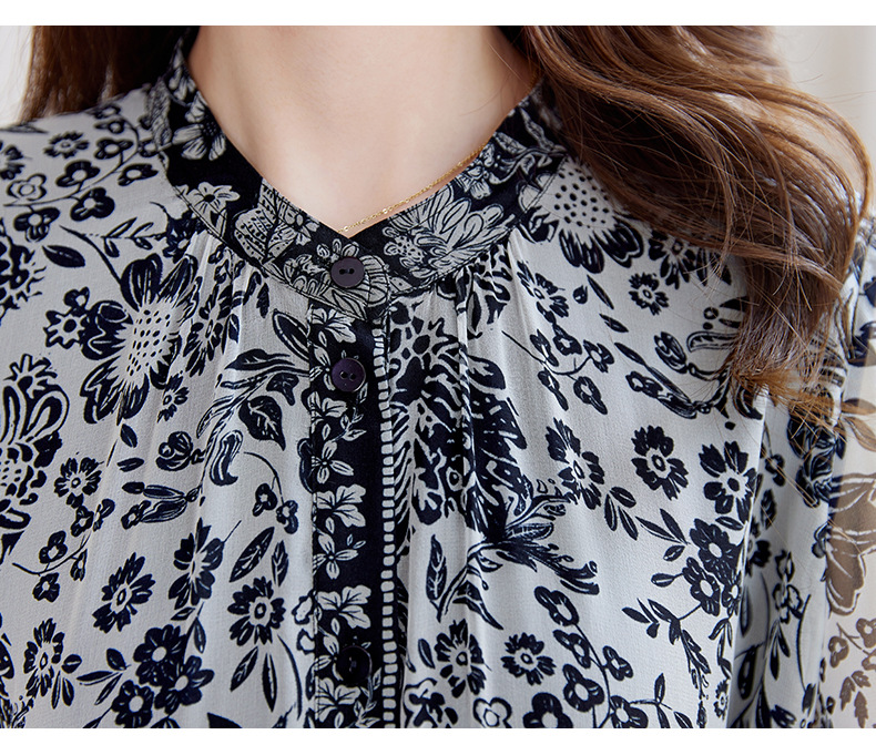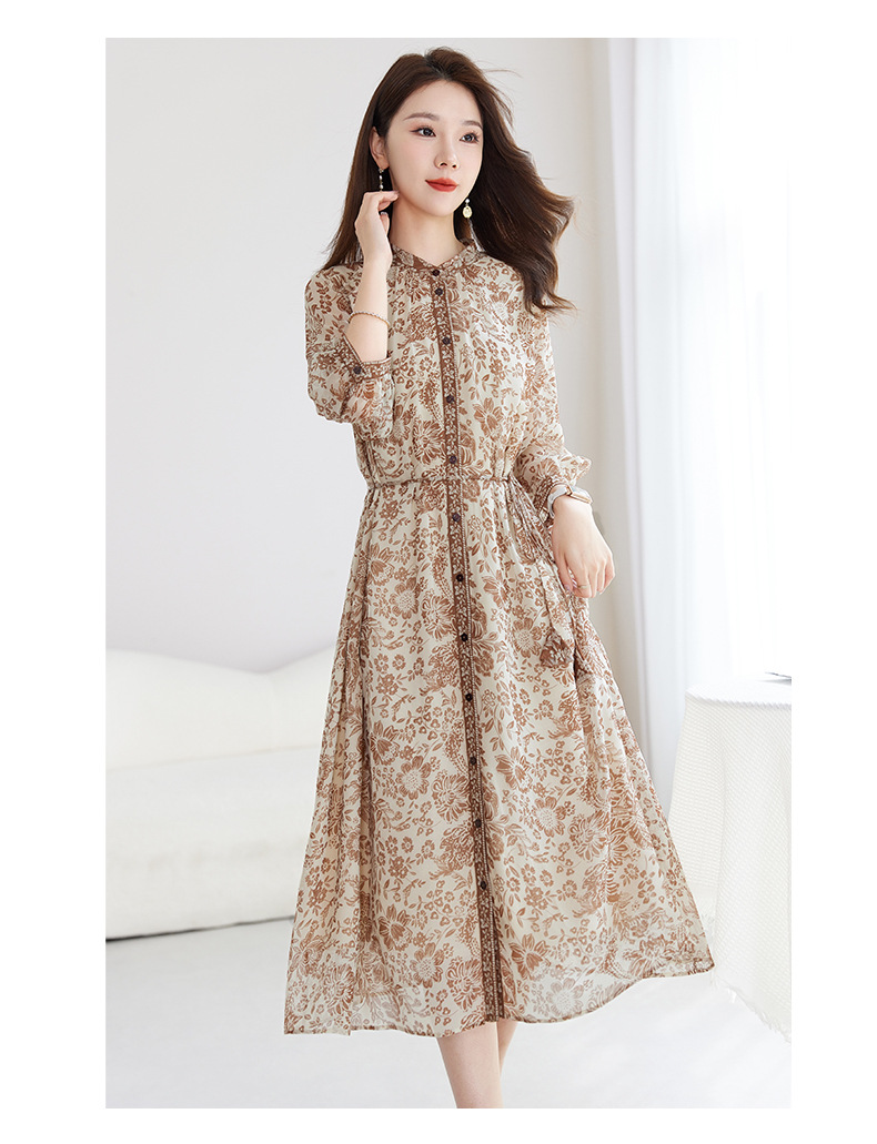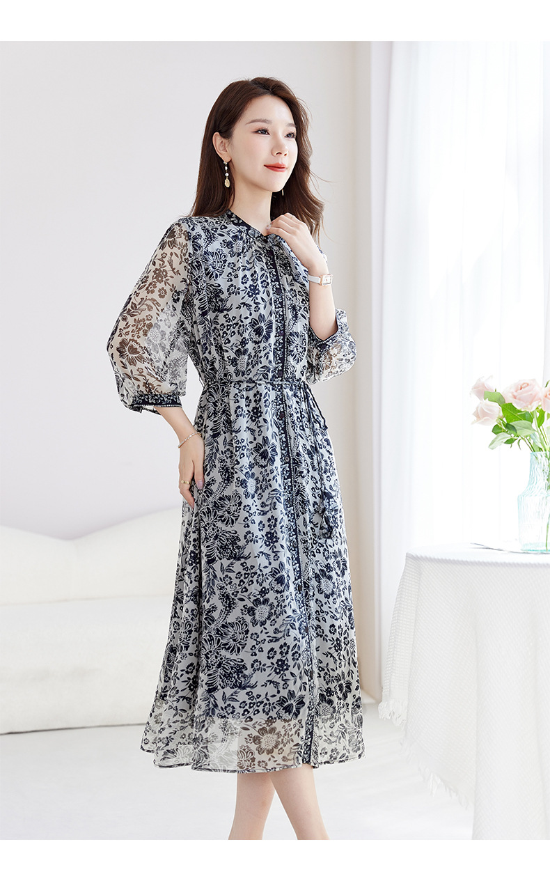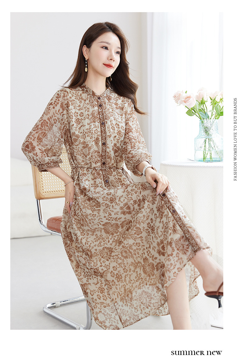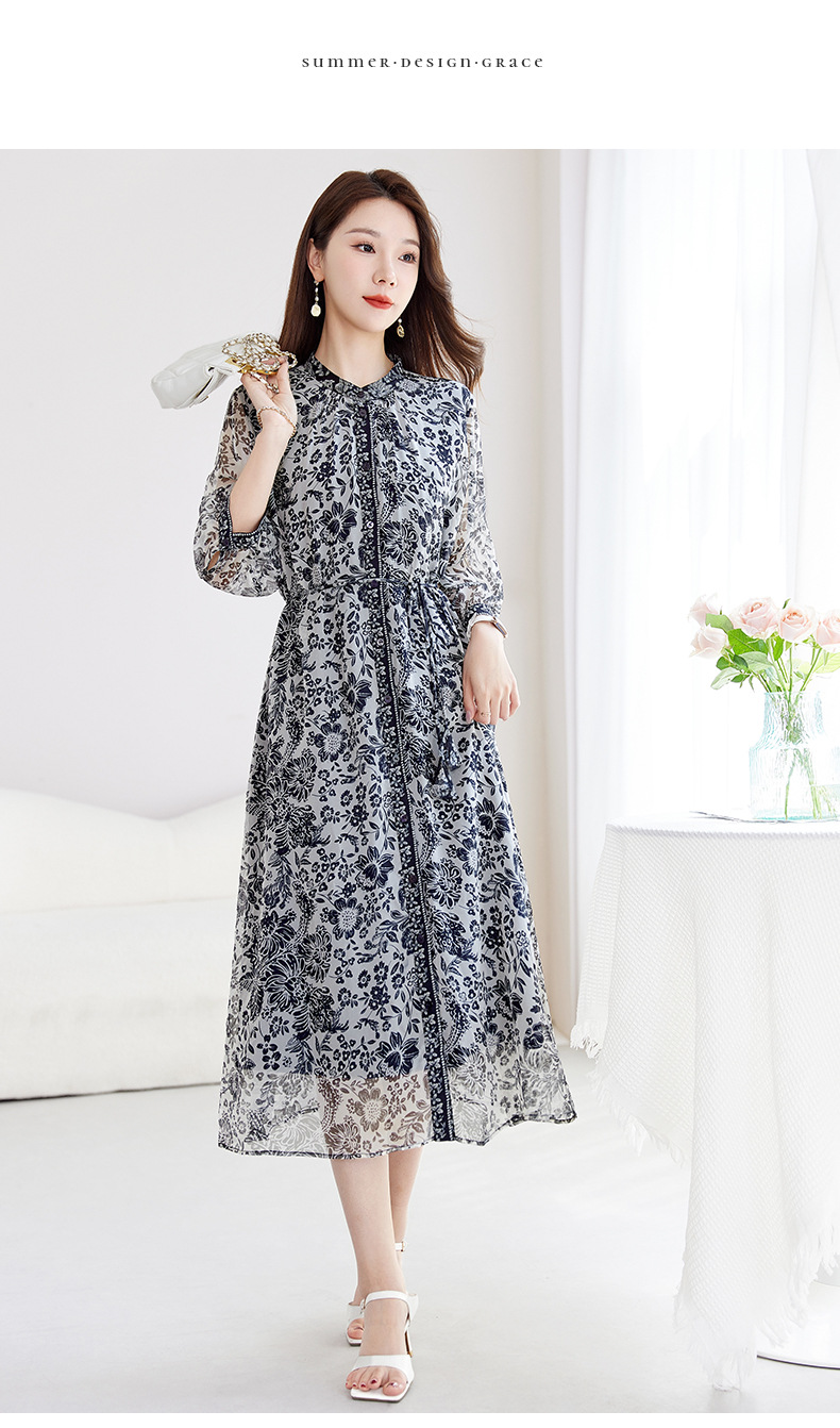 V领乔其印花乔其真丝,显瘦夏100%桑蚕丝连衣裙SM-82599932