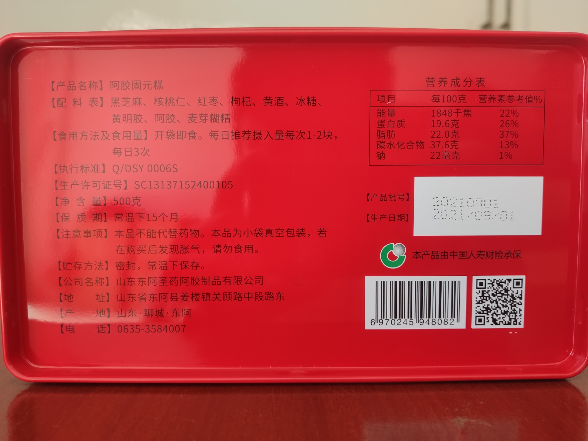 1阿胶固元膏2盒 *500g 共1000g