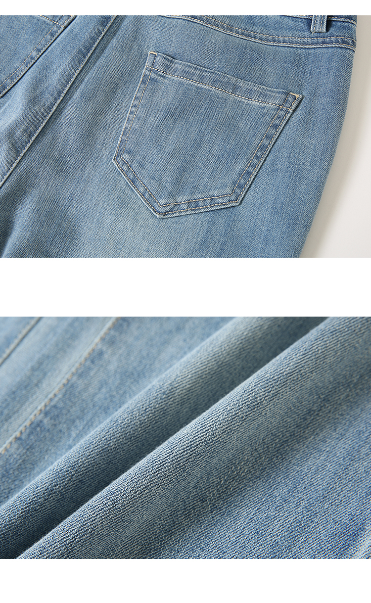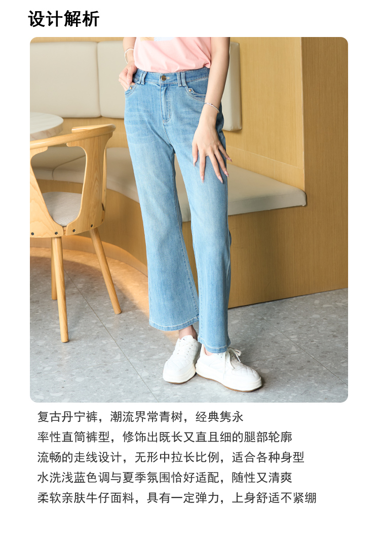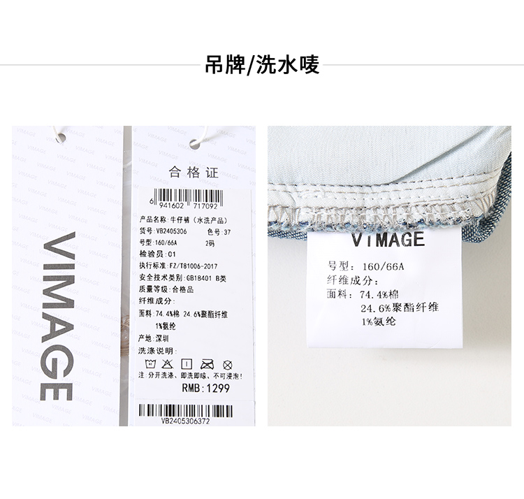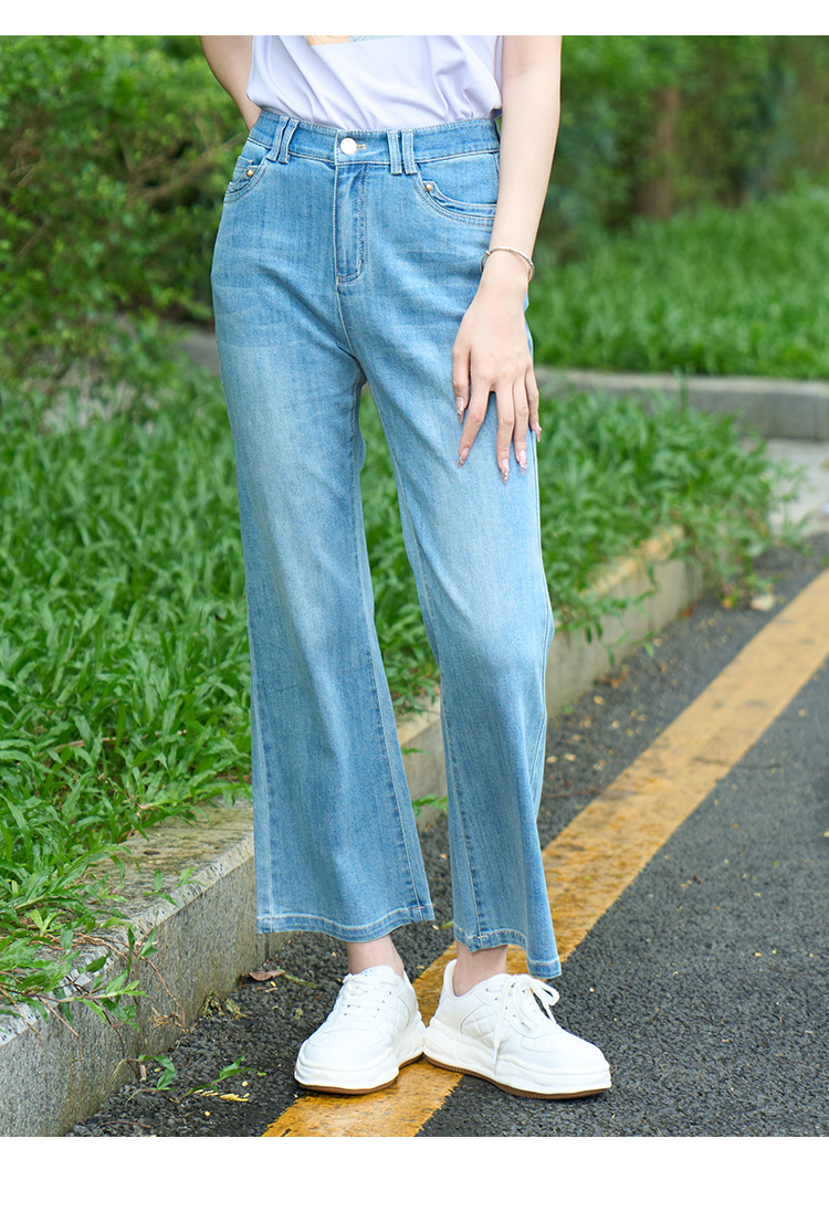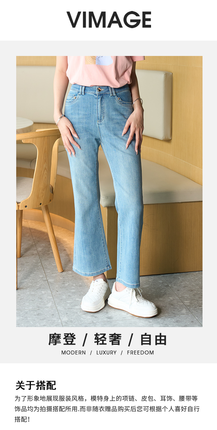 VIMAGE纬漫纪时尚高腰百搭显瘦经典蓝色微喇牛仔裤夏季新款VB2405306