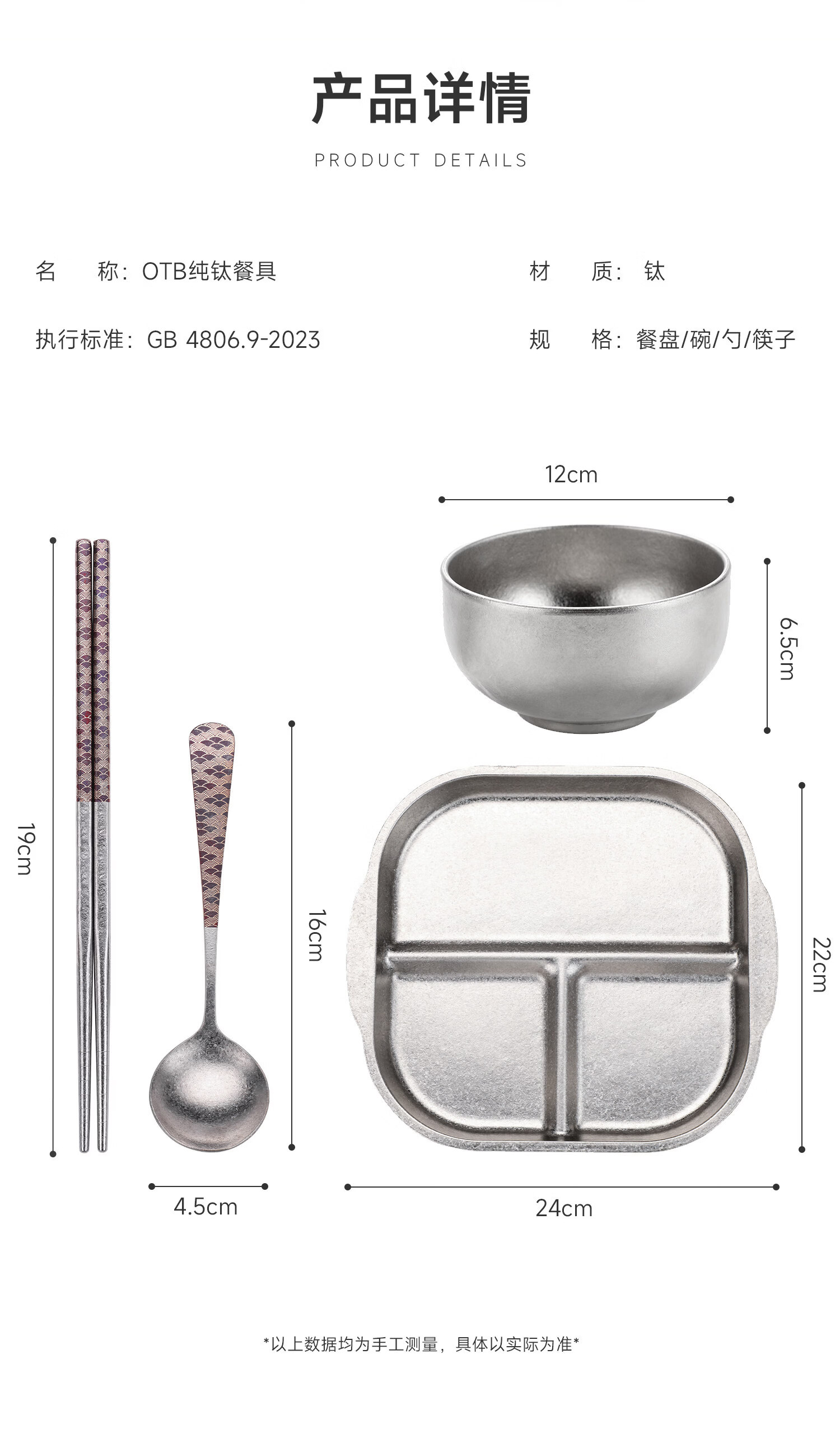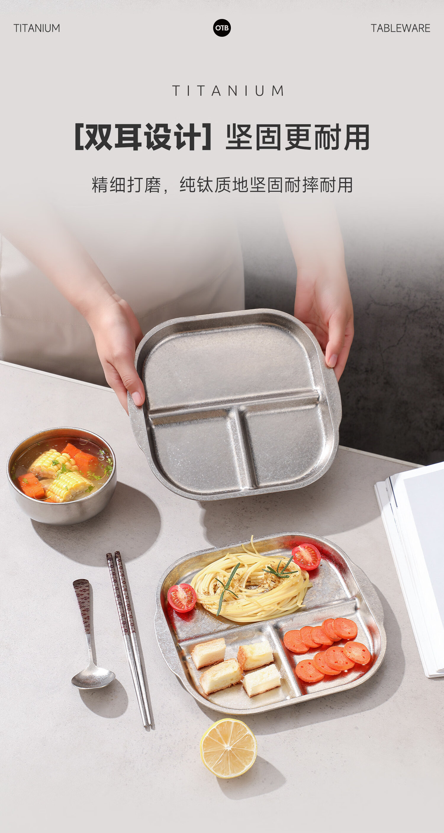 OTB 纯钛分格餐盘套装 成人定量减脂分餐盘 儿童可用