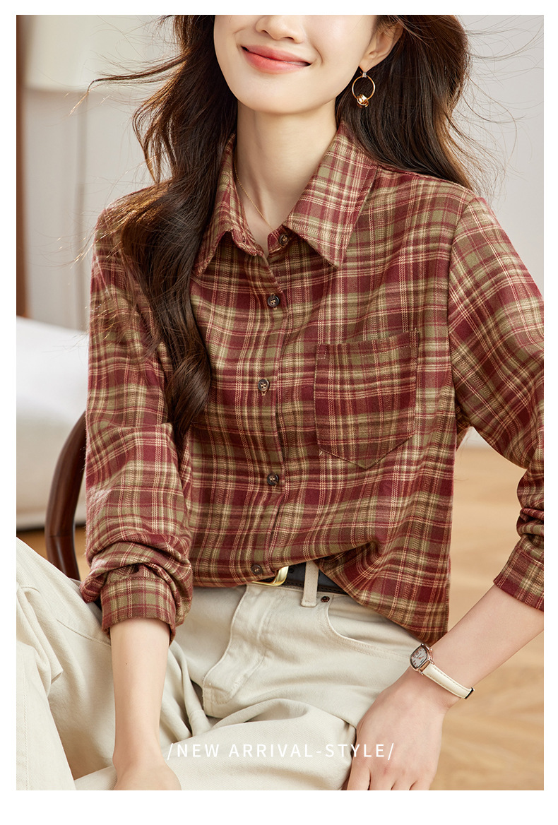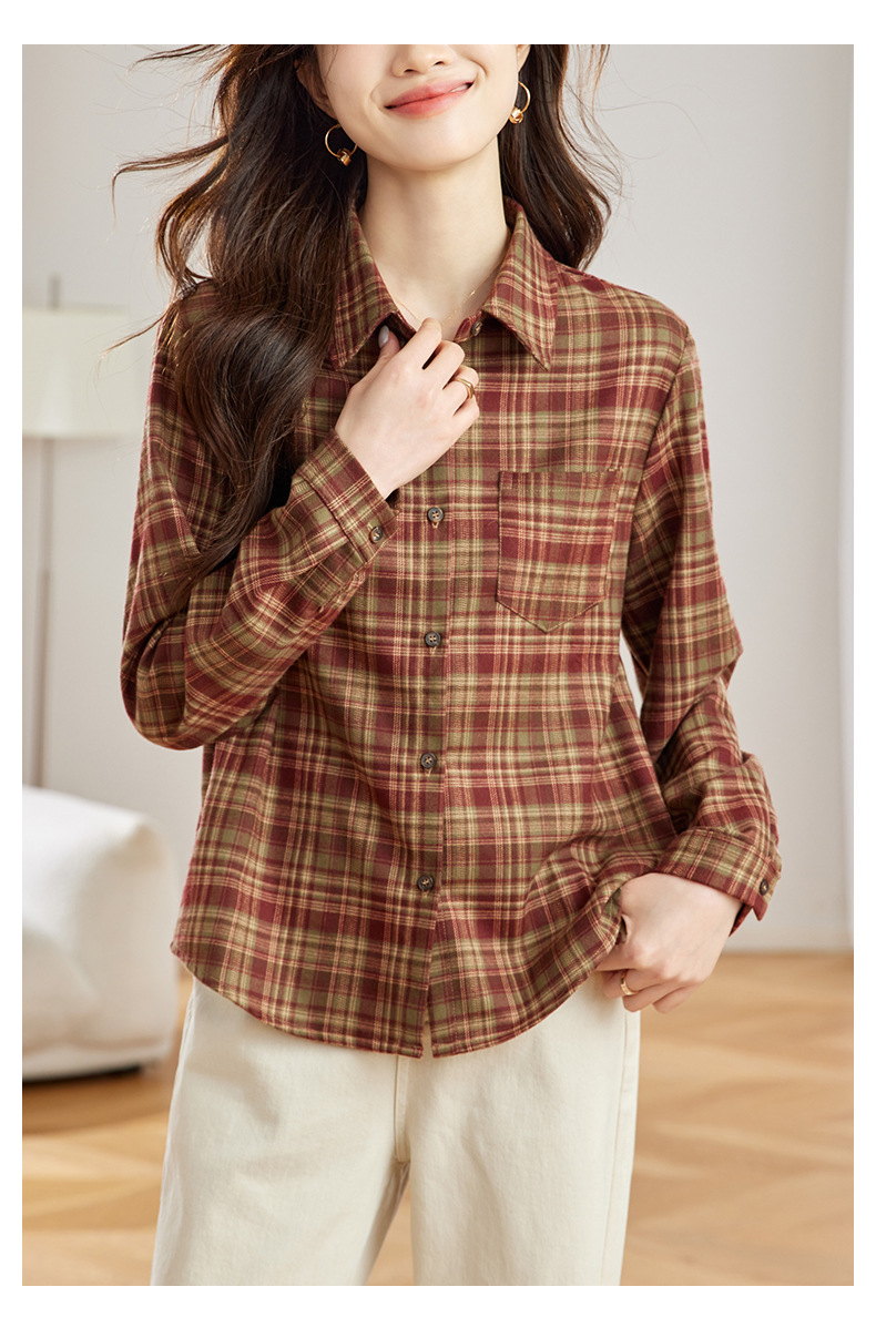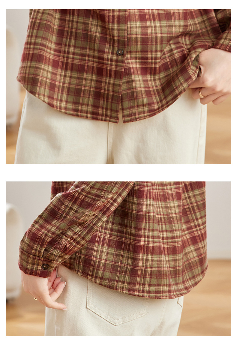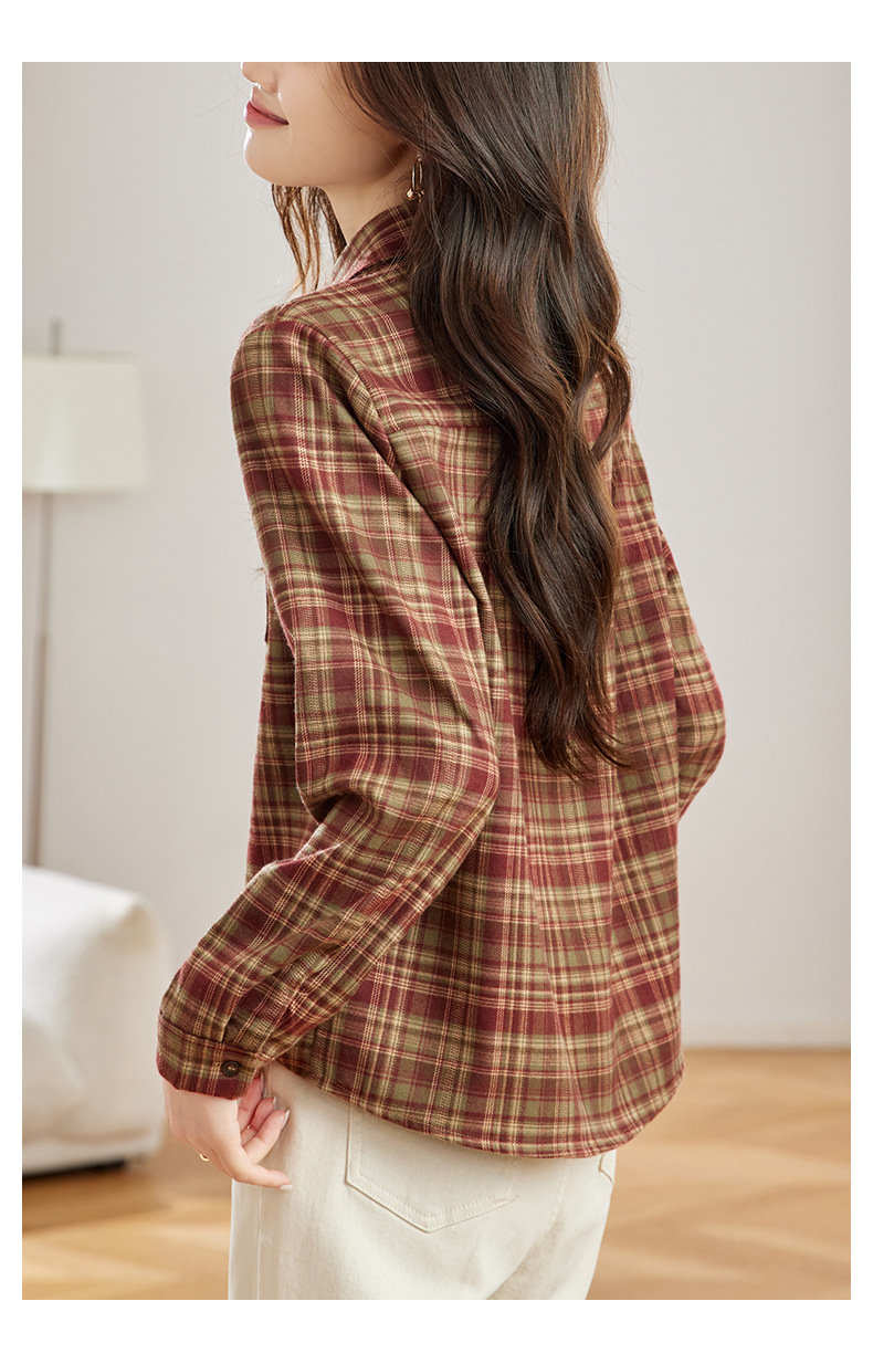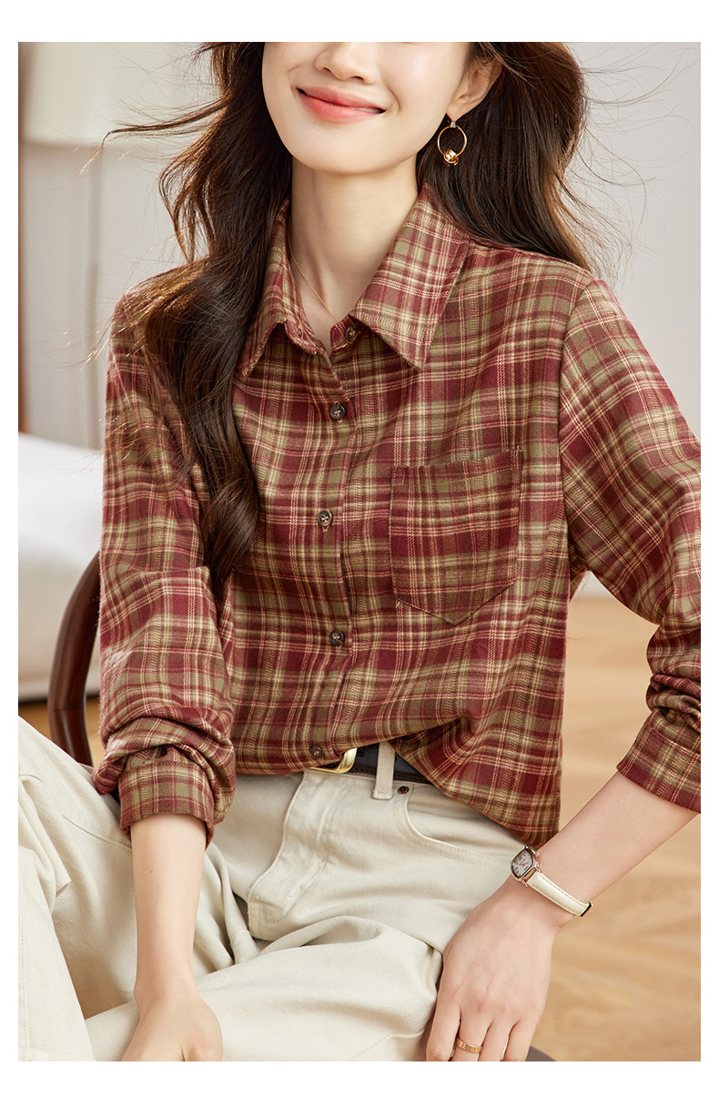 丁摩 磨毛红格子衬衫女长袖春装新款上衣文艺复古衬衣5ZF-410958