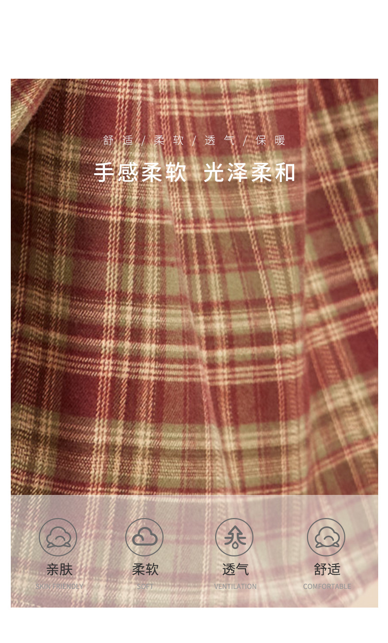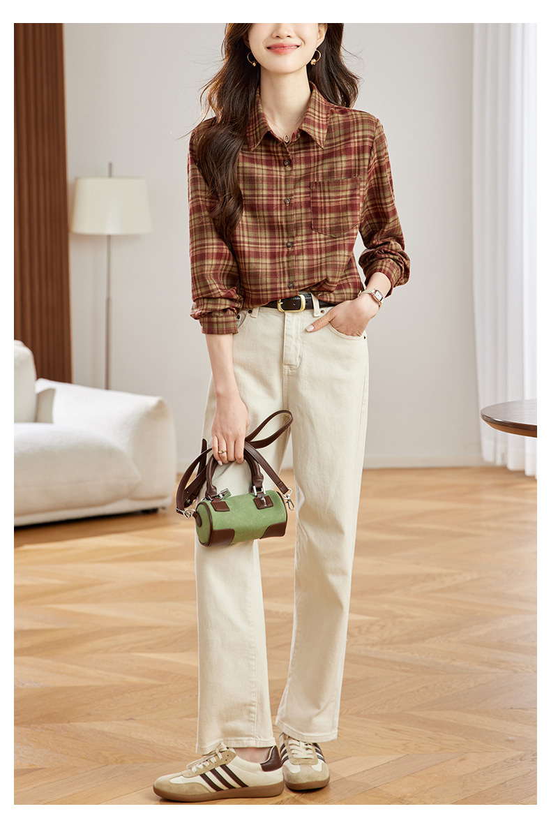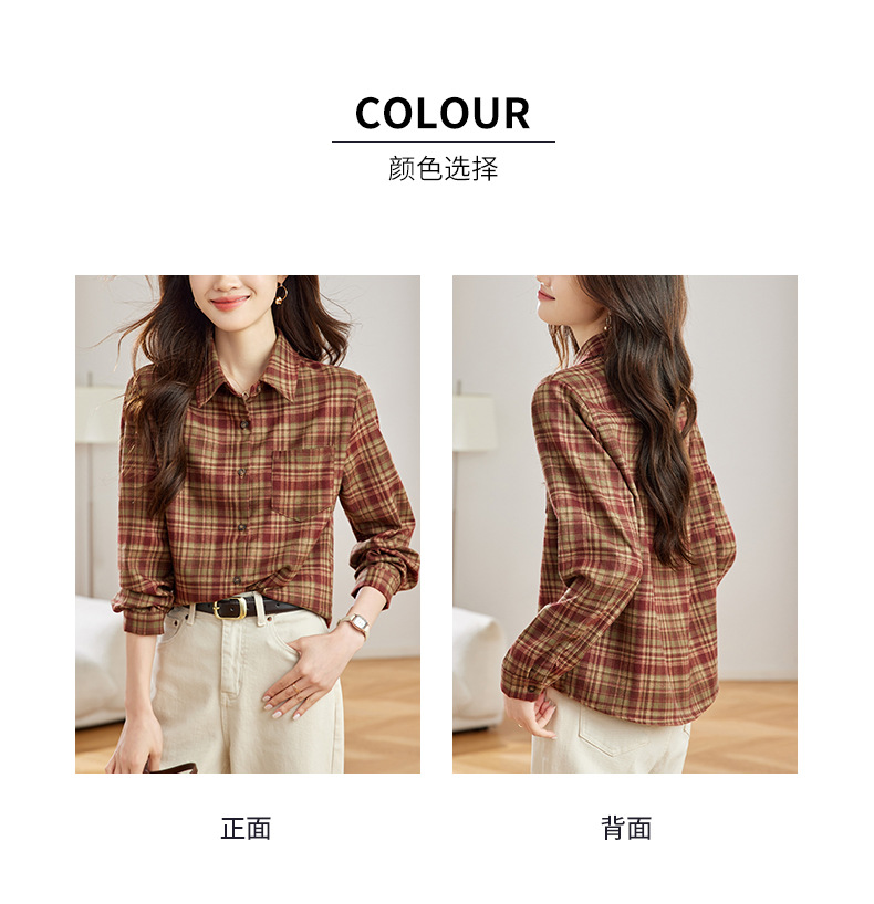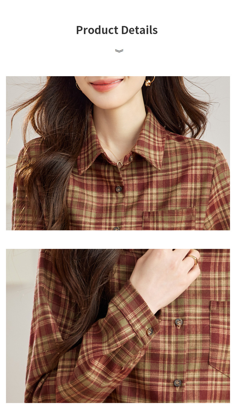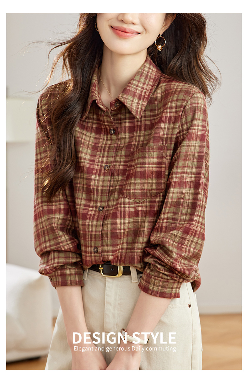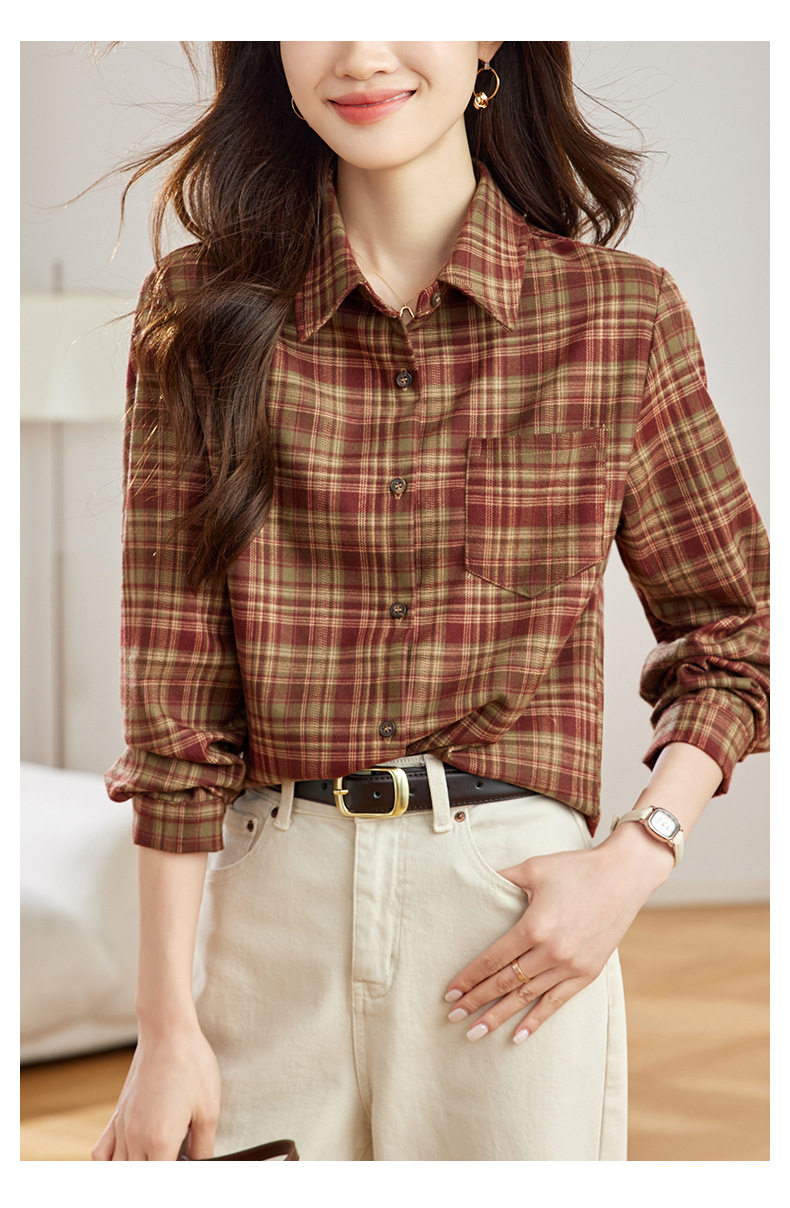 丁摩 磨毛红格子衬衫女长袖春装新款上衣文艺复古衬衣5ZF-410958