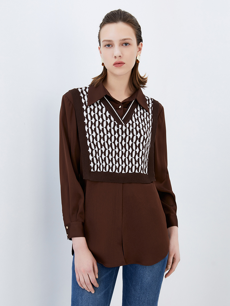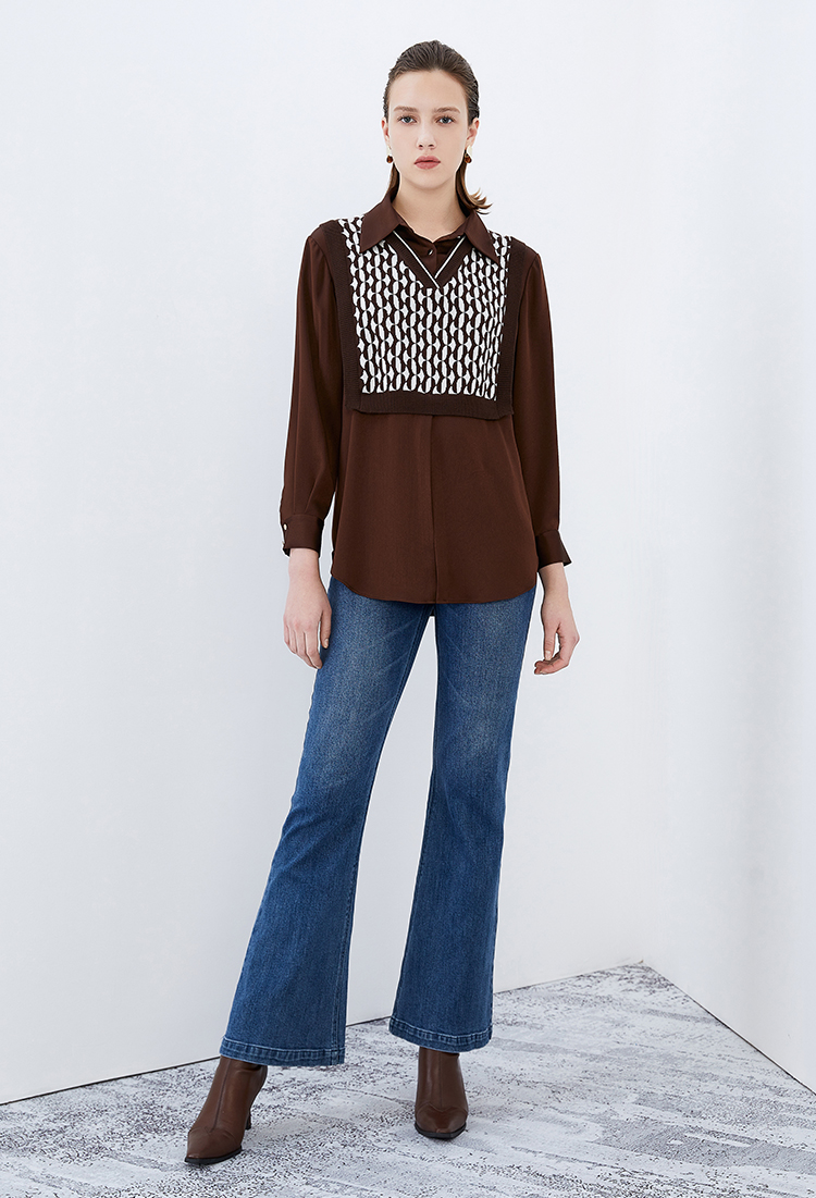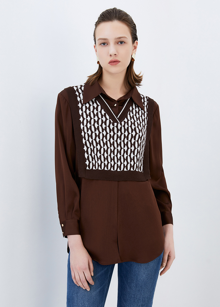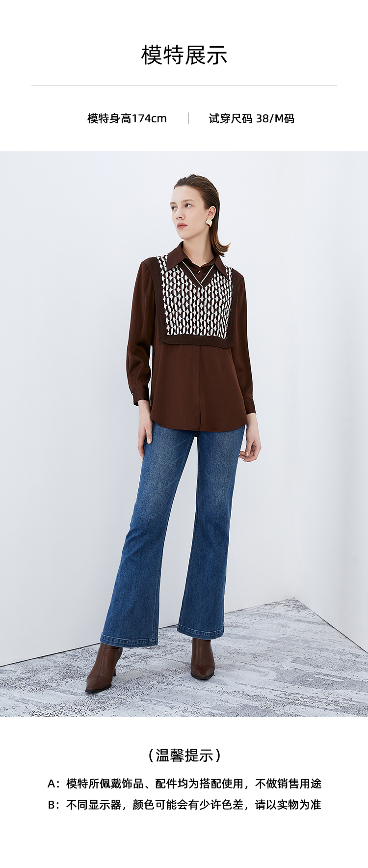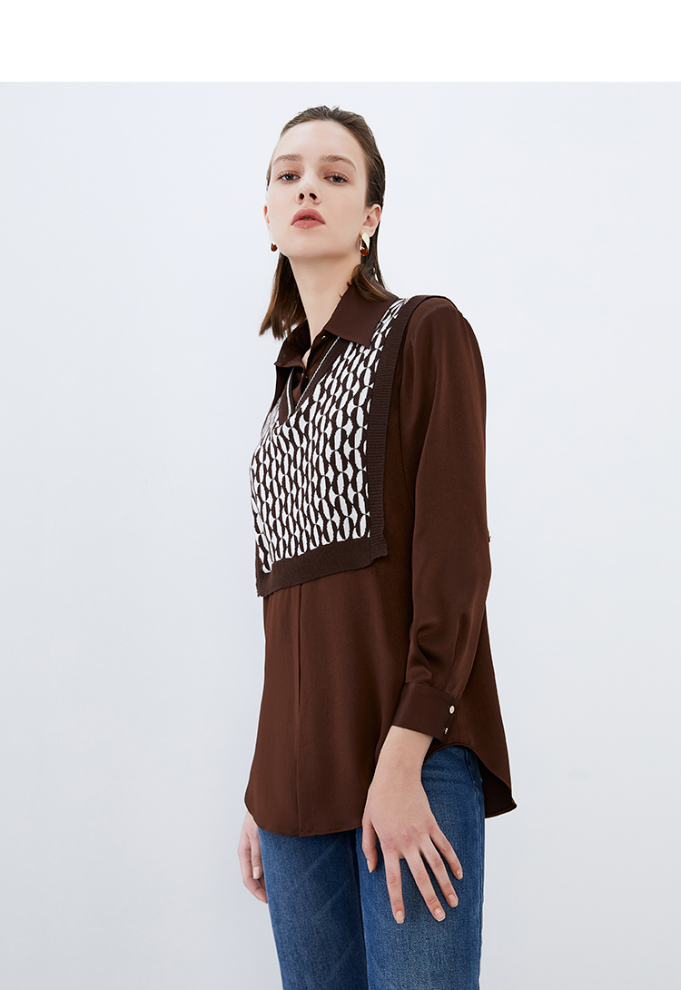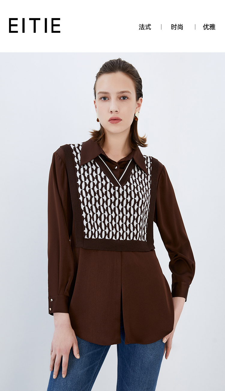 EITIE爱特爱秋季新款时尚气质假两件衬衫上衣7509208