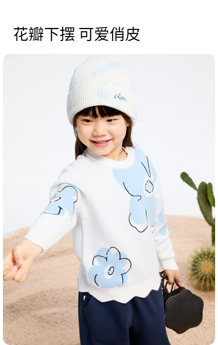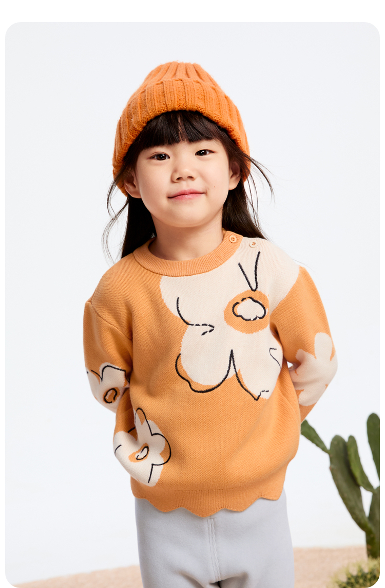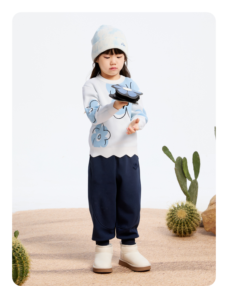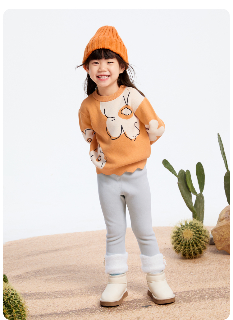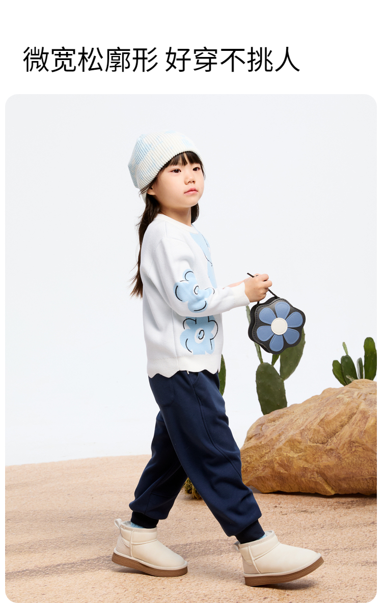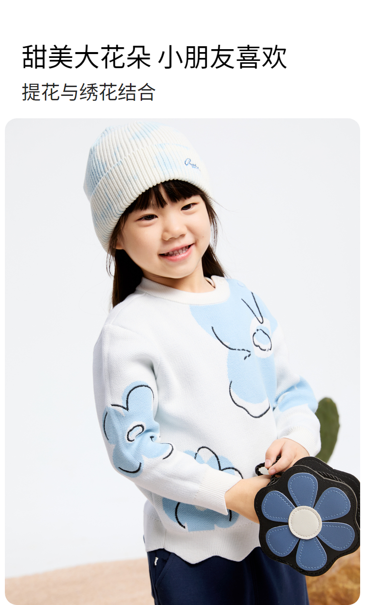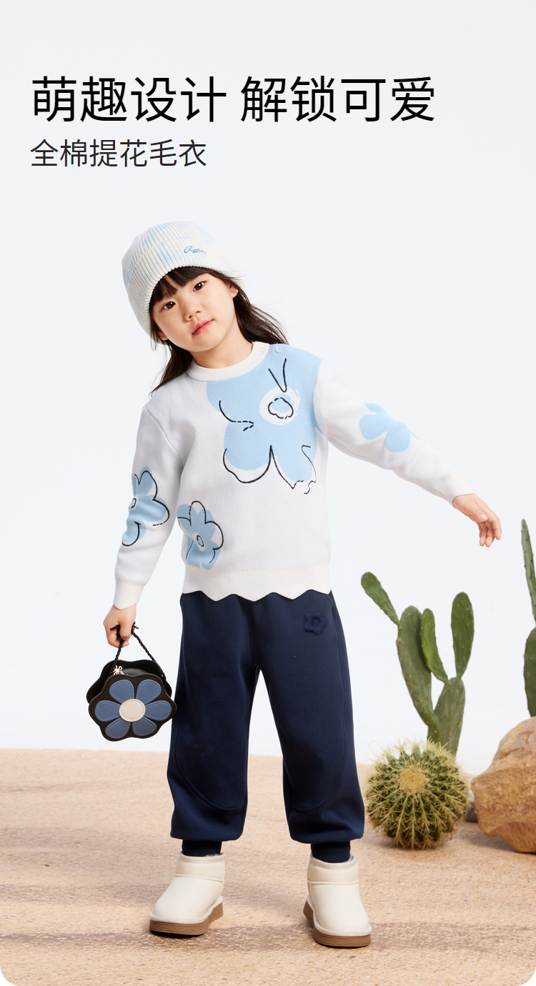 女童超柔全棉圆领毛衣冬季新款安奈儿童装实体店同款XG444585
