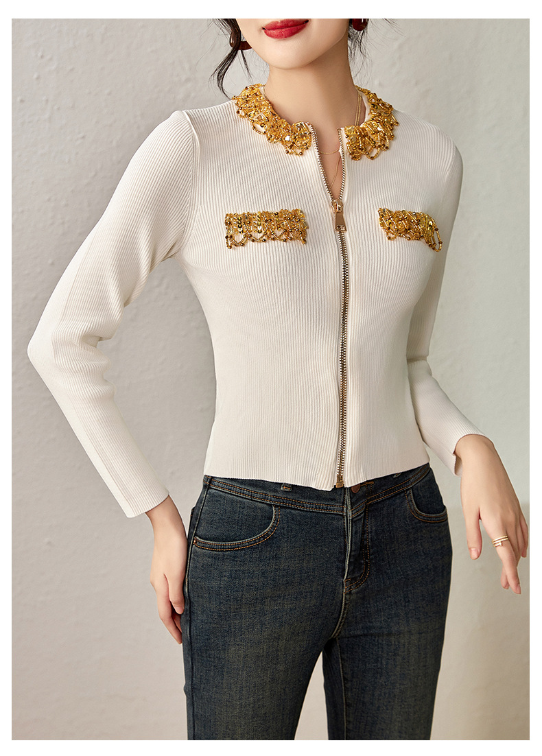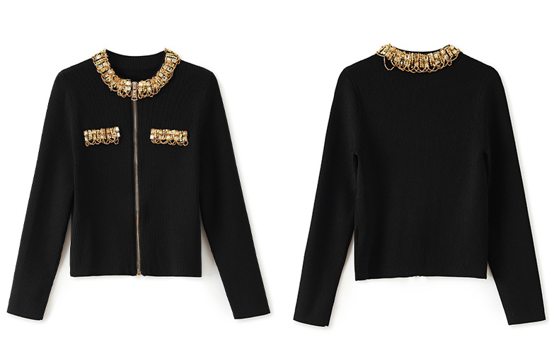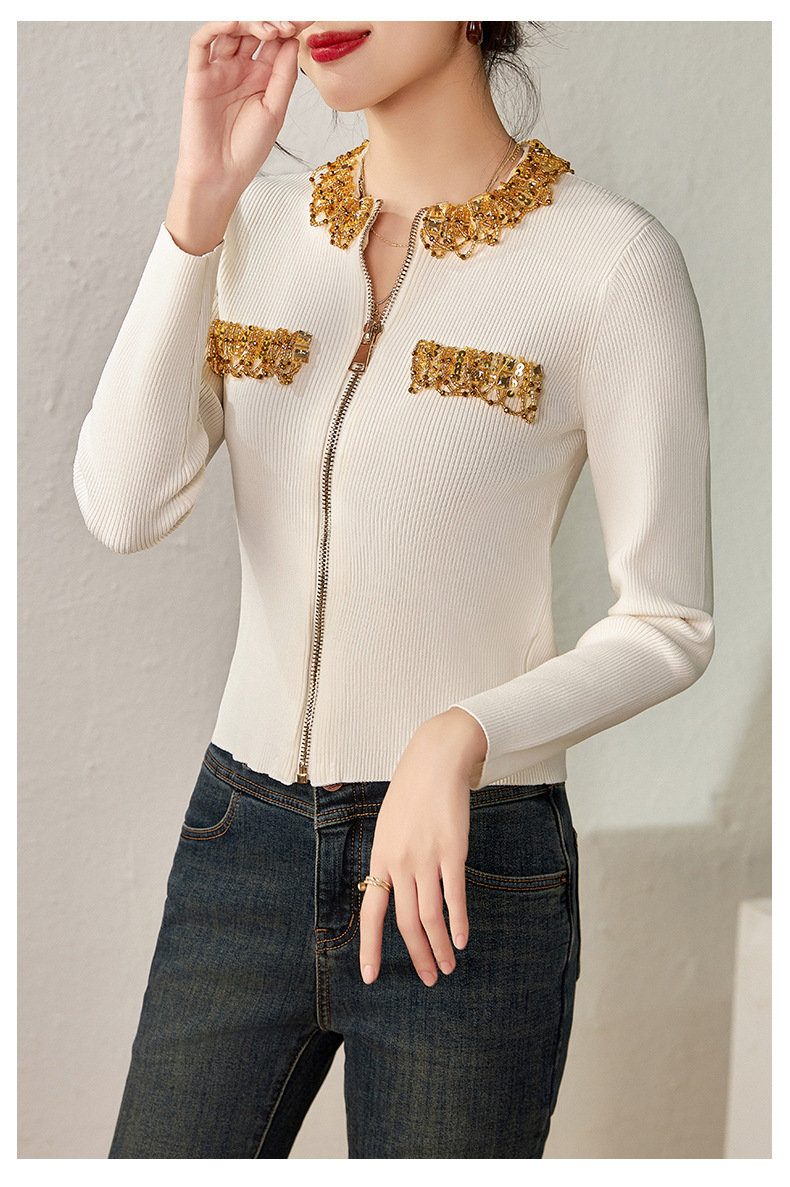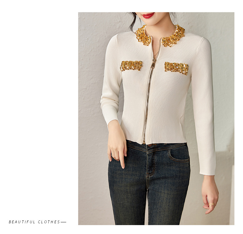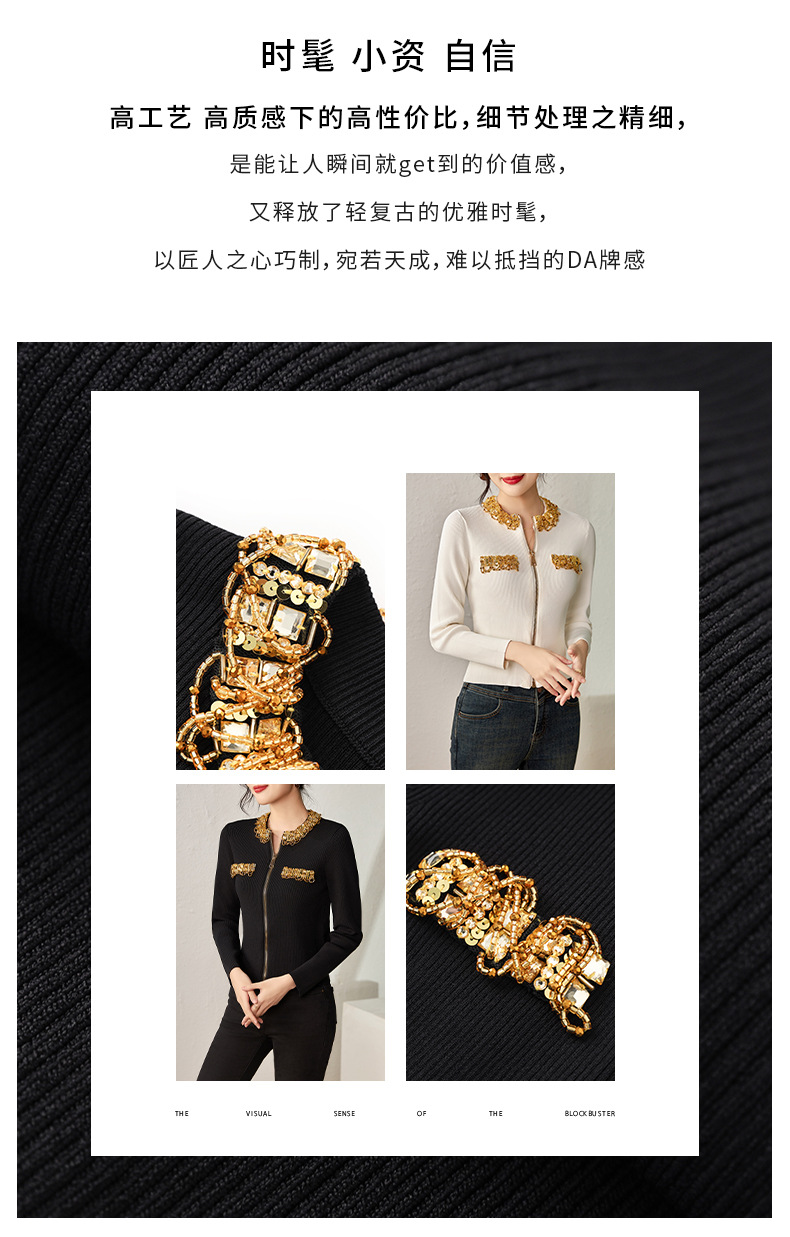 重工钉珠14针针织开衫上衣,名媛轻奢小个子百搭外套WLZD-2326302