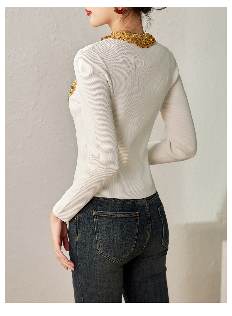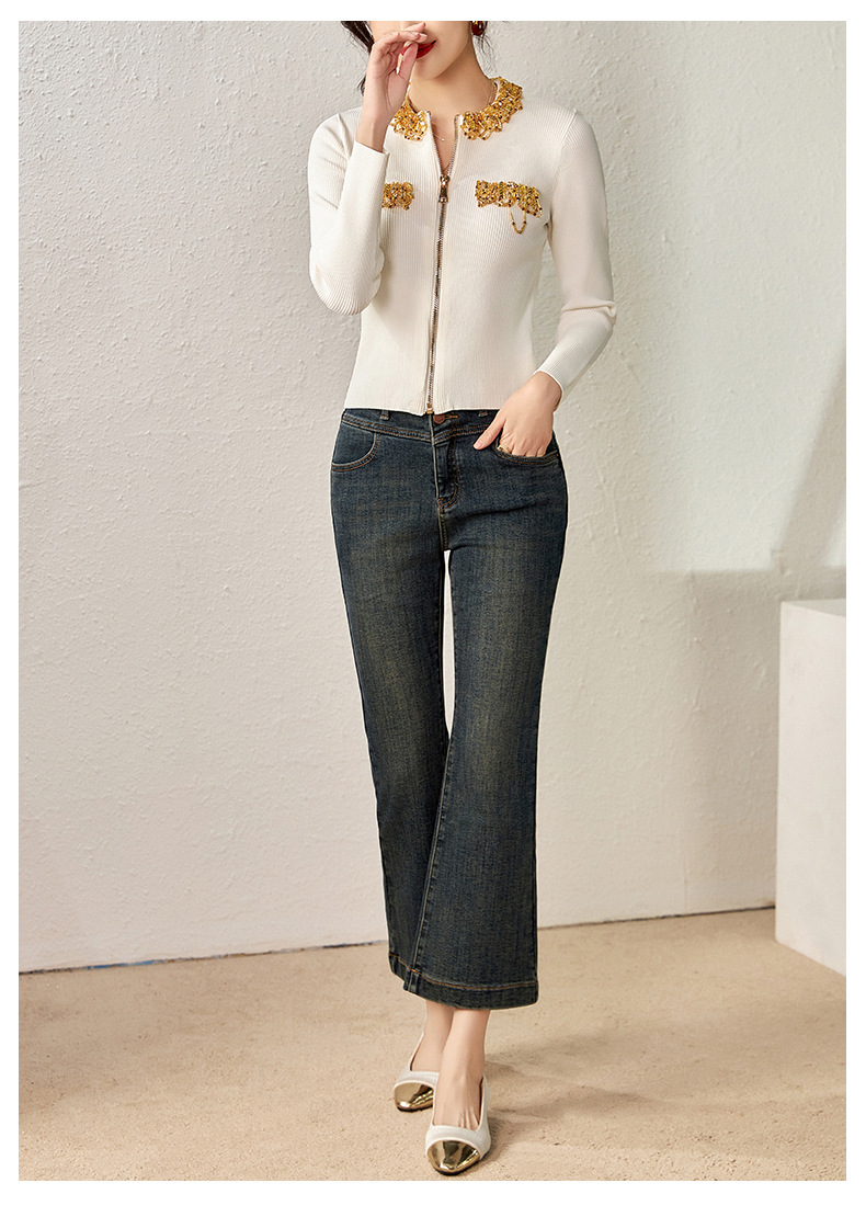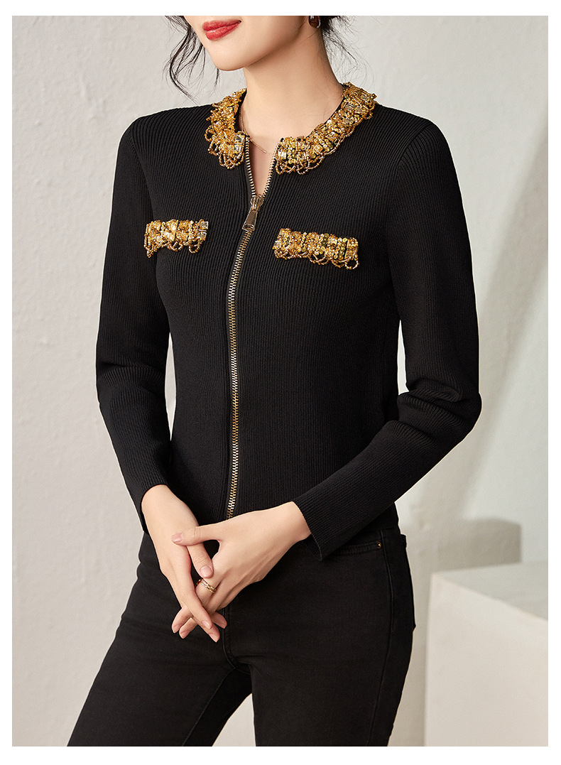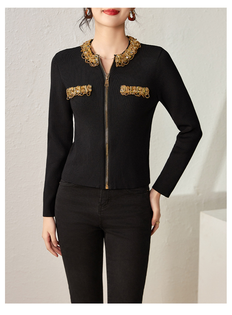 重工钉珠14针针织开衫上衣,名媛轻奢小个子百搭外套WLZD-2326302