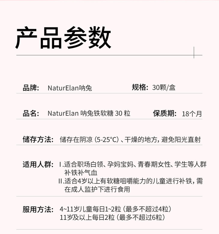 【12盒见效巩固装】呐兔自然红唇补铁软糖30粒(12盒装)