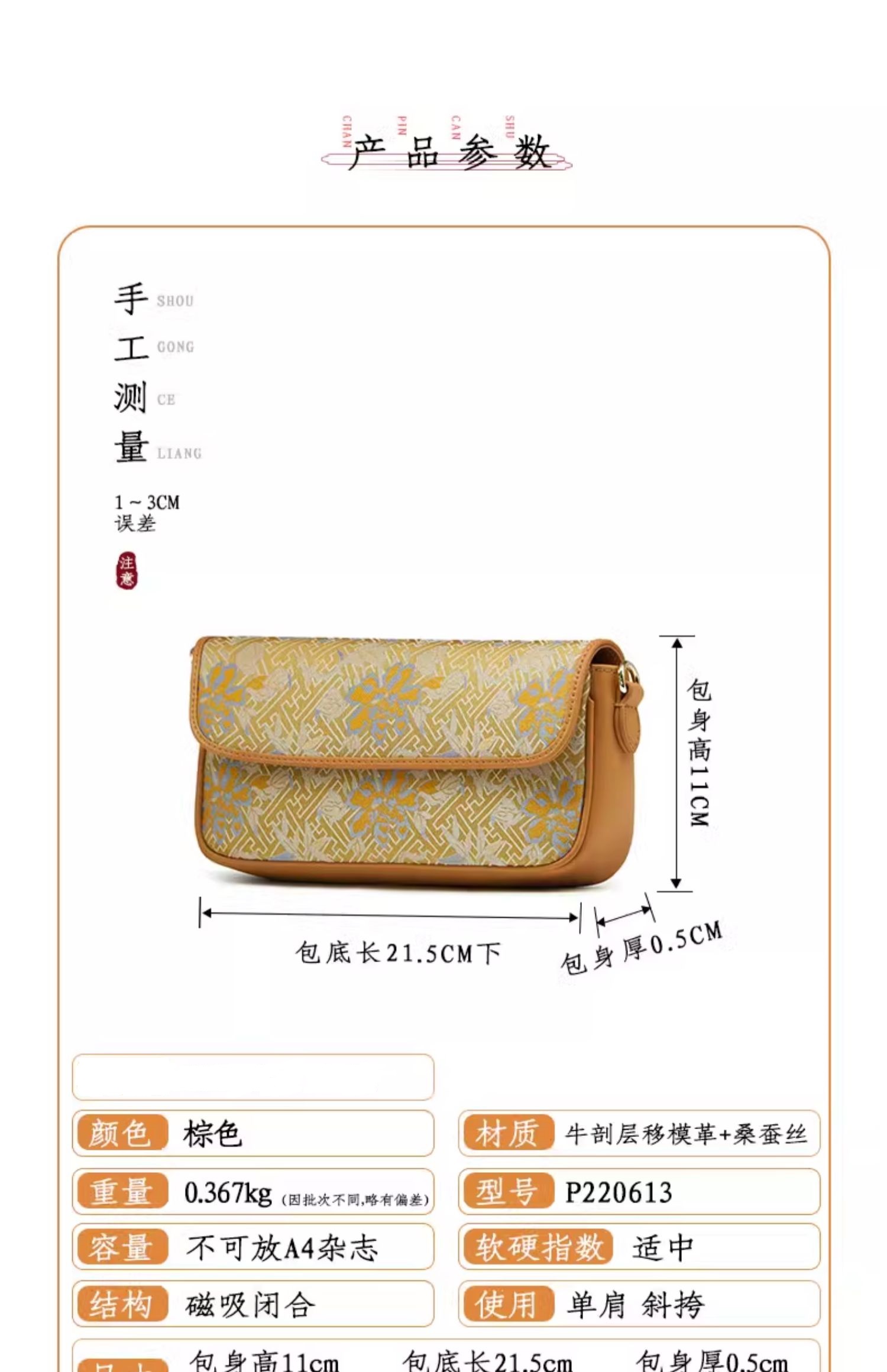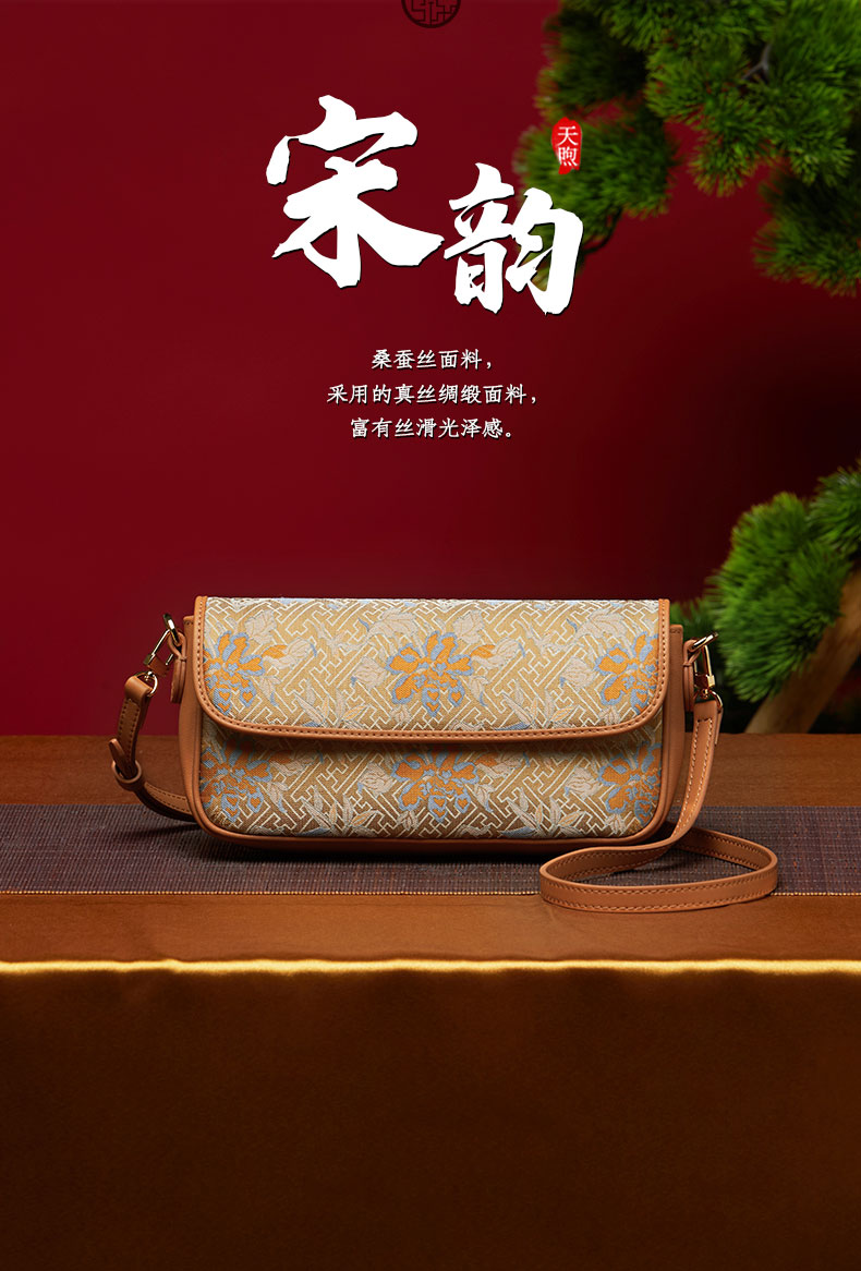 新中式国风非遗宋锦,桑蚕丝牛皮单肩斜挎妈妈小方包TX-P220613