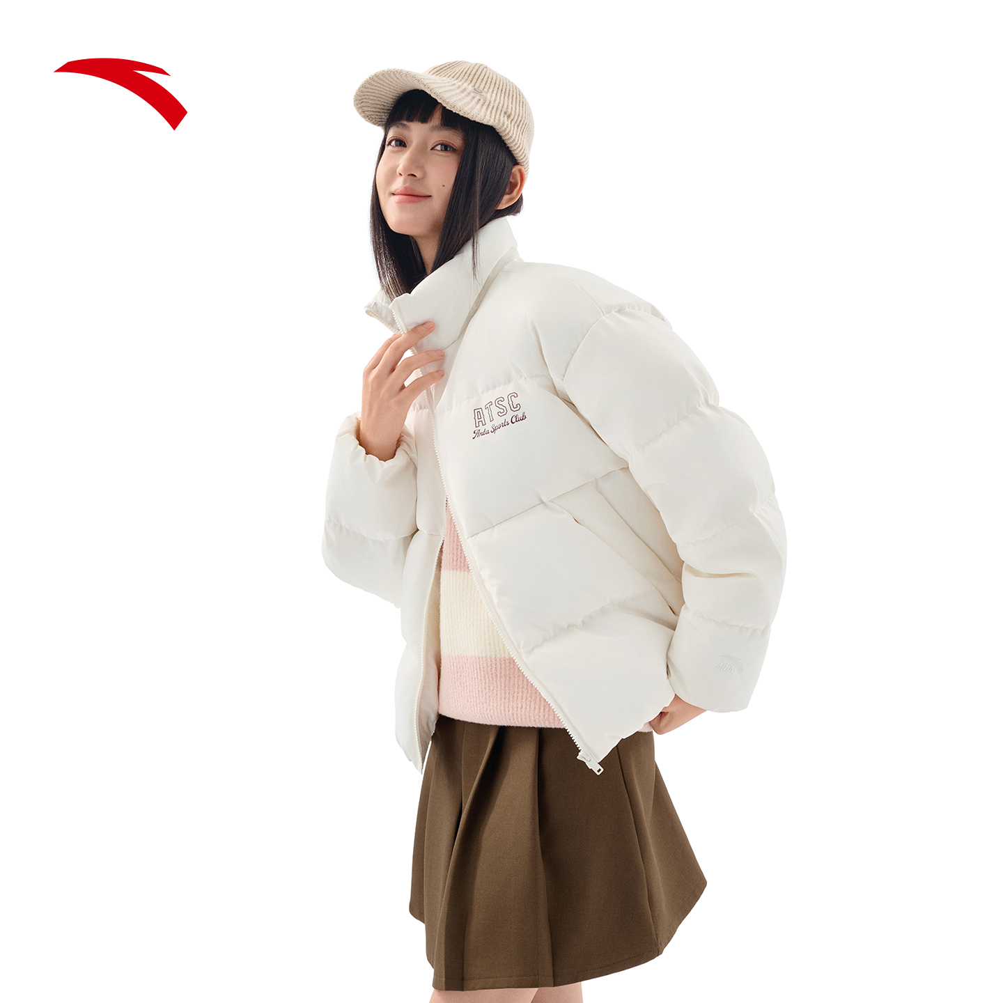 安踏无氟防泼水短款羽绒服女款冬季立领面包服棉服外套162548917N
