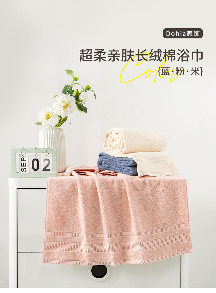超柔加厚长绒棉浴巾(粉/米/蓝) cs