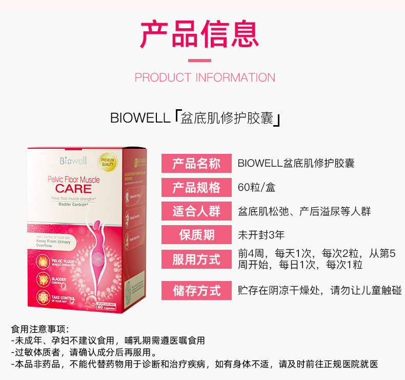 【保税仓】新加坡Biowell盆底肌女性产后修护紧致胶囊口服60粒/盒原装进口【新加坡进口】