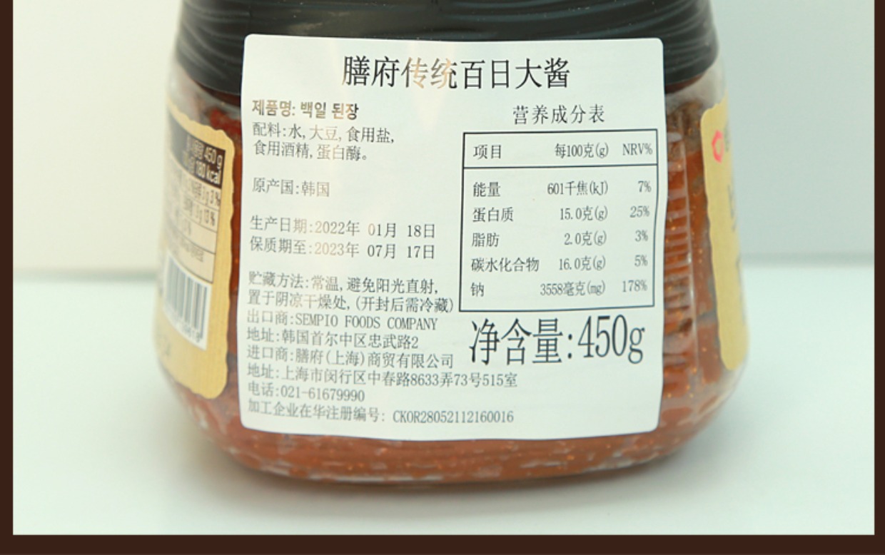 샘표백일된장膳府百日传统大酱450g