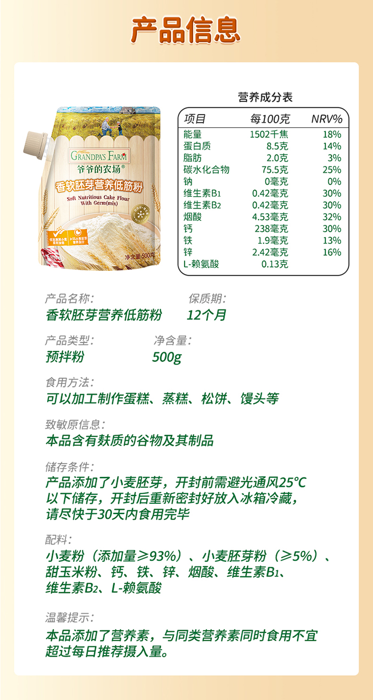【孕味秒杀专属】爷爷的农场低筋面粉500g+番茄酱310g【高钙有机0添加】