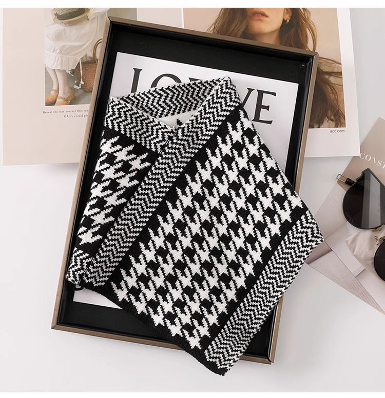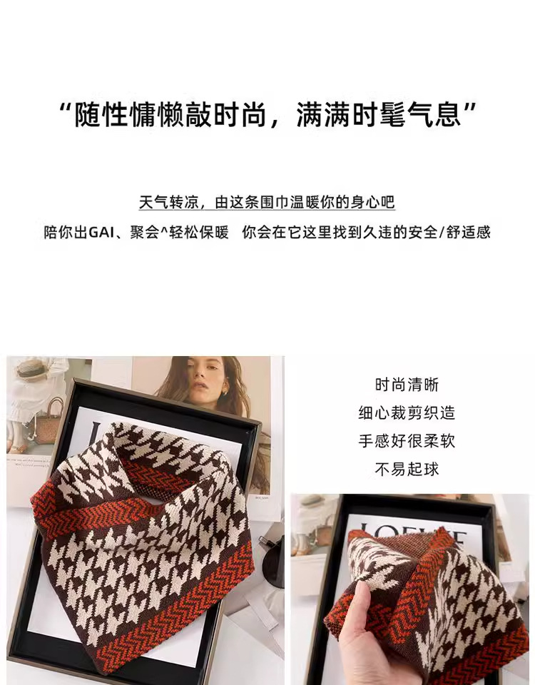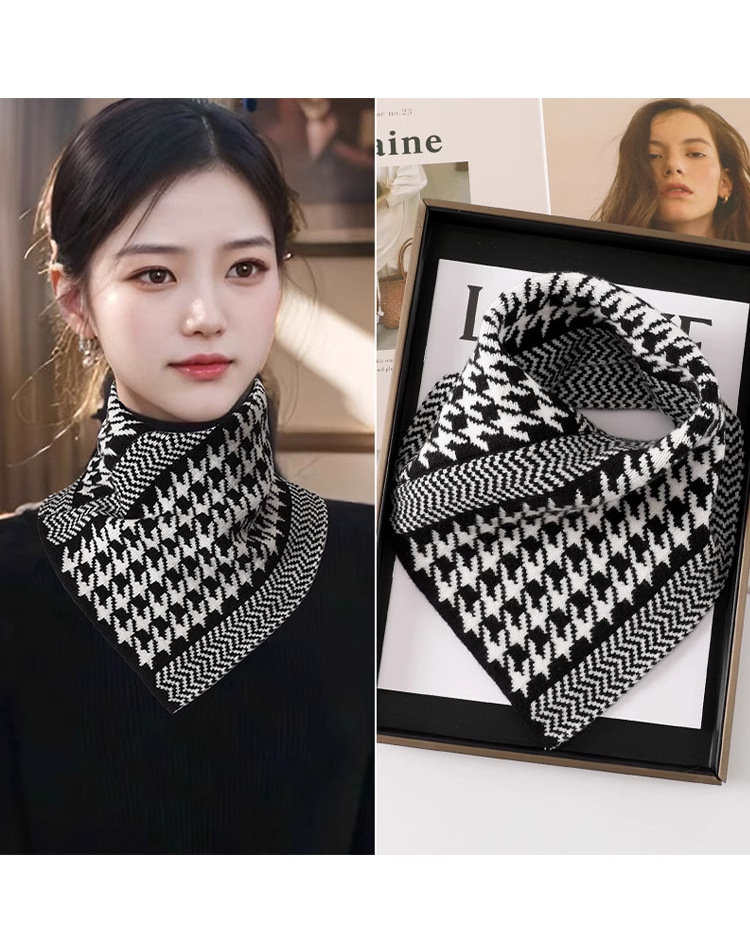 【随性慵懒敲时尚,满满时髦气息】高品质围脖 护颈椎男女防寒 秋冬季千鸟格三角巾 花色防风假领围巾-QQ