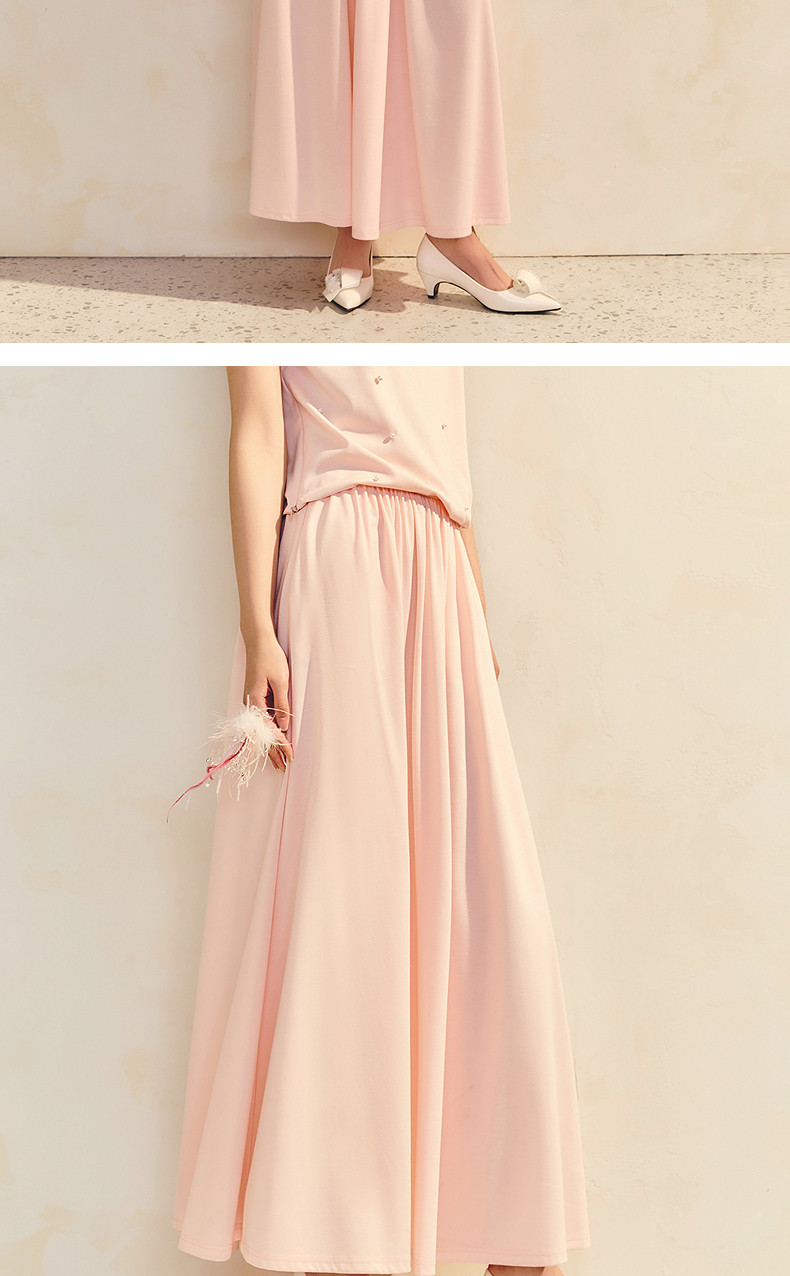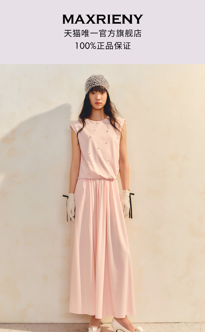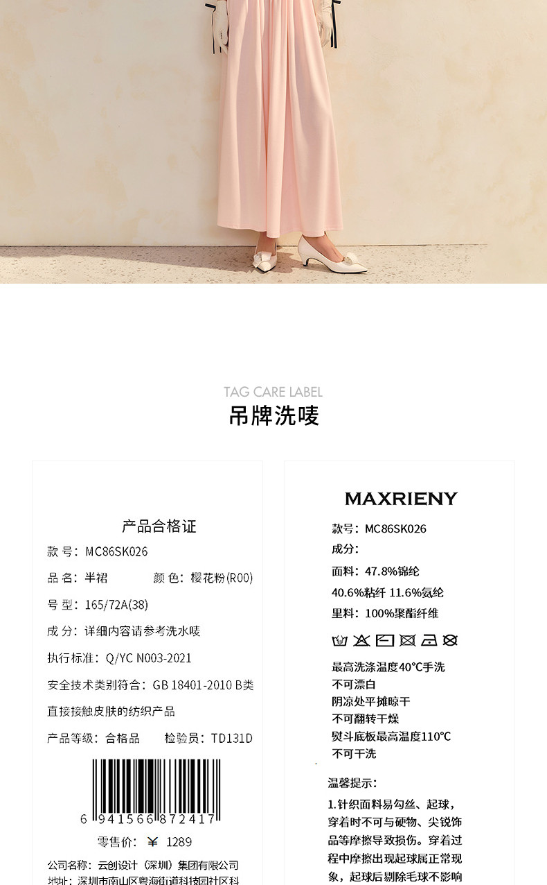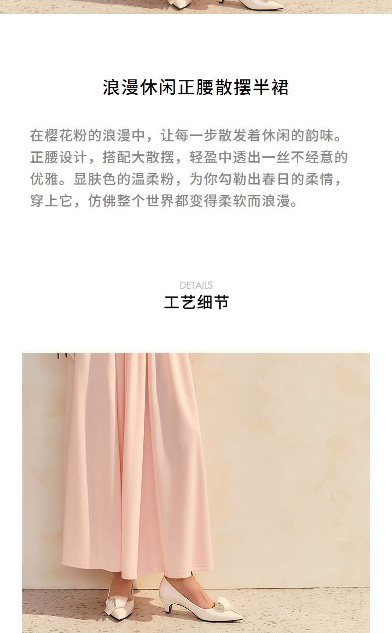 【商场同款】MAXRIENY樱花粉浪漫伞摆半裙高级感气质显瘦长款裙子(货号:MC86SK026)