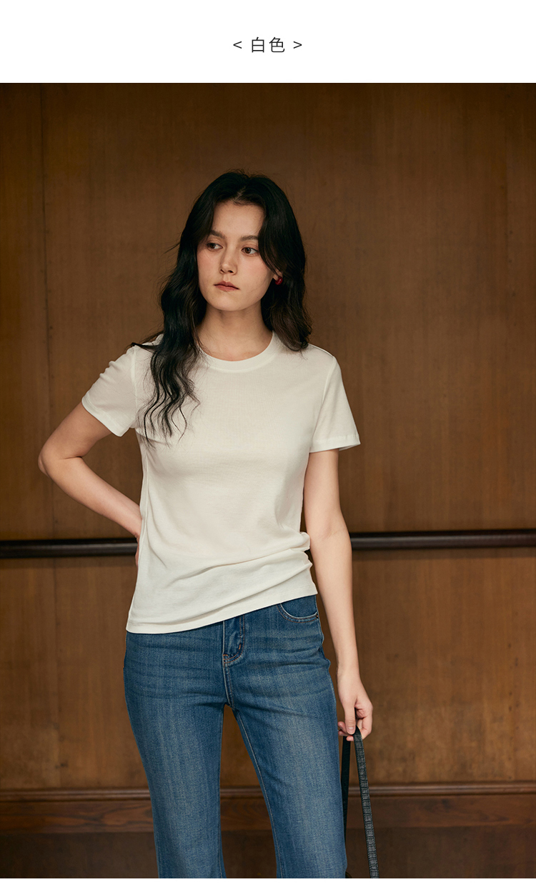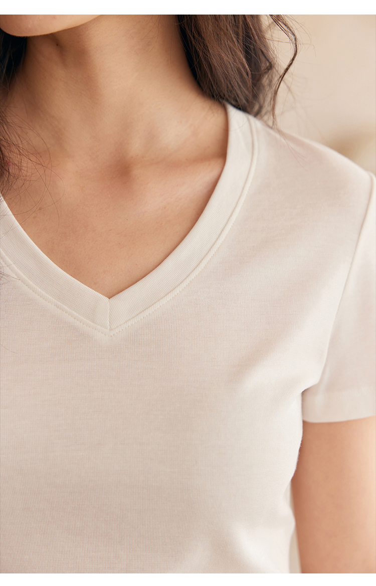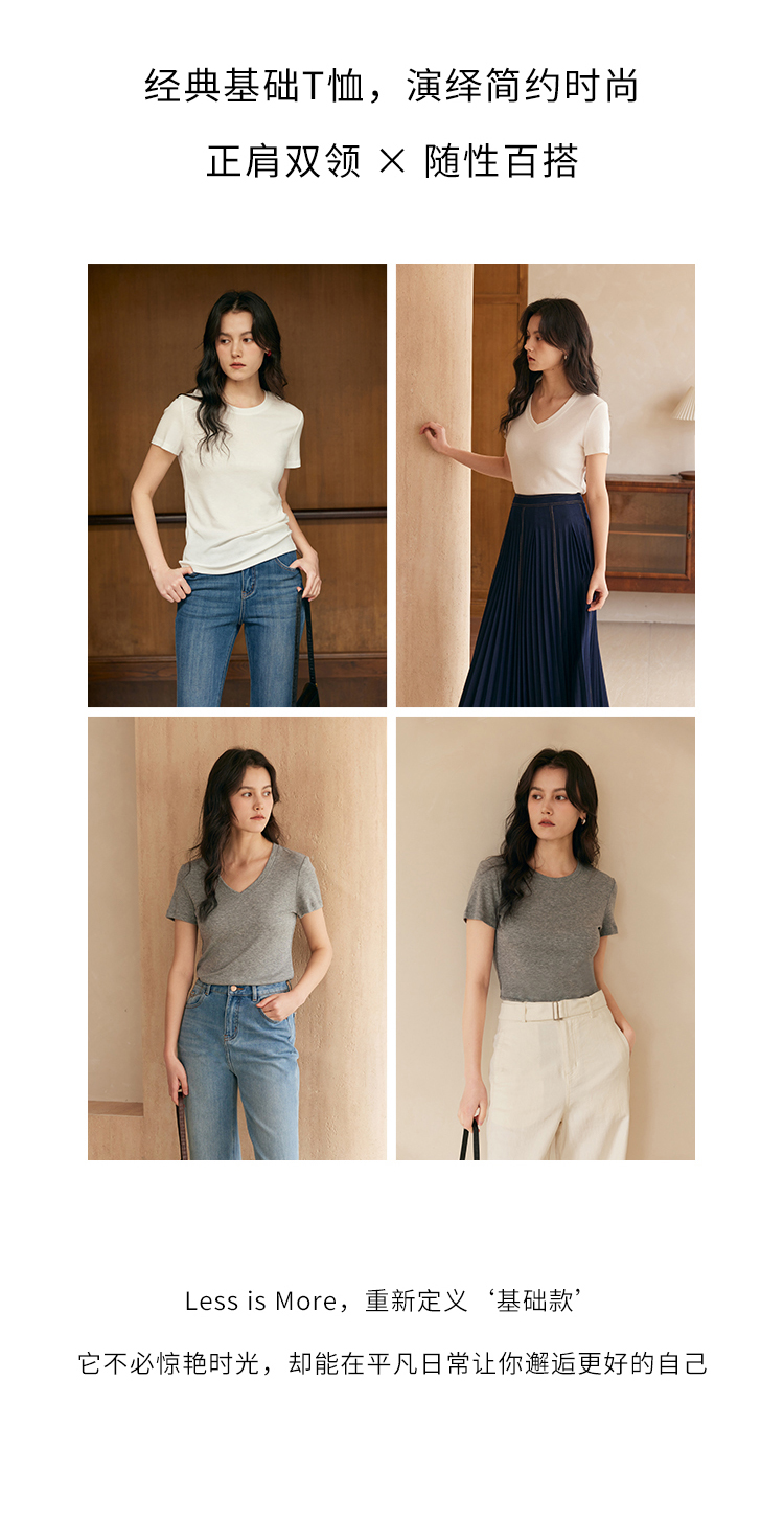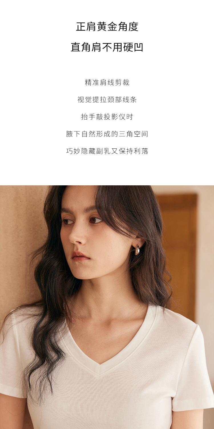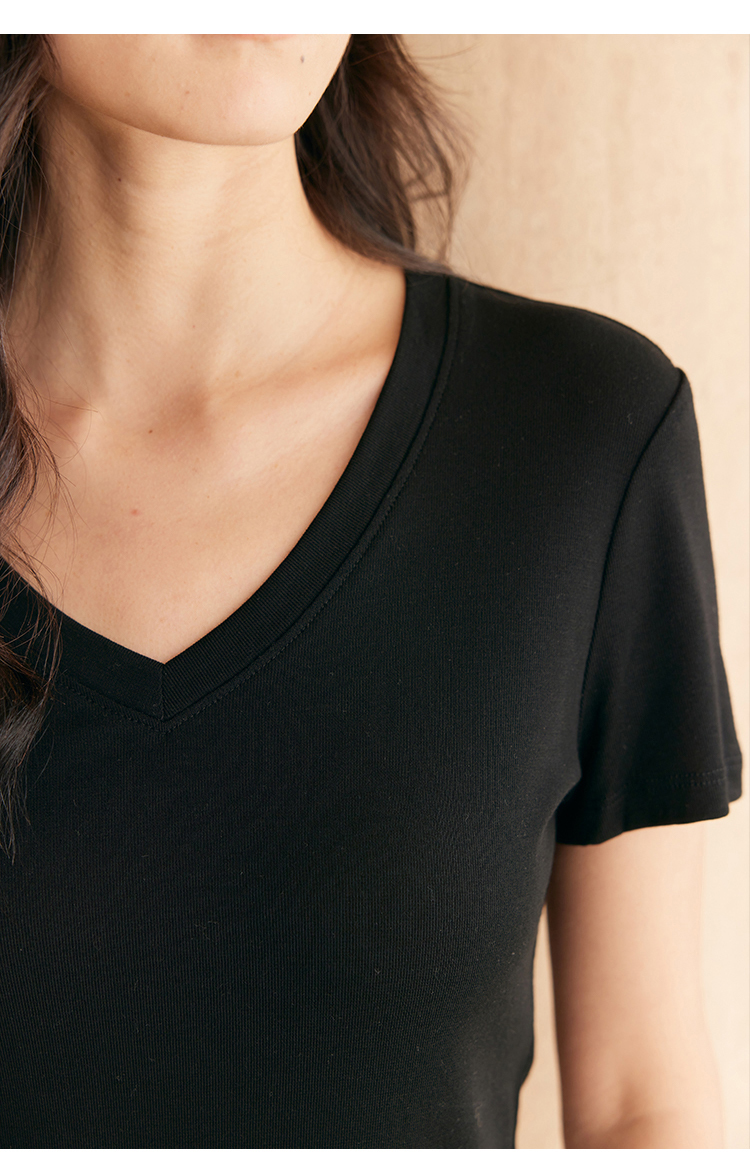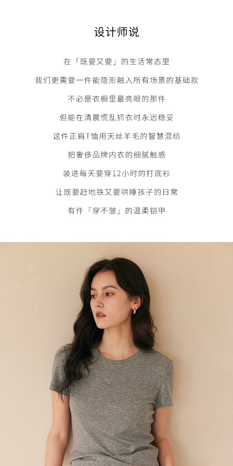 HeyDress天丝正肩t恤女夏季法式修身显瘦百搭半袖高级短袖上衣