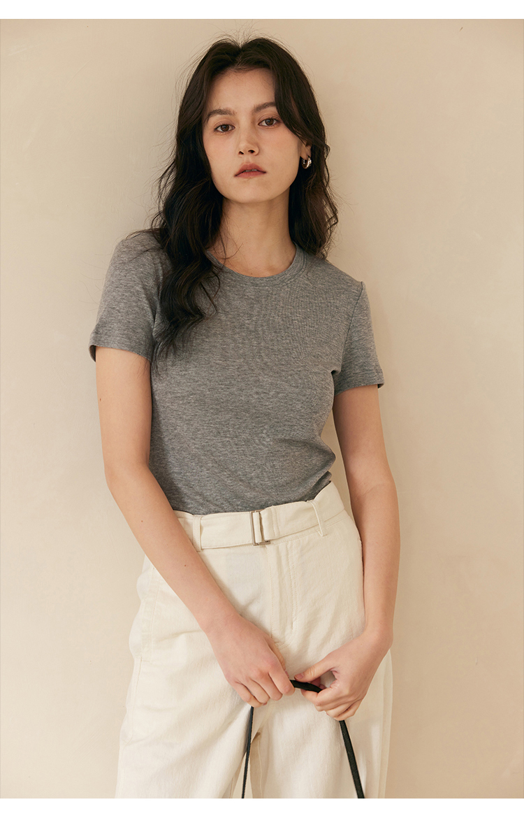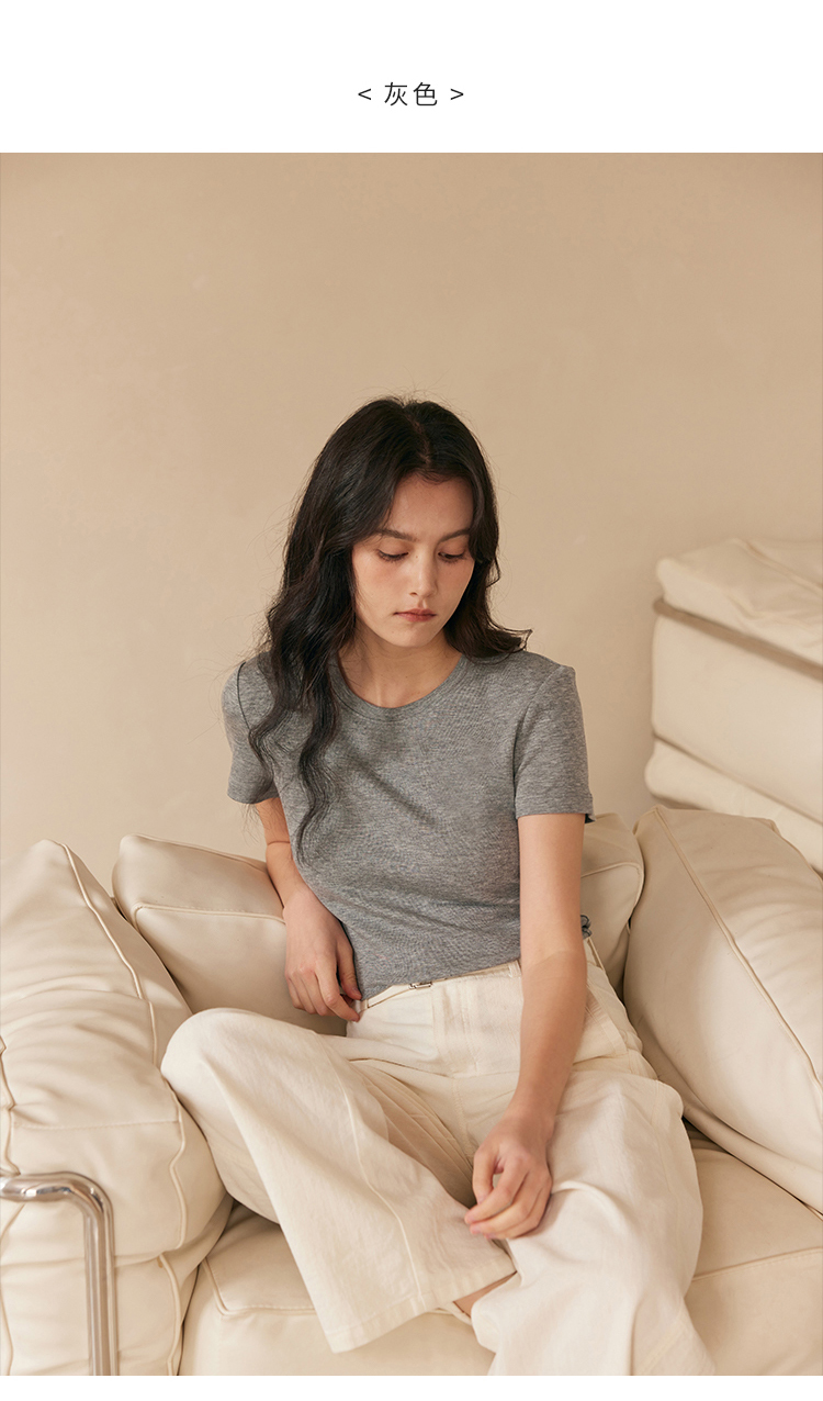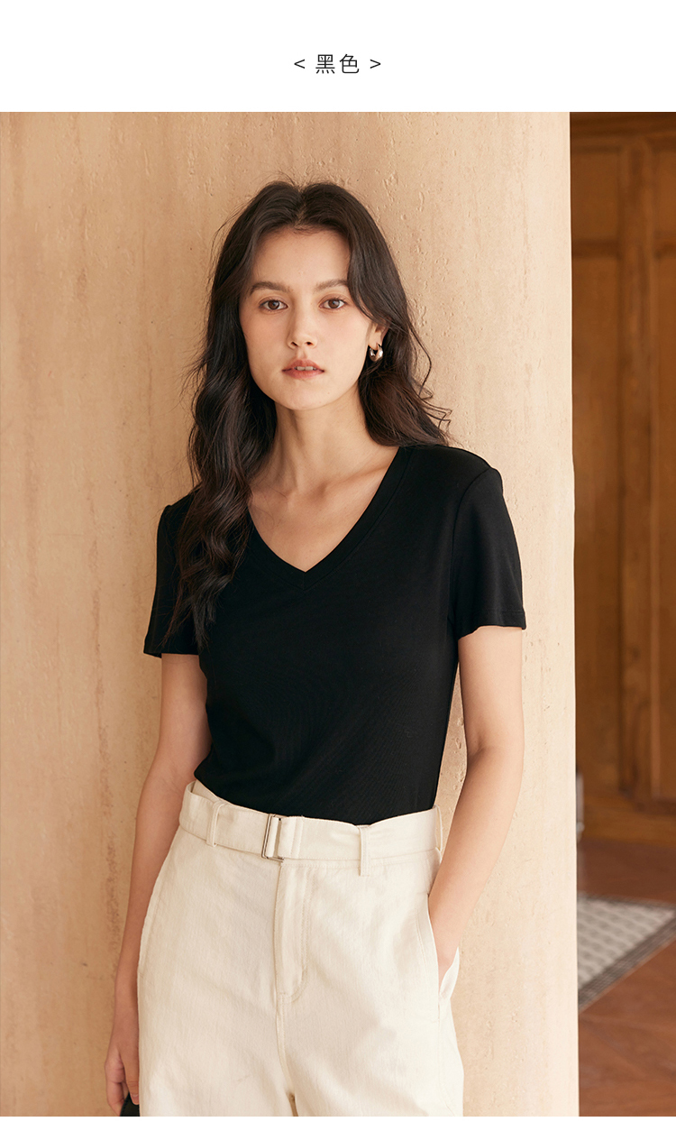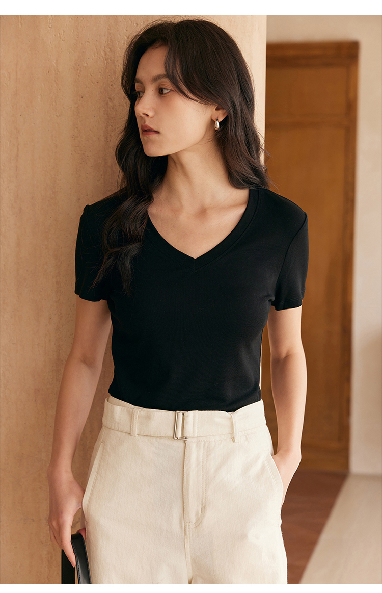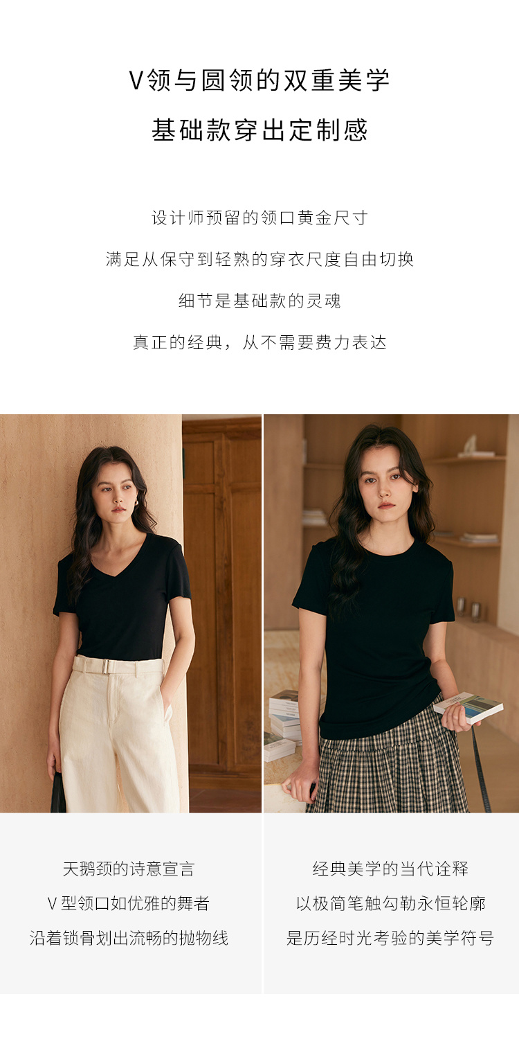 HeyDress天丝正肩t恤女夏季法式修身显瘦百搭半袖高级短袖上衣