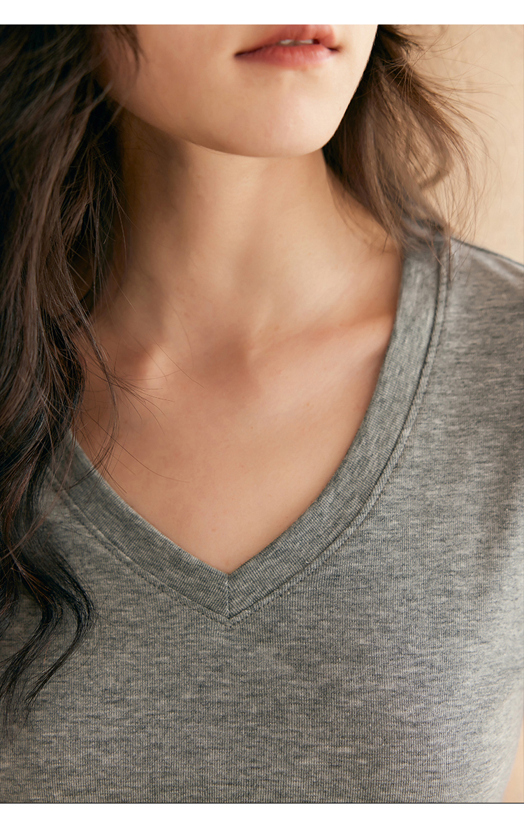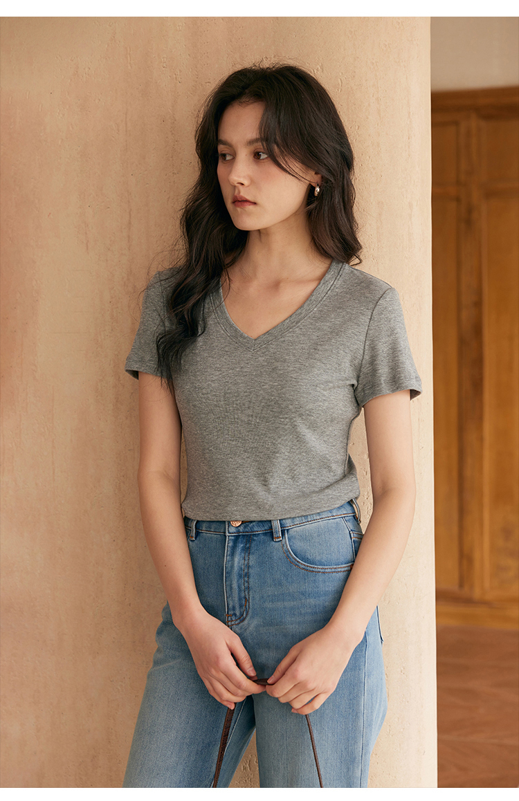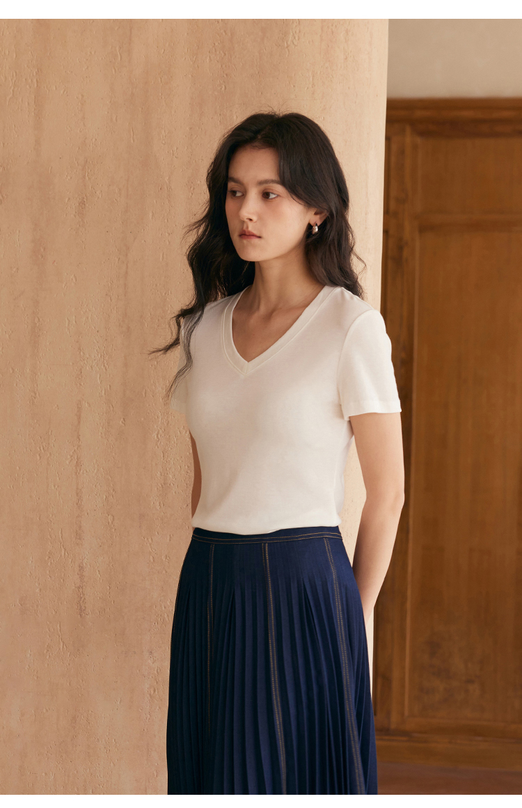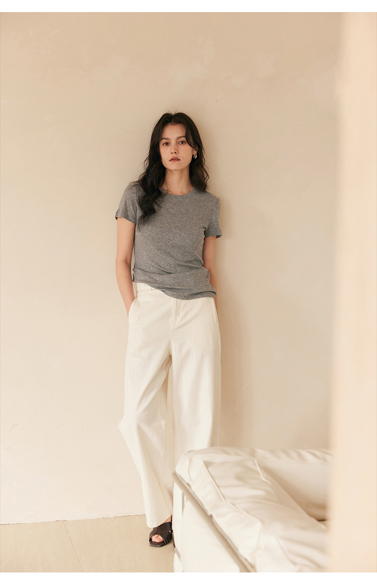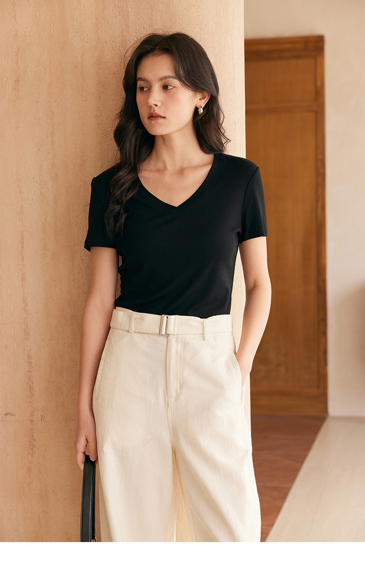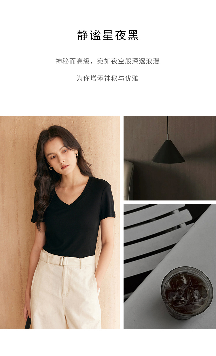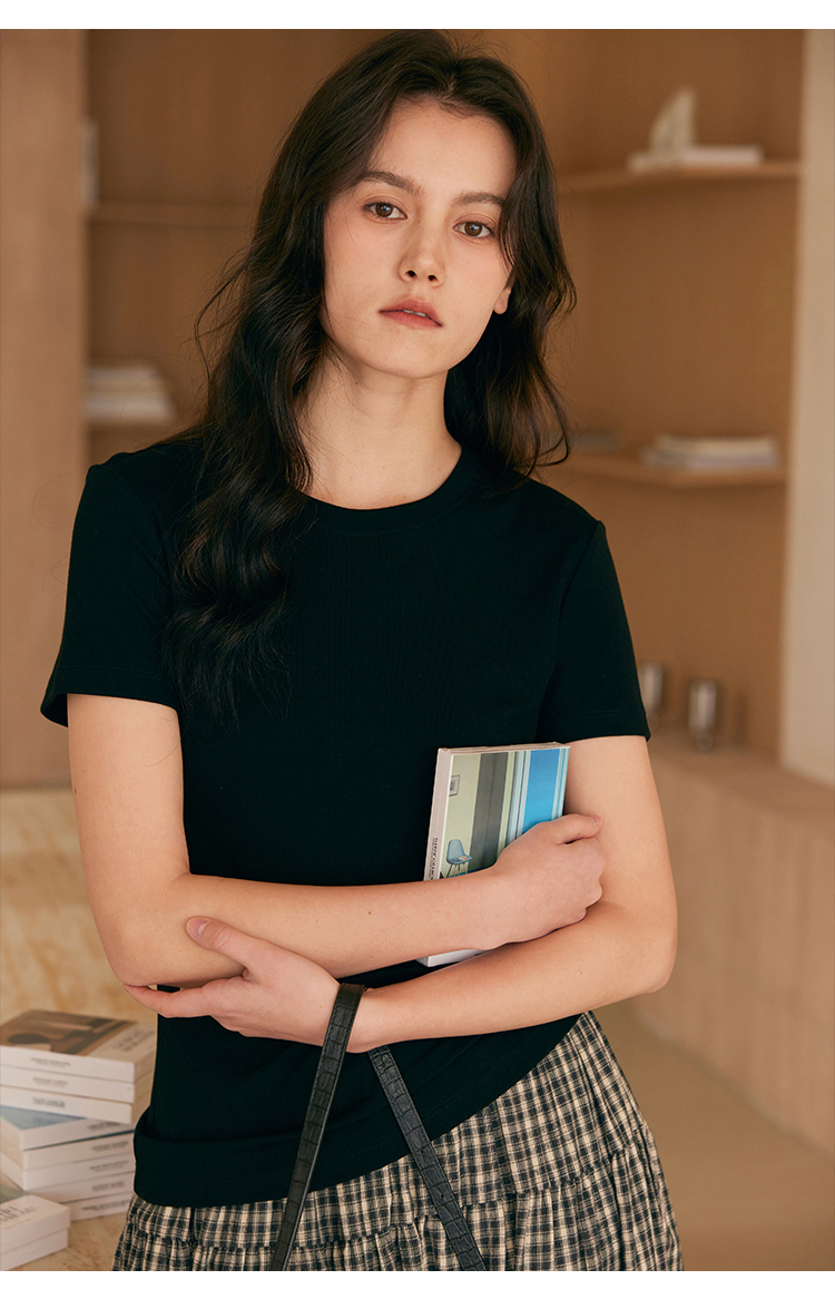 HeyDress天丝正肩t恤女夏季法式修身显瘦百搭半袖高级短袖上衣