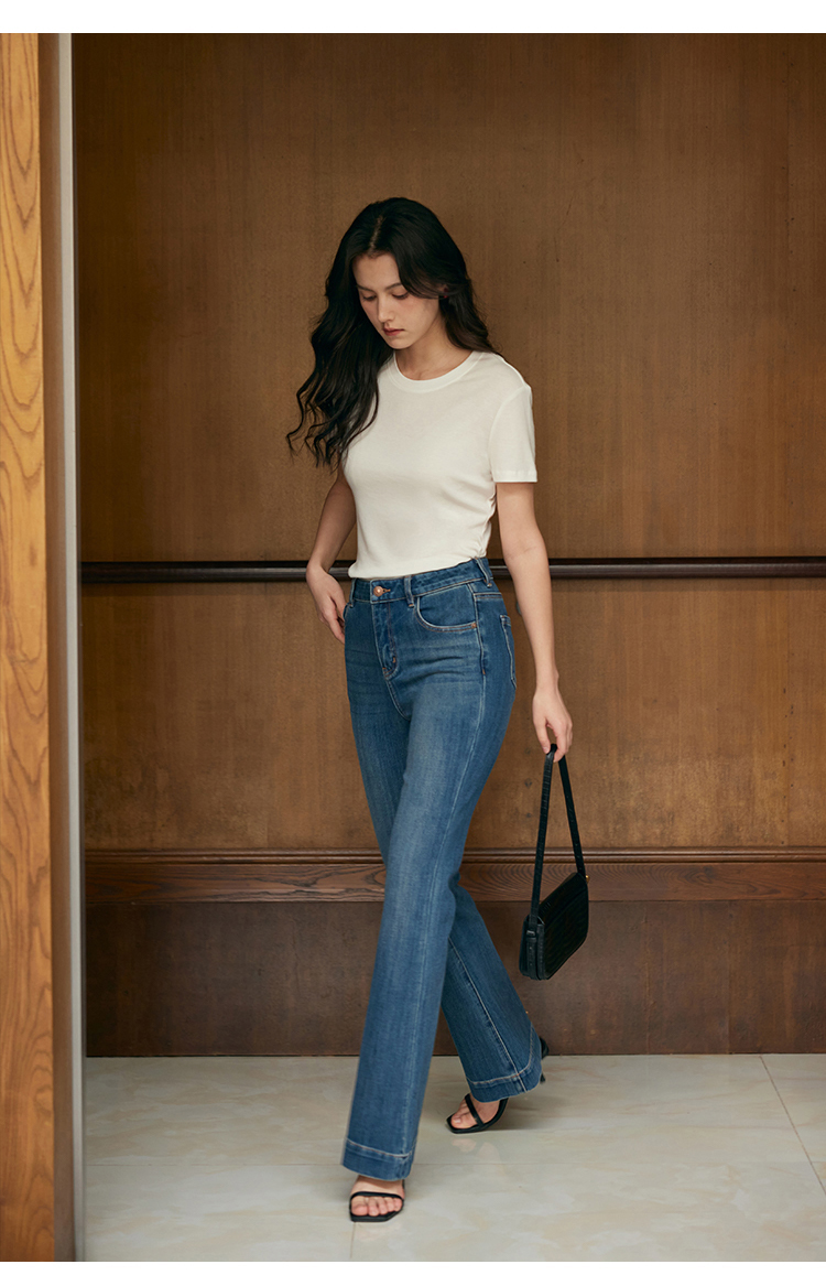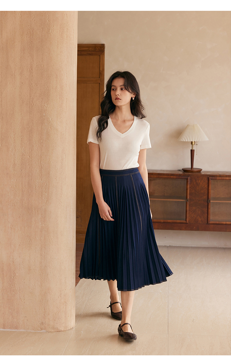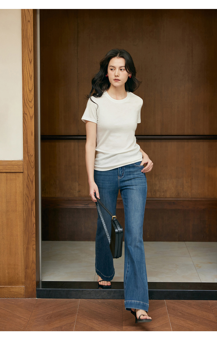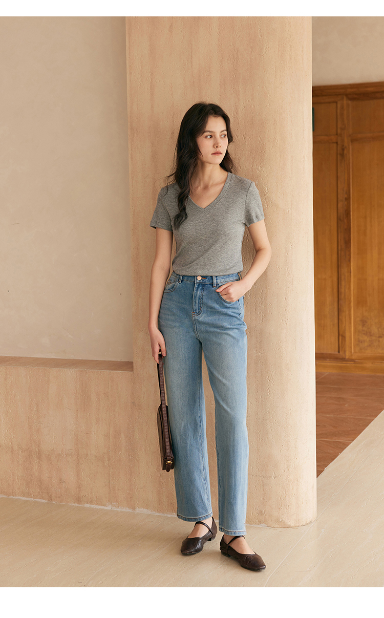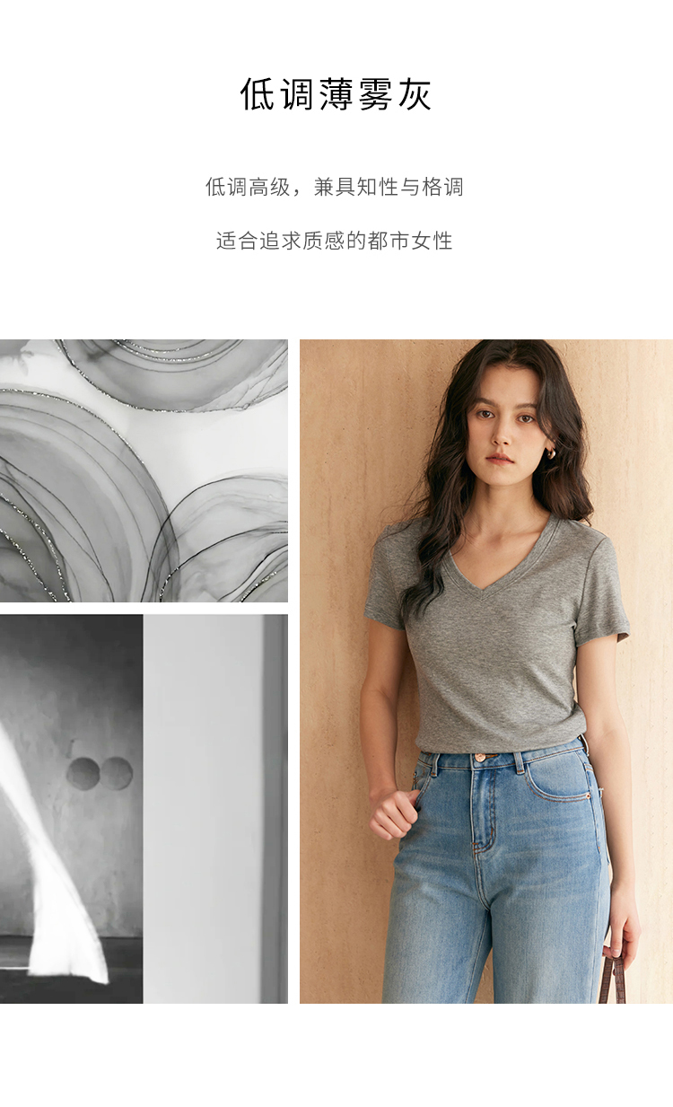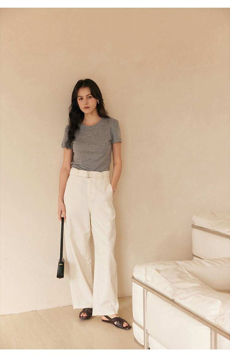 HeyDress天丝正肩t恤女夏季法式修身显瘦百搭半袖高级短袖上衣