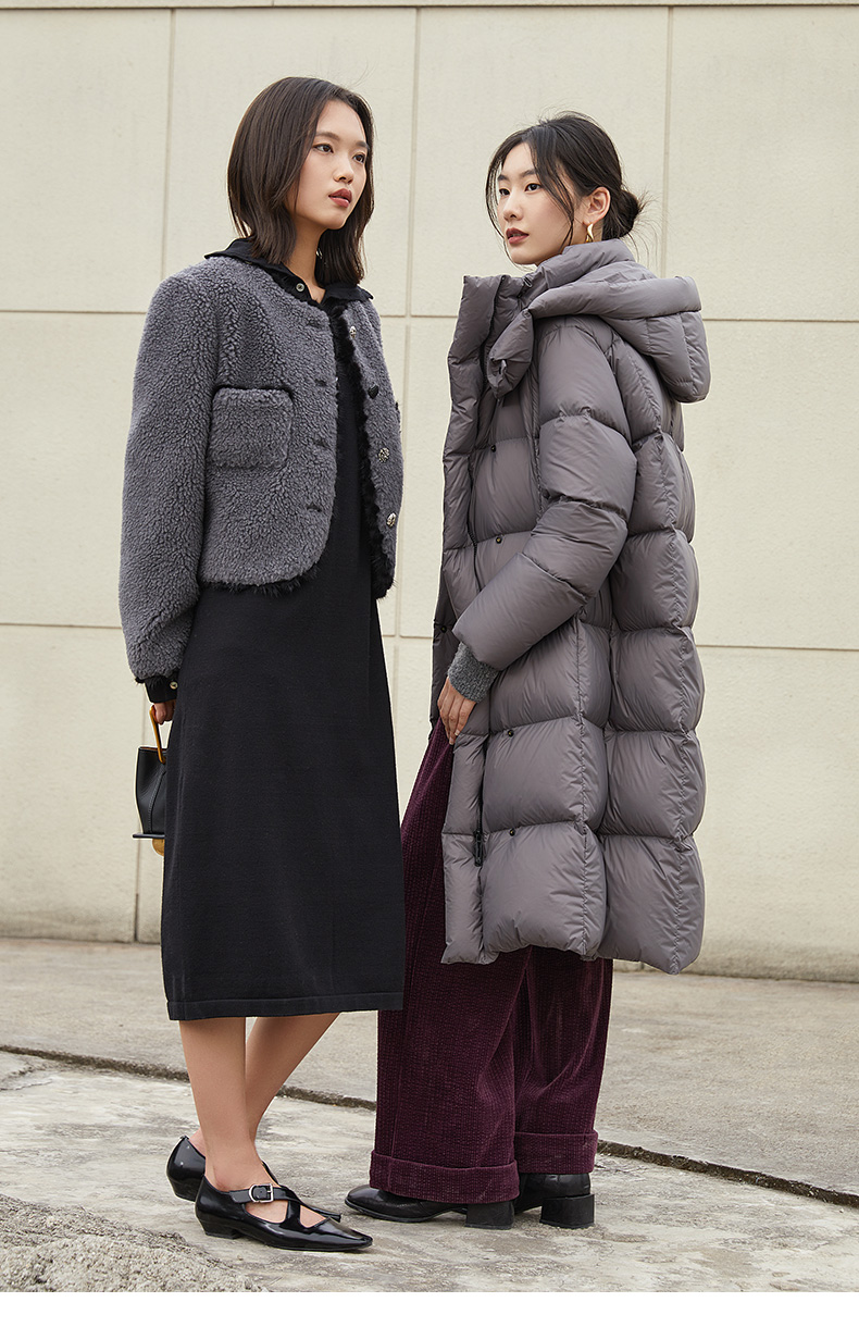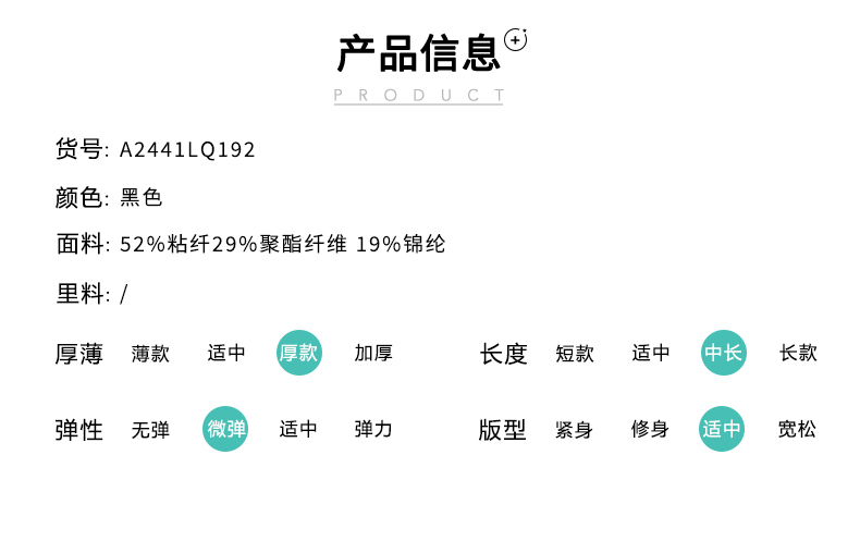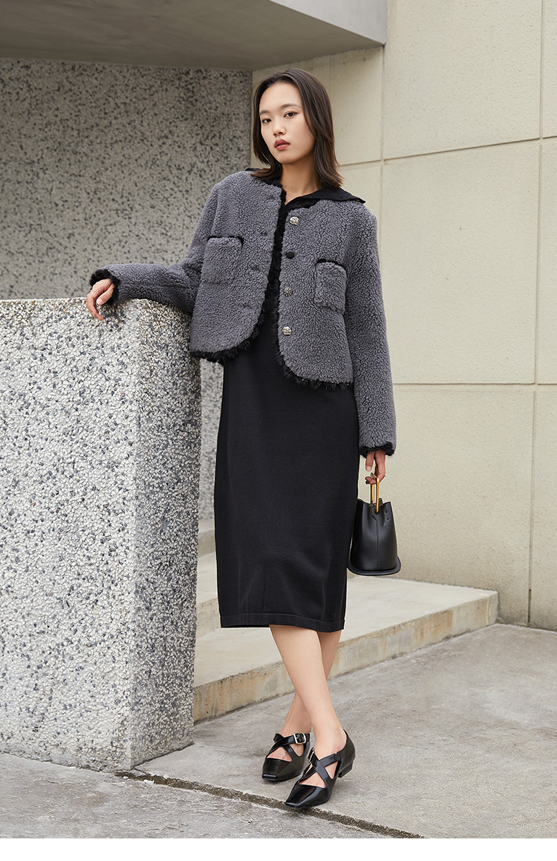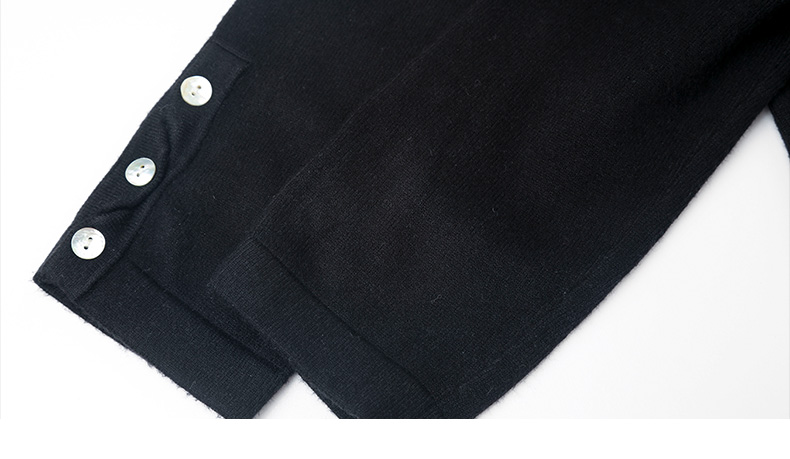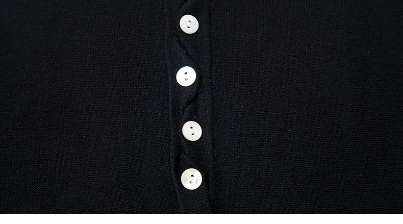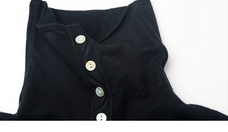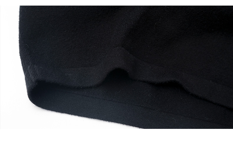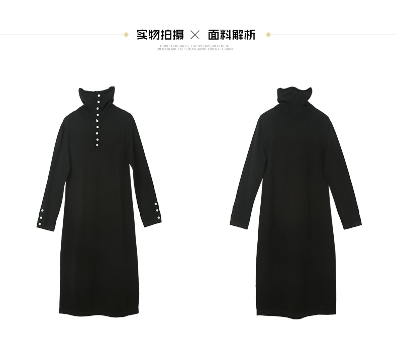 黑色高领针织连衣裙 侧排金属纽扣装饰长袖中长裙 简约通勤气质修身打底裙