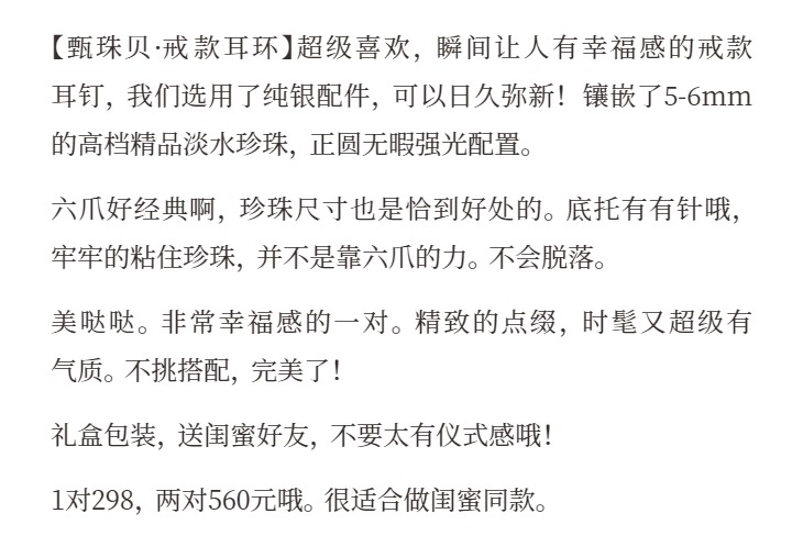 【下单2-3个工作日发】甄珠贝 瞬间让人有幸福感的戒款耳钉,时髦又超级有气质