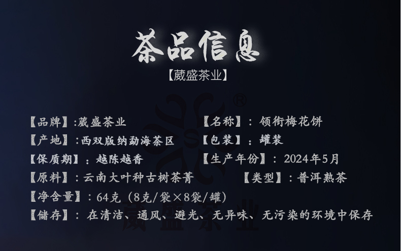葳盛茶业2024年新品梅花小饼勐海布朗山古树普洱熟茶64g