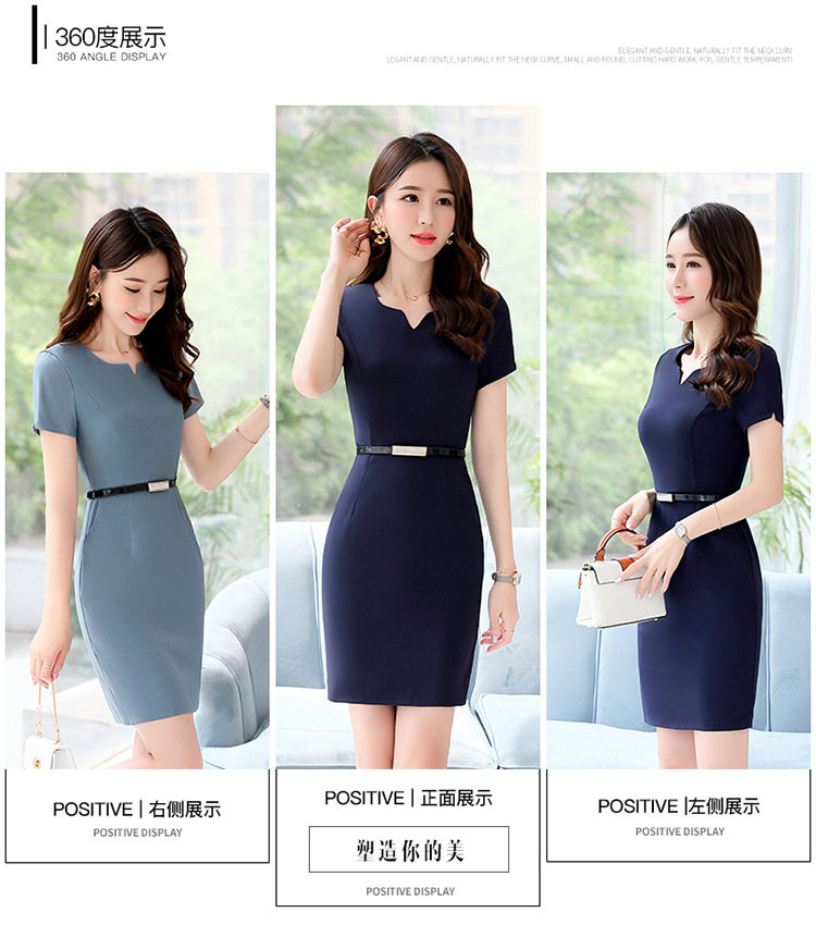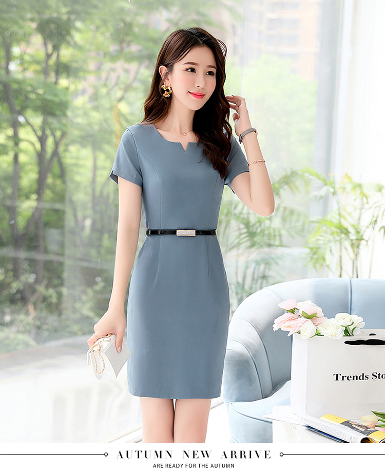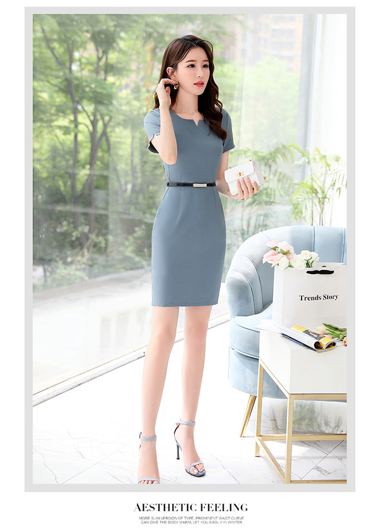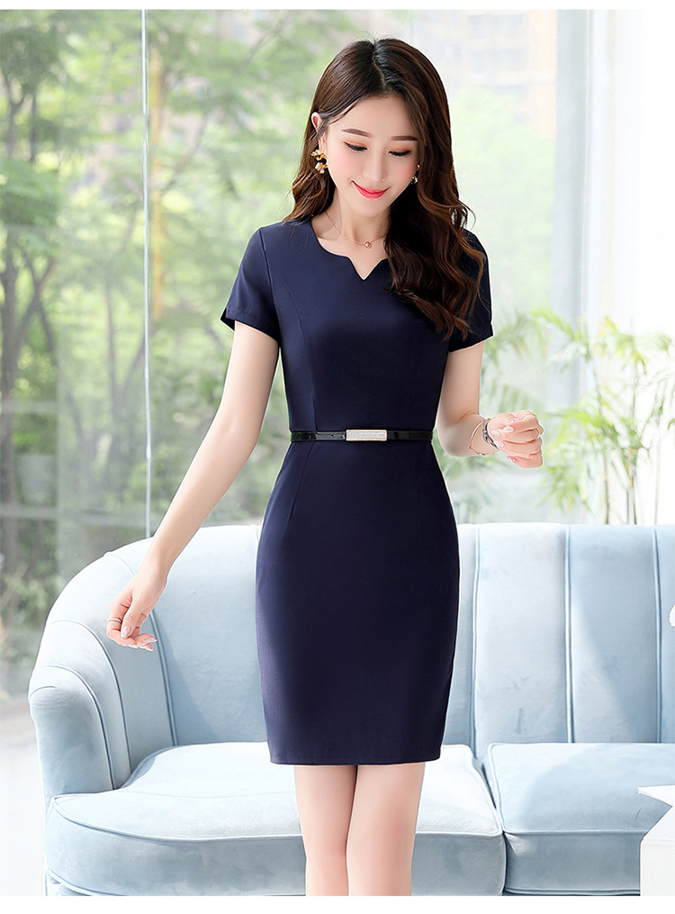 WZNH-BUYIGE7808新品个性时尚短袖休闲纯色气质连衣裙