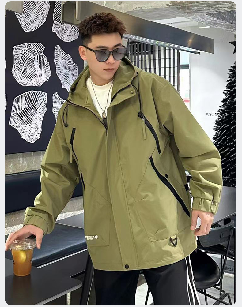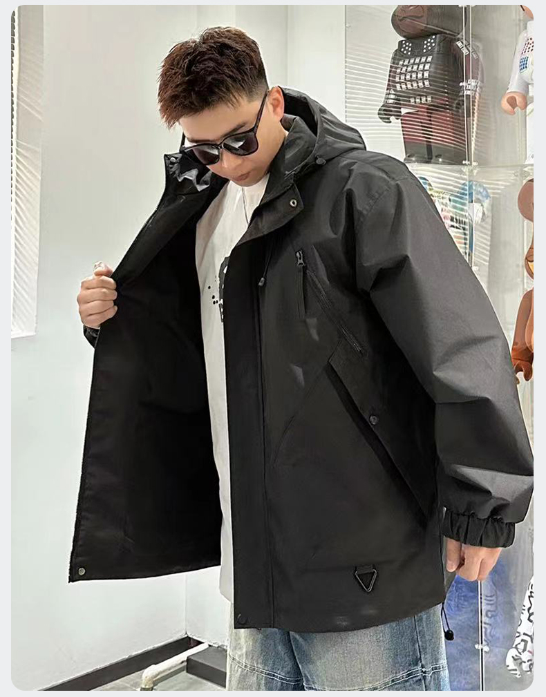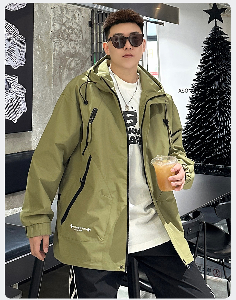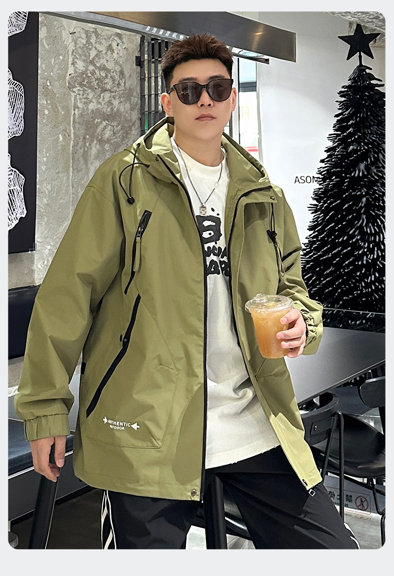 【Q】【新款DX】大依优型大码连帽外套夹克时尚雷萨加肥加大休闲胖子宽松外套上衣男装潮流户外